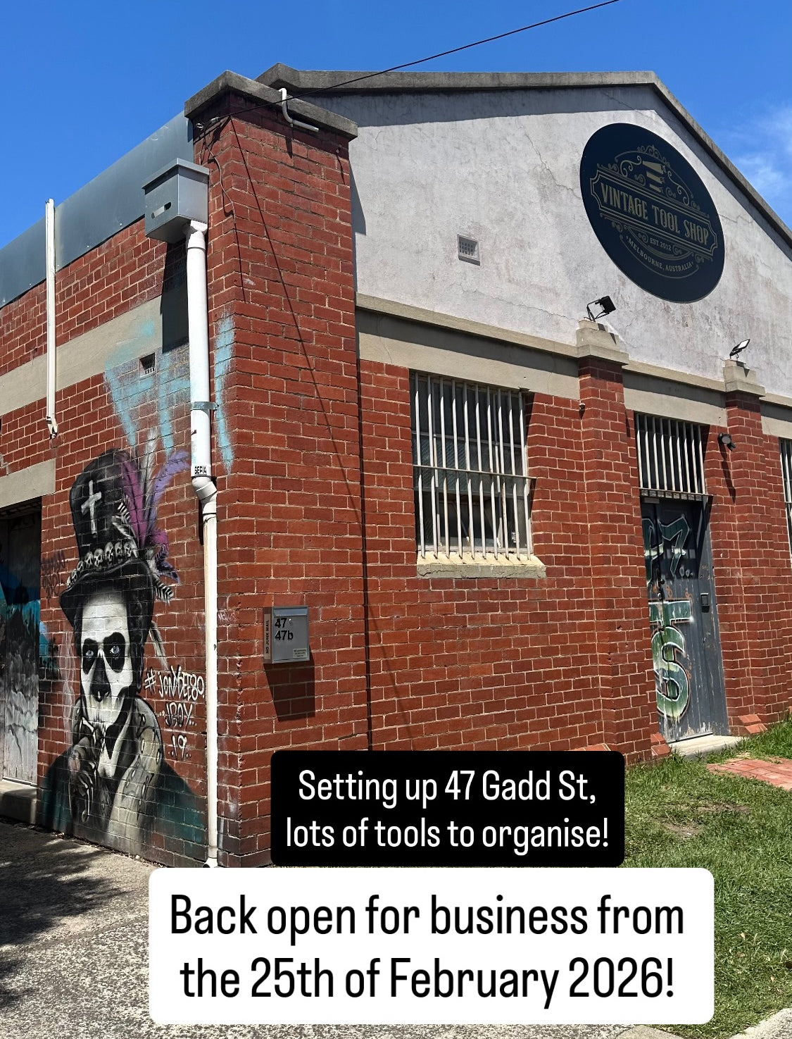 • VINTAGE TOOL SHOP at 47 Gadd st, NORTHCOTE, Melbourne, AUSTRALIA will reopen on the 25th of February 2026.
