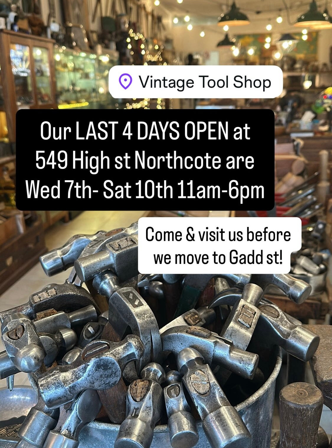 • VINTAGE TOOL SHOP at 549 High st, NORTHCOTE, Melbourne, AUSTRALIA is OPEN Wed-Sat 11am-6pm (closed Sun, Mon, Tue)