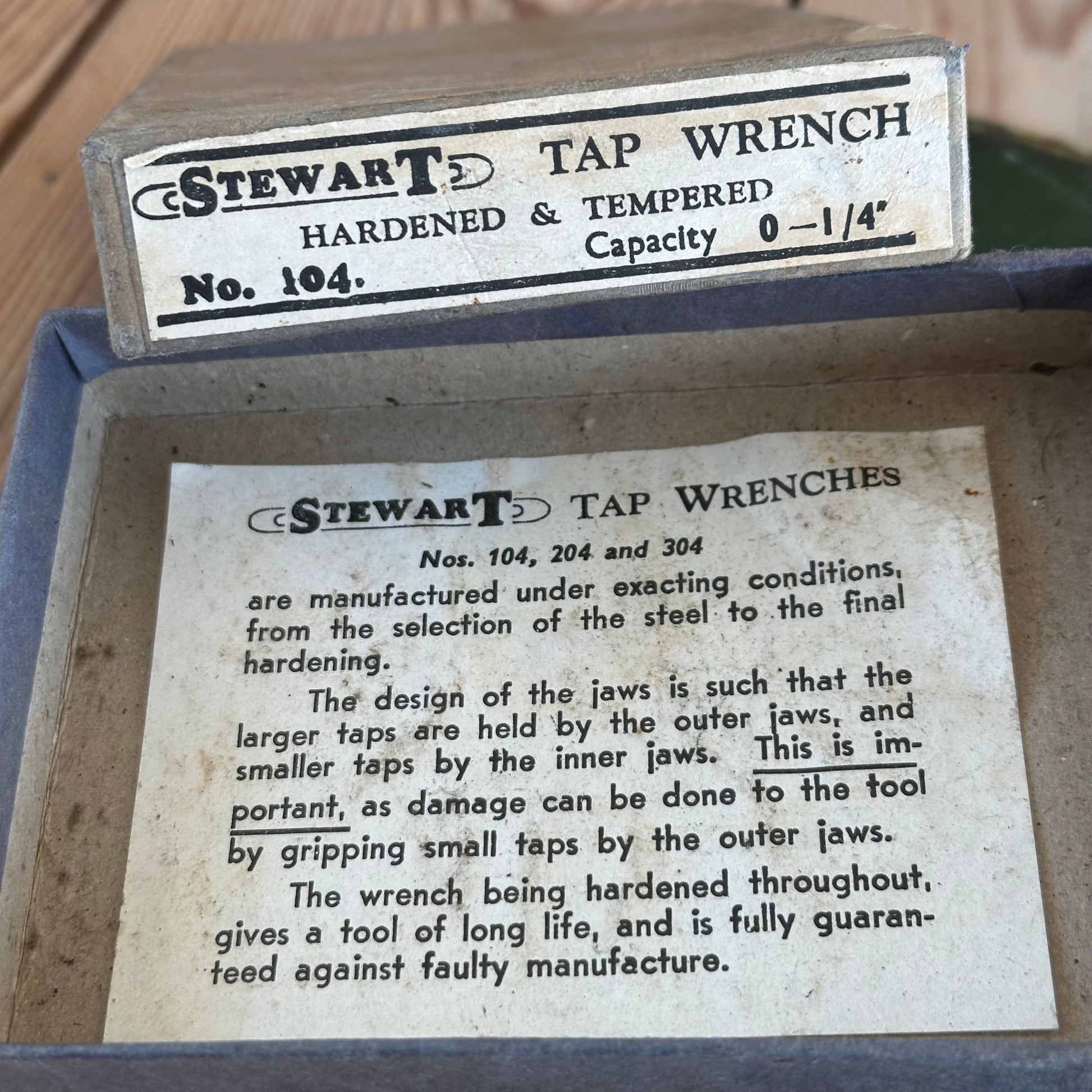 H2341 Vintage Boxed STEWART No:104 tap wrench & assorted taps