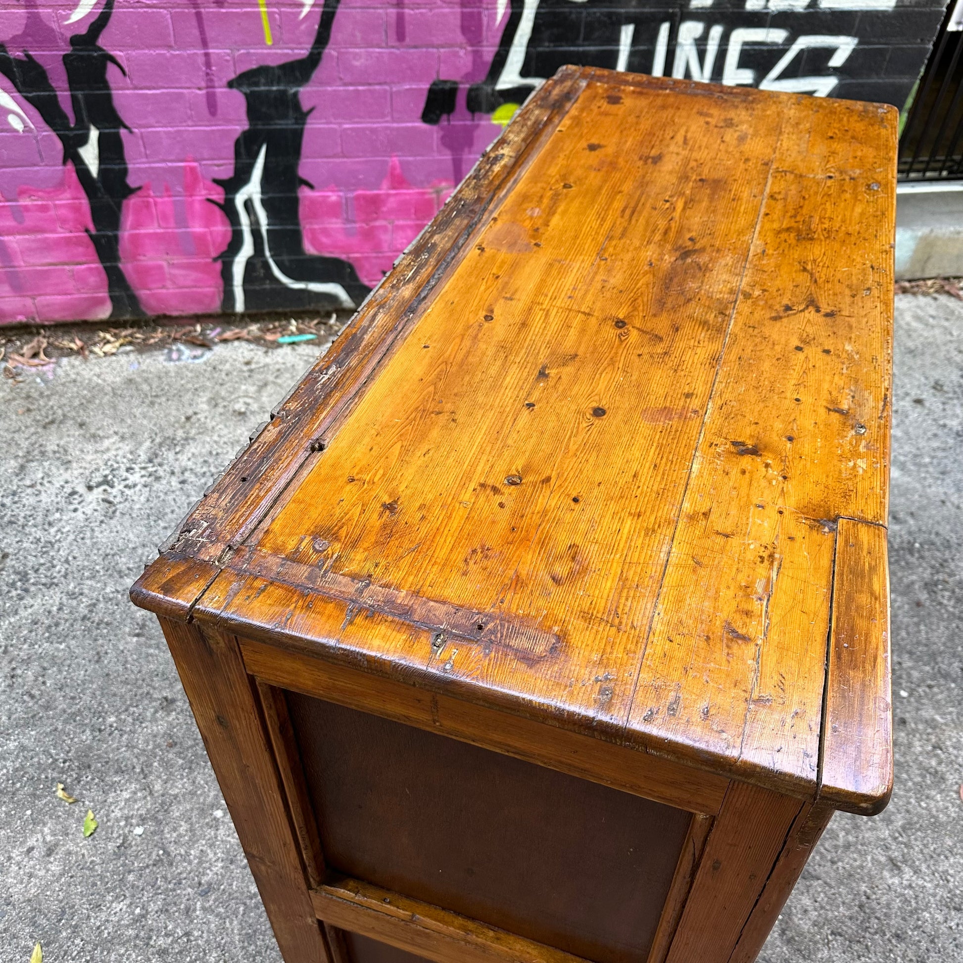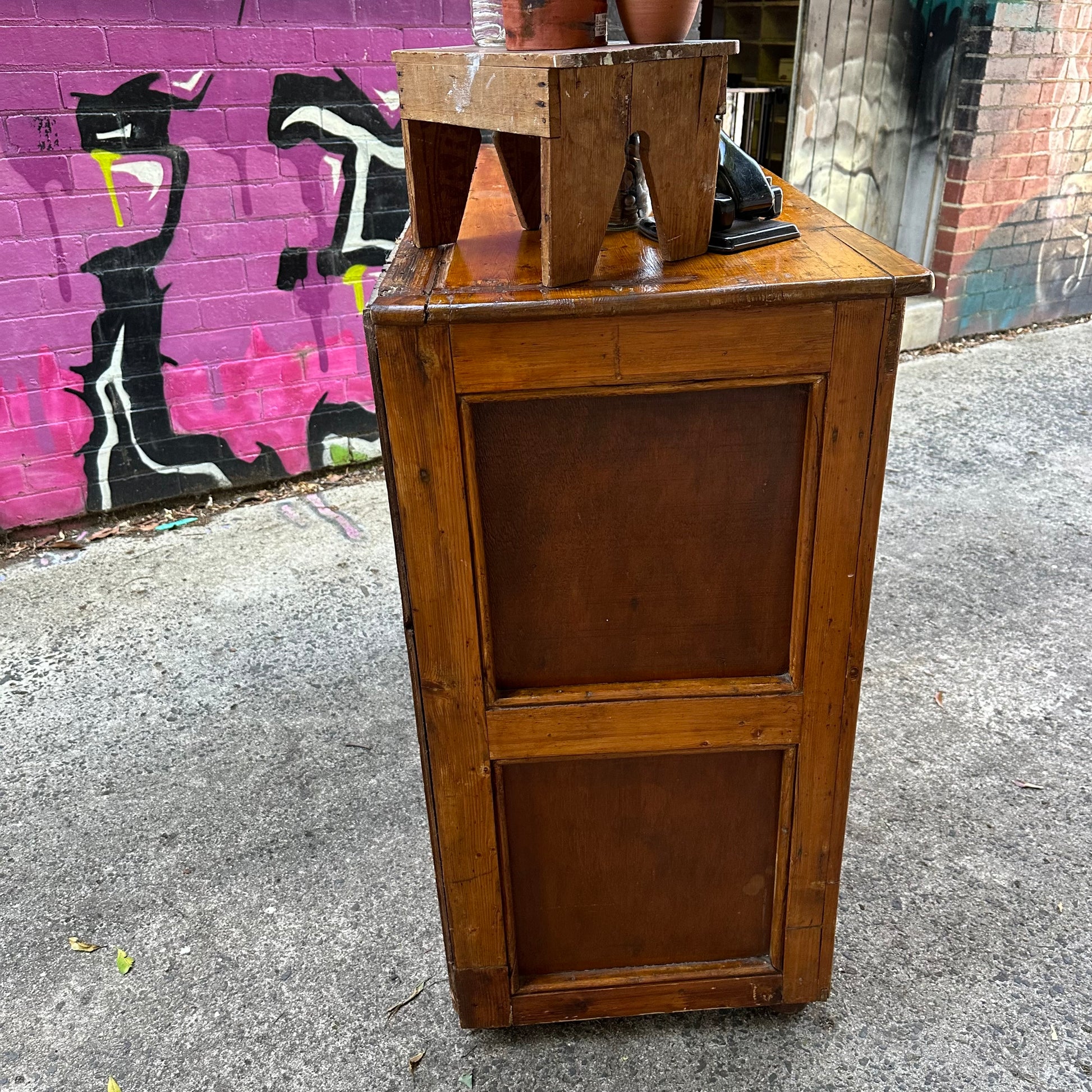 Up for sale is a gorgeous federation era PINE CUPBOARD with two shelves & two drawers. The unit is fashioned from pine & it has numerous cool period repairs and character. A fantastic display cabinet, the colour and patina is fantastic.