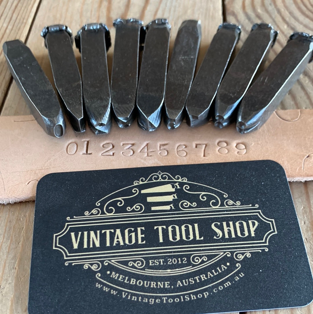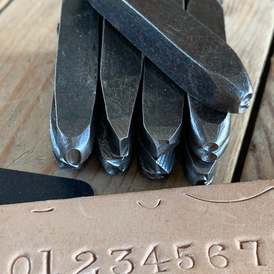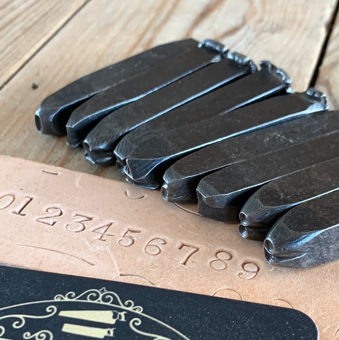 Good for marking soft metals, leather, wood etc. The numbers are still nice & crisp & one can see the file marks of the stamp maker on each punch- this is a really good set of early stamps.