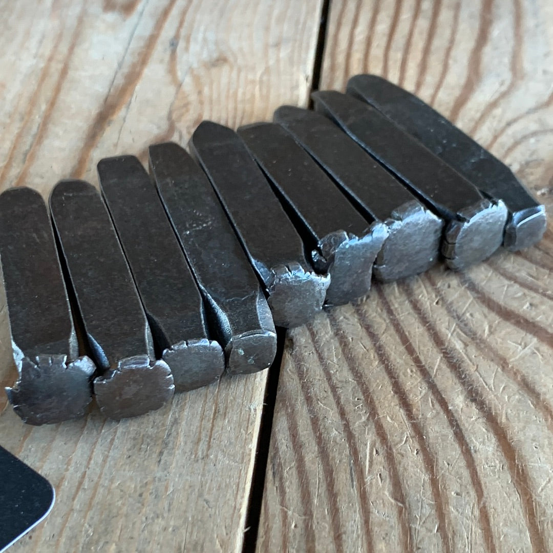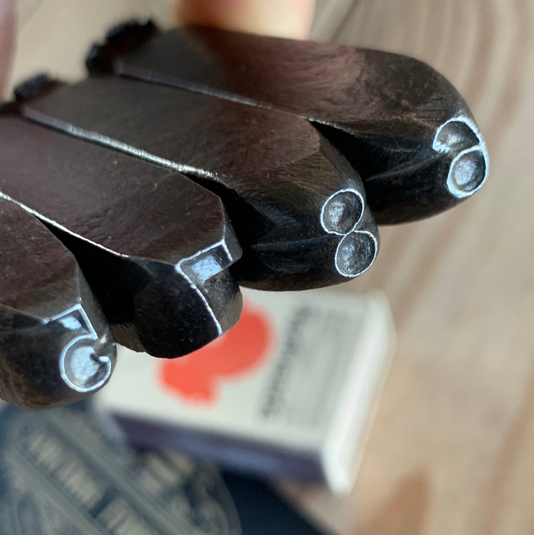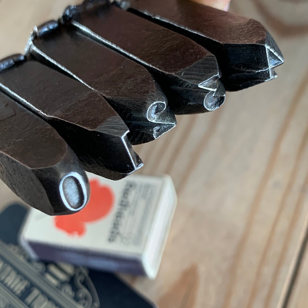 Good for marking soft metals, leather, wood etc. The numbers are still nice & crisp & one can see the file marks of the stamp maker on each punch- this is a really good set of early stamps.