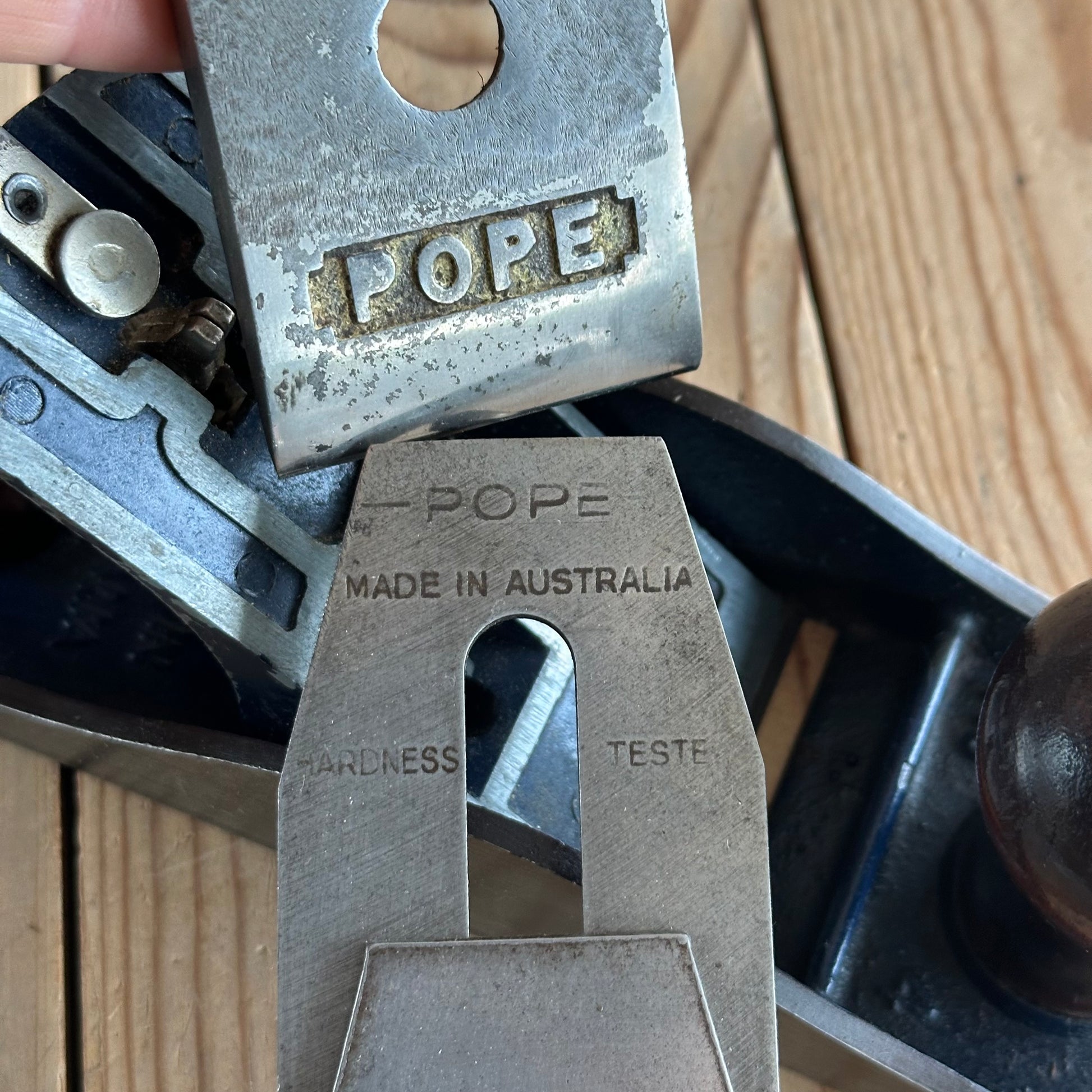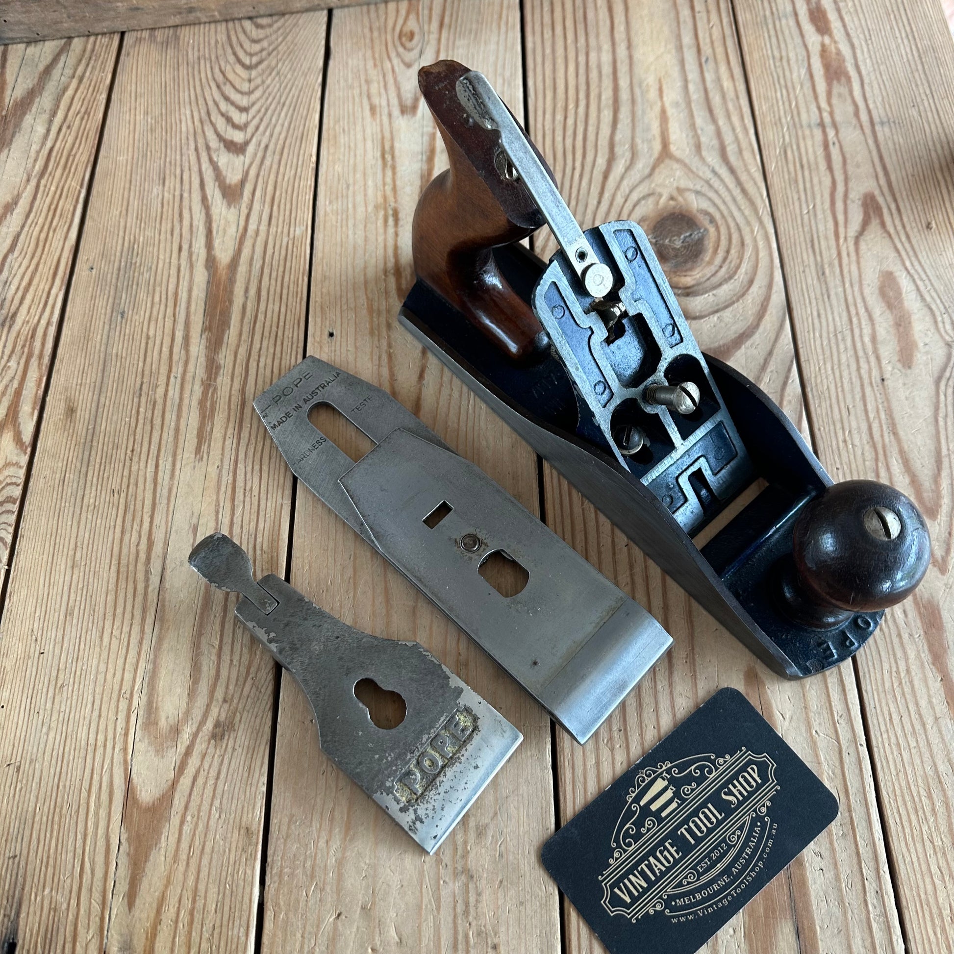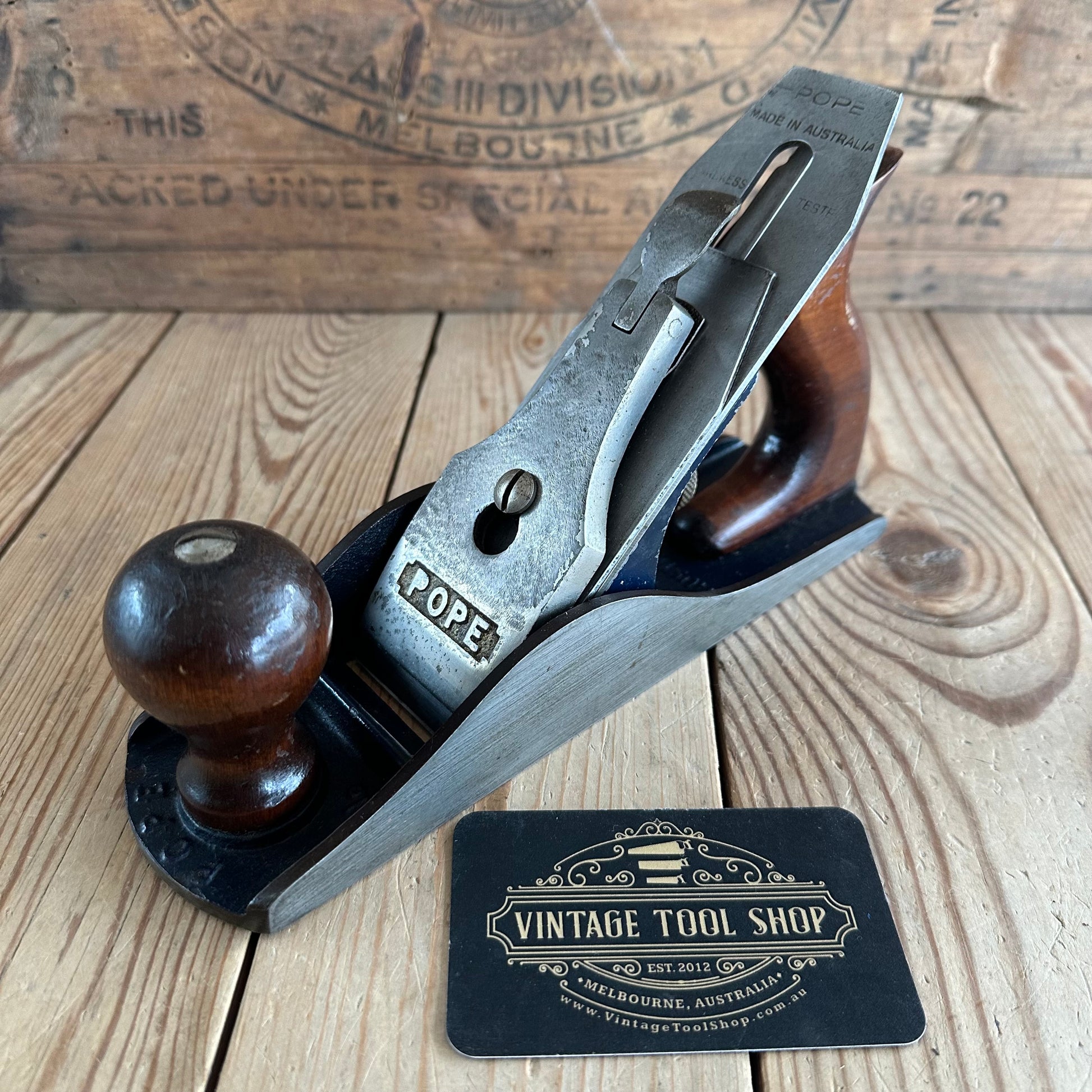 Up for sale is a vintage Australian made POPE No:4 SMOOTHING PLANE. In good shape for its age this one, extra clean handles & a full cutter. Circa 1950-56.