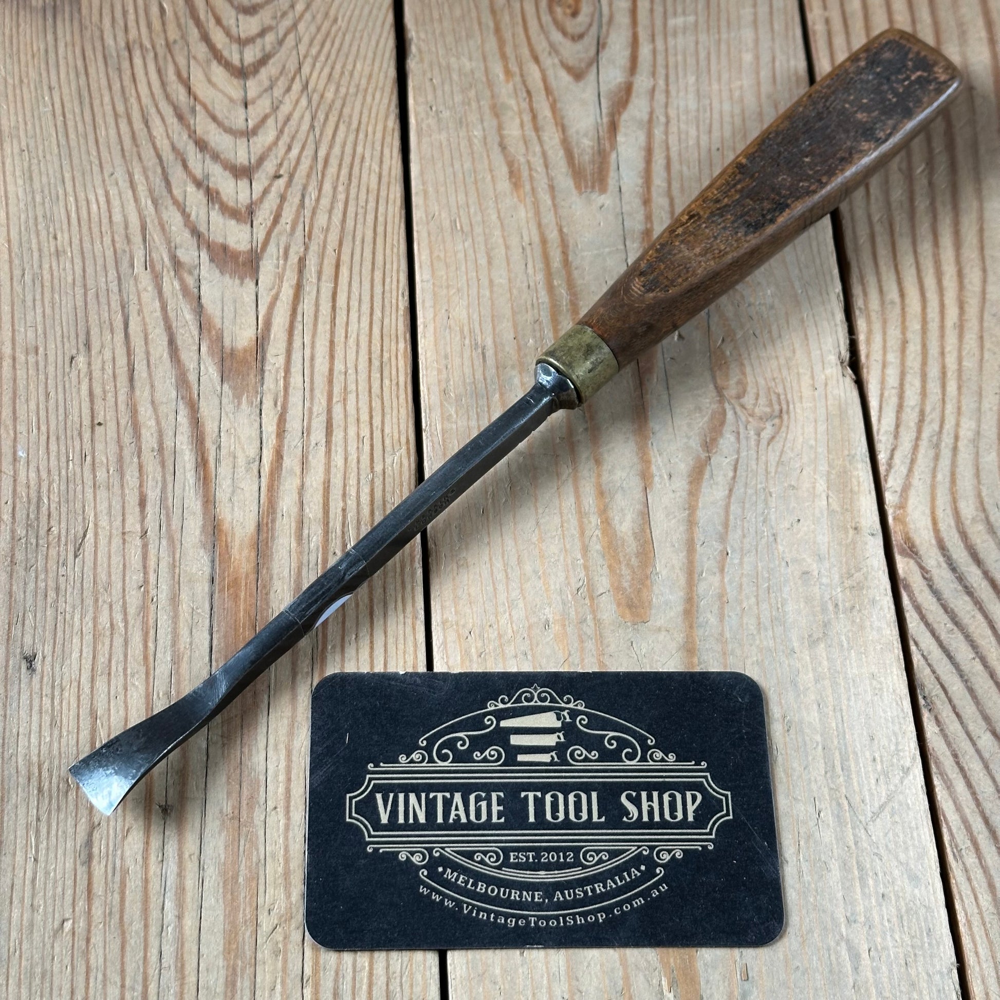 This chisel is in authentic vintage condition, wear & tear consistent with age & use, a large piece of the handle parted company many many years ago & the scar has been polished smooth by human hands over many years. Its sharp enough to use.