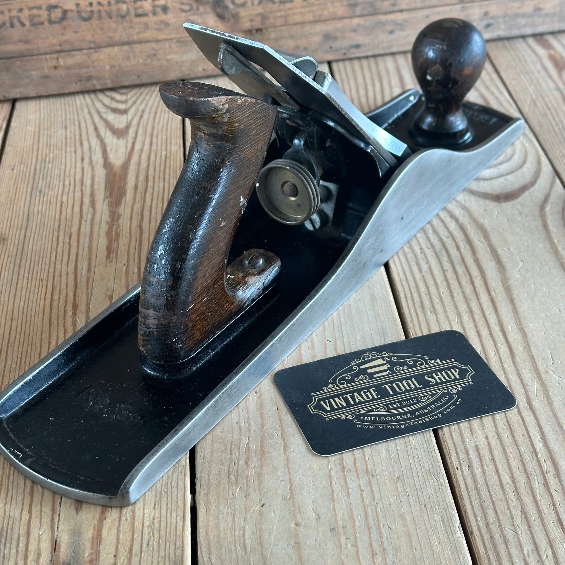 This plane is in authentic vintage condition, wear and tear consistent with age & use. Some minor finish loss & some chrome bubbling to the lever cap. It will require sharpening prior to use, a handy heavy Jack plane by Stanley.