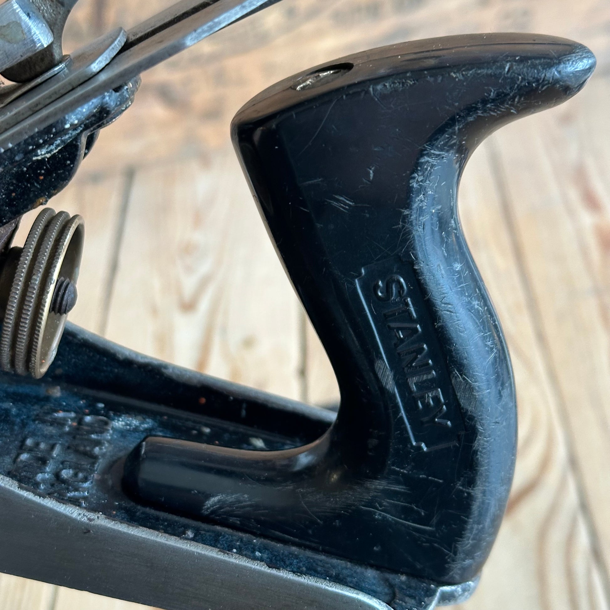 This plane is in authentic vintage condition, wear and tear consistent with age & use, some finish loss & rust marks & the obligatory paint splatters, a quick sharpen & you’ll be pulling shavings.
