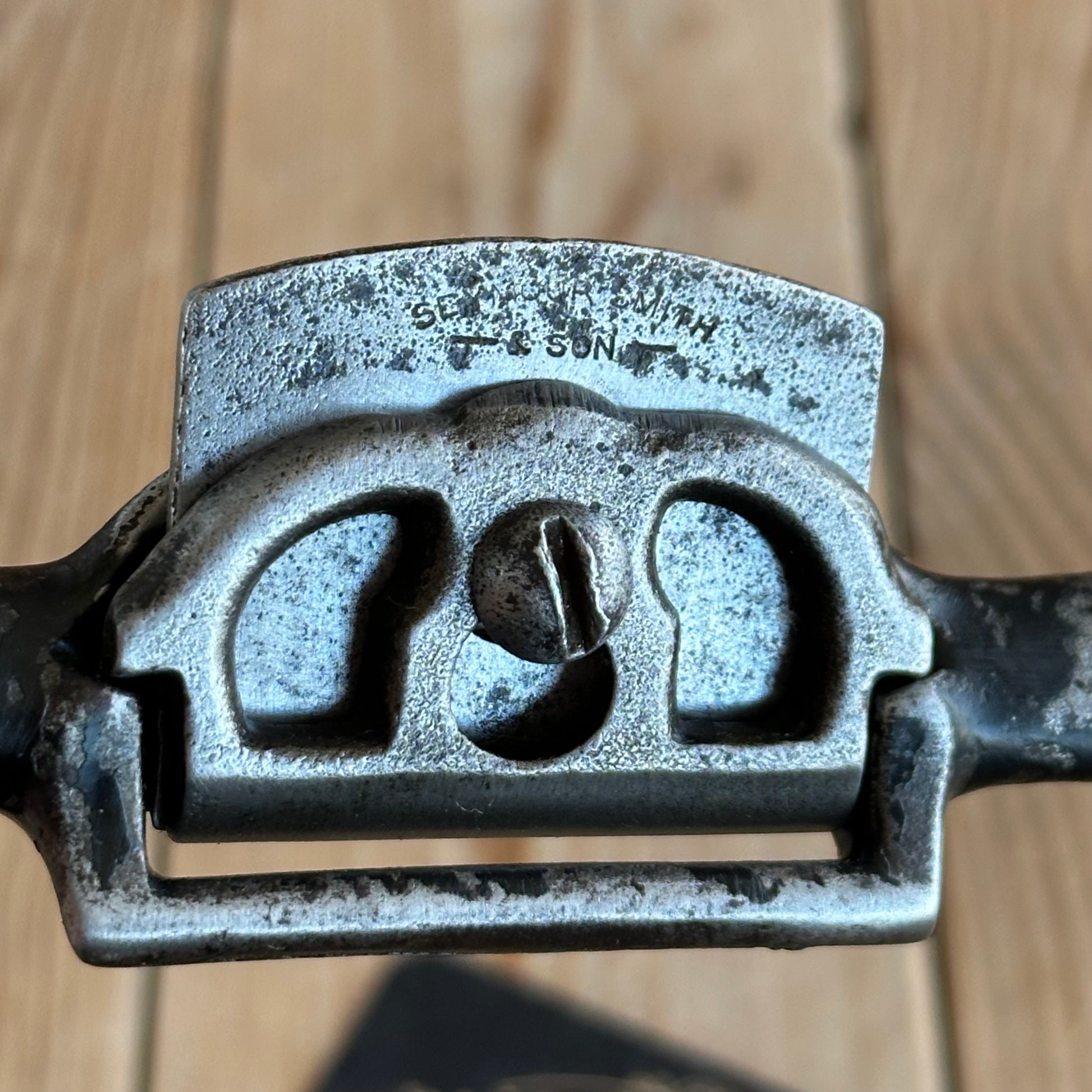 Up for sale is a handy flat No:64 styled SPOKESHAVE, by Seymour Smith with their distinctive pierced screw cap.