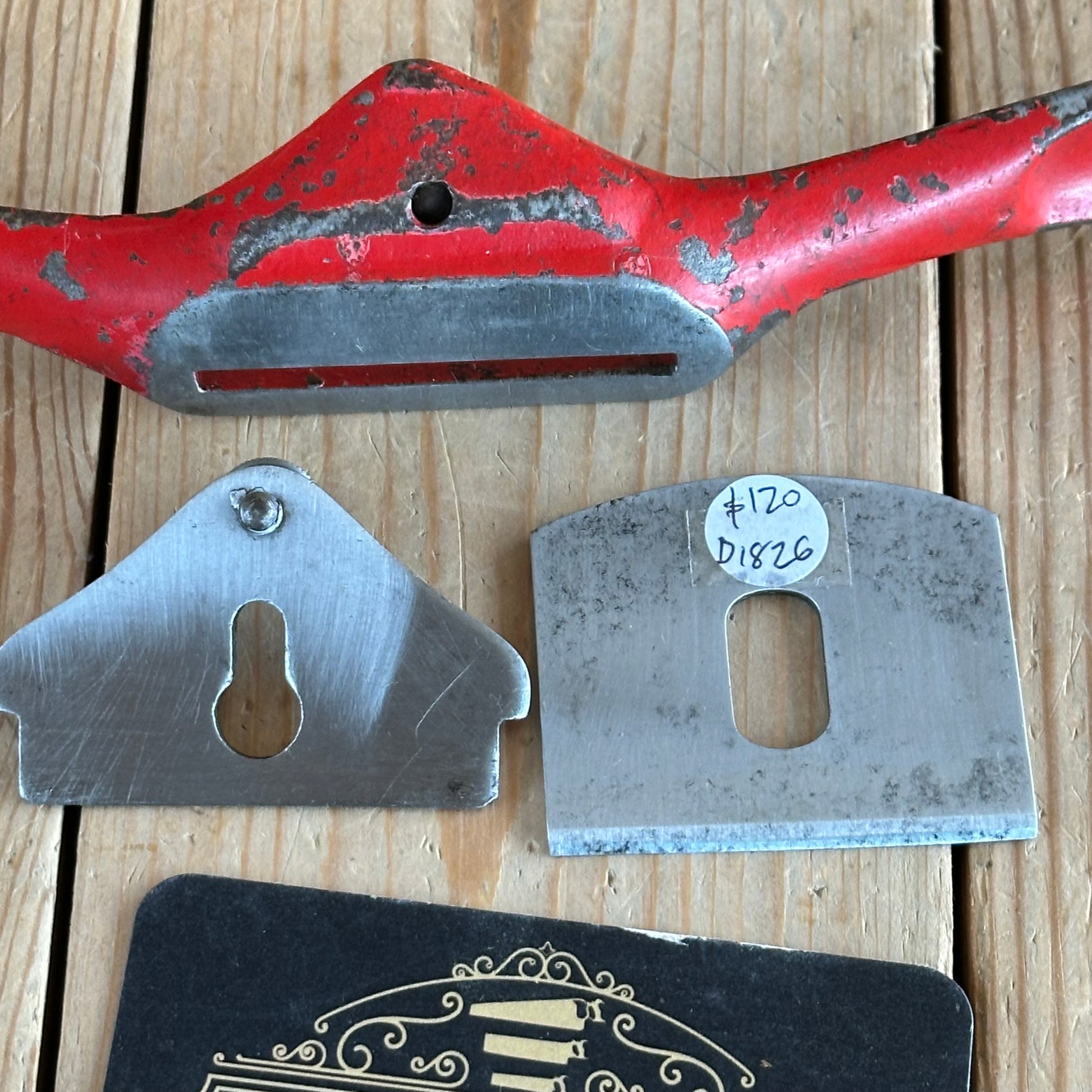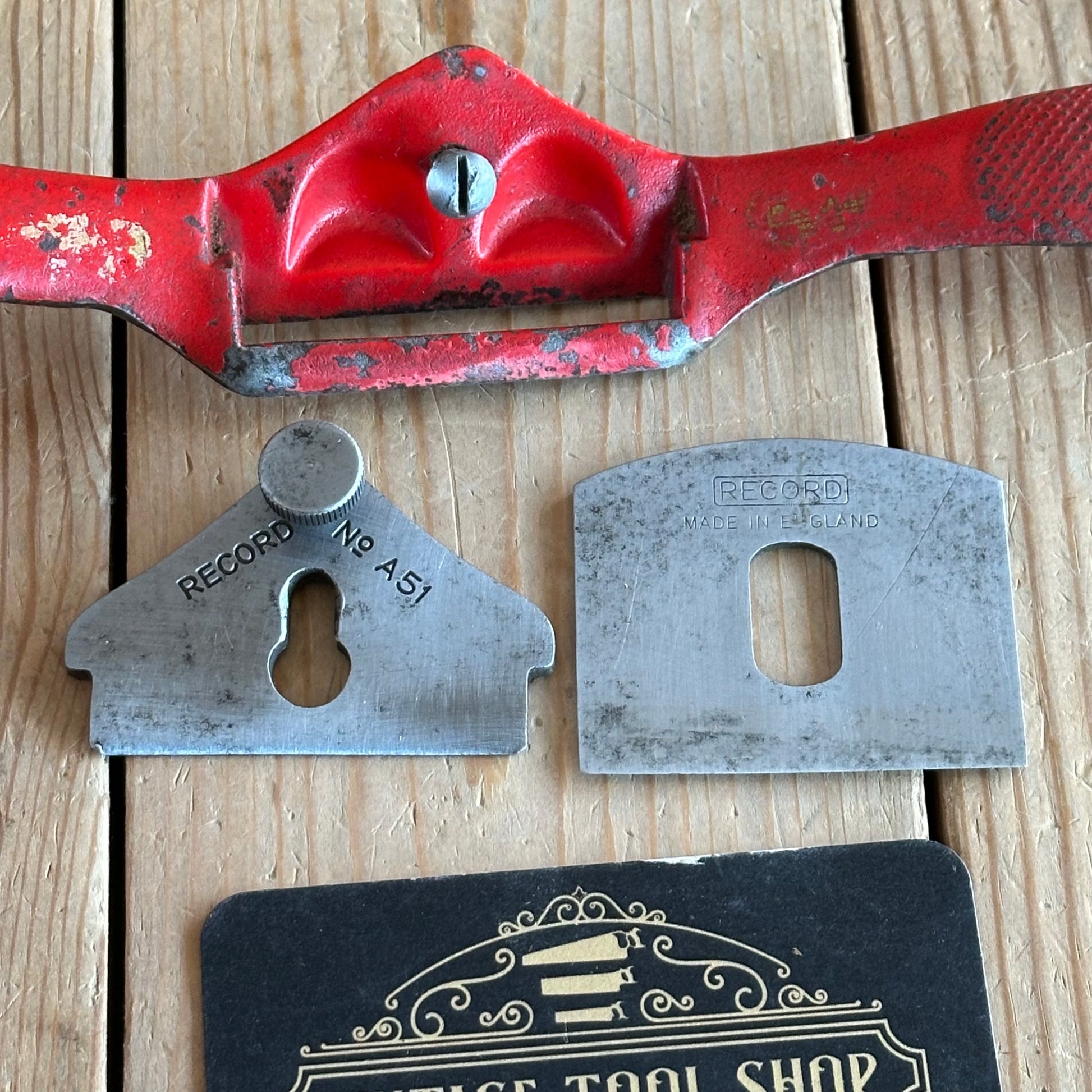 Up for sale is a handy RECORD No:A51 Malleable Iron SPOKESHAVE with a convex base. A nice bright red livery, you won’t lose this one on the workbench.