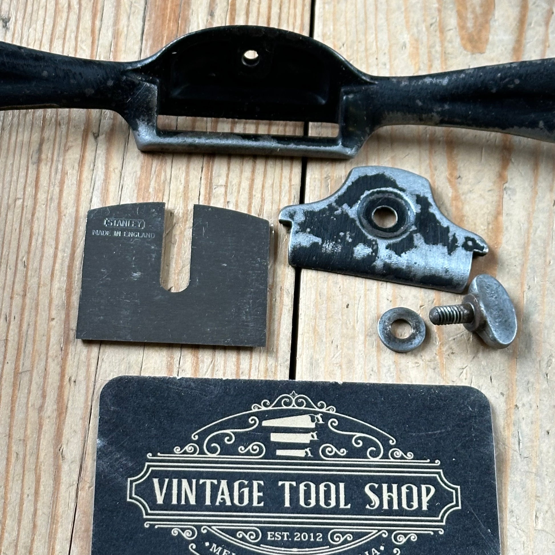 This spokeshave is in authentic vintage condition, wear & tear consistent with age & use, some finish loss, it has a brand new fresh Stanley blade fitted that will just require honing.