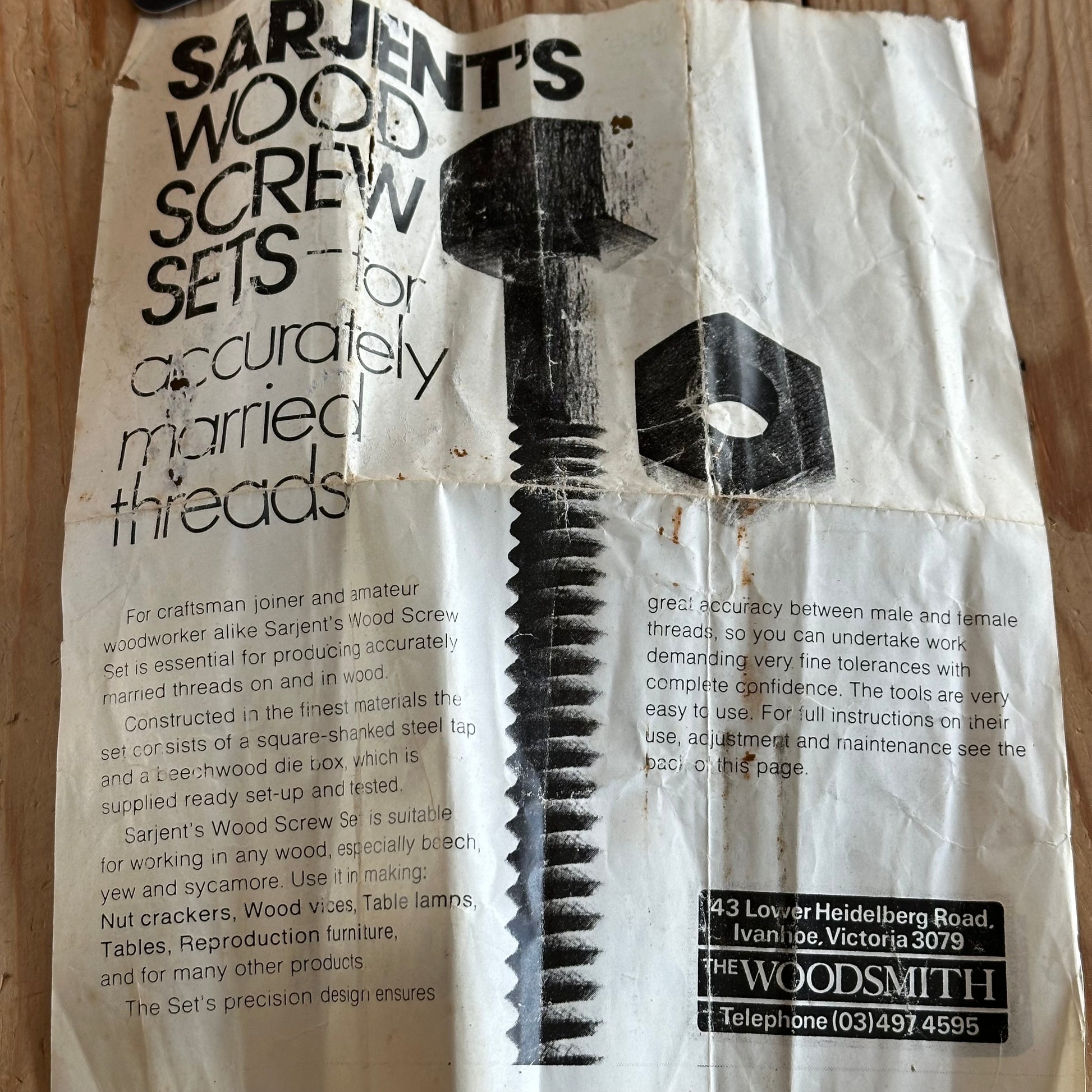 SOLD. H2146 Vintage SARJENT’S England 5/8” 14mm WOODEN SCREW Thread Box CUTTER
