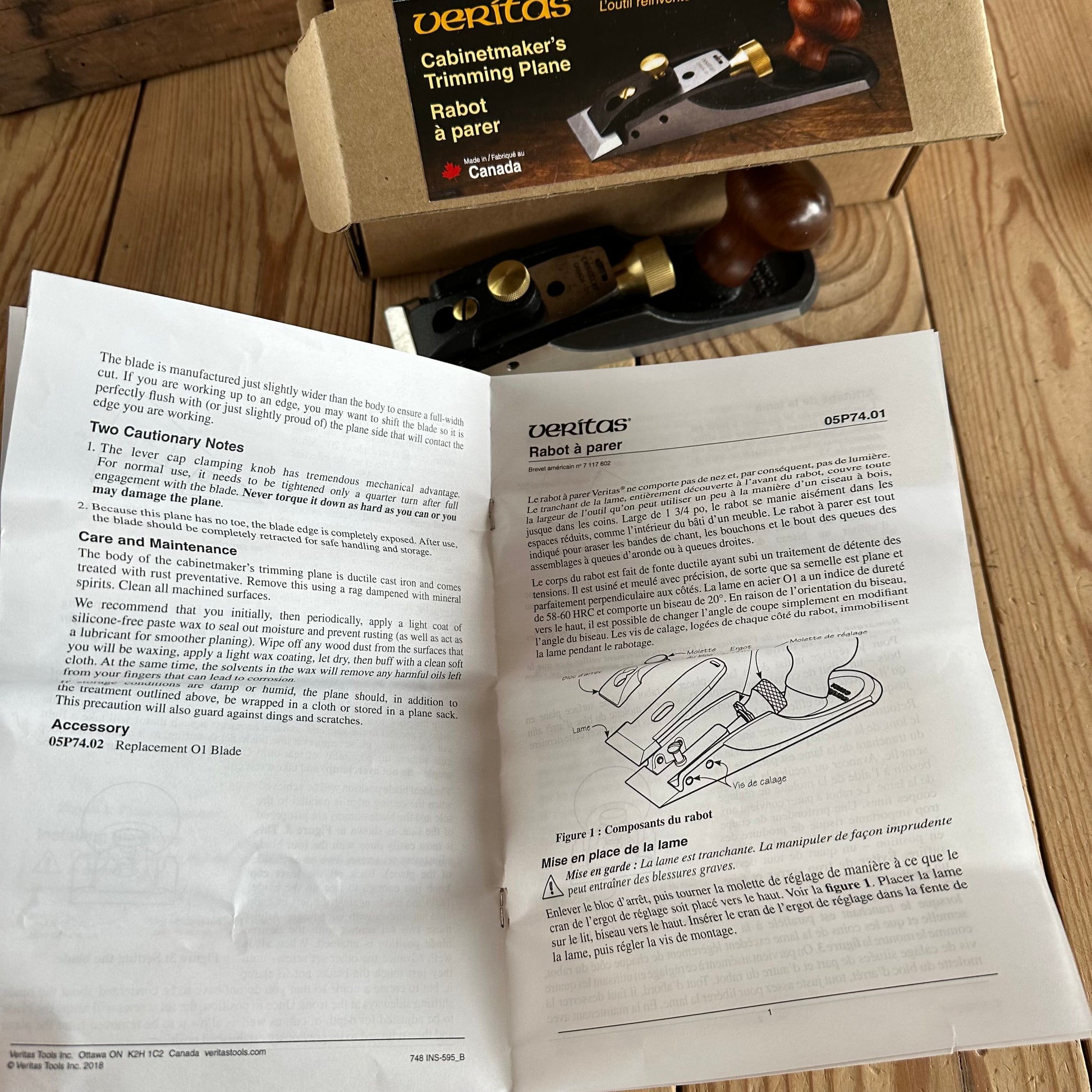 SOLD. H2196 Contemporary VERITAS CABINETMAKERS TRIMMING PLANE Chisel PLANE