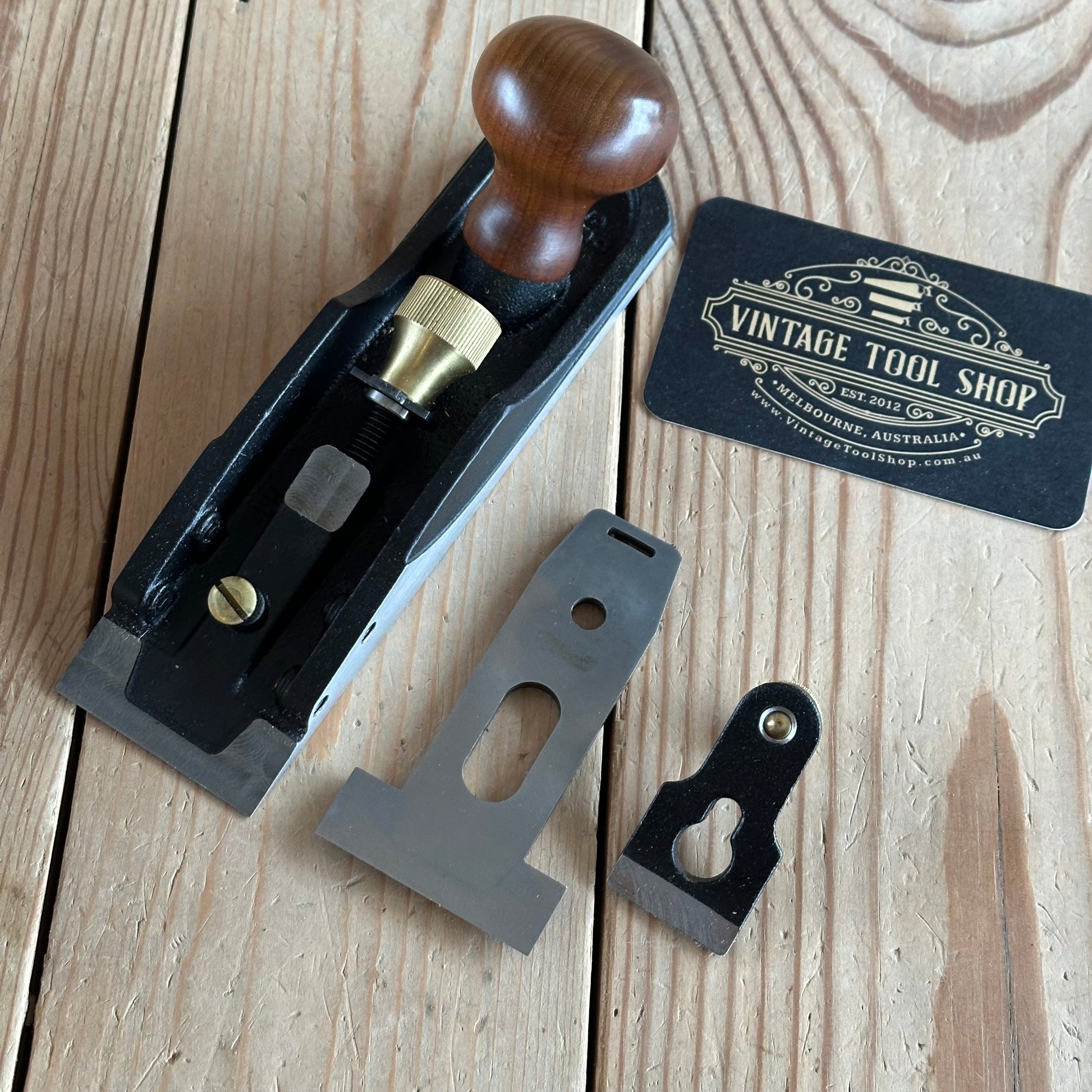 This plane is in authentic vintage condition, wear and tear consistent with age & use, some light storage rust stains on the top of the blade & the blade is RAZOR SHARP, one of the handier planes to have in your workshop.
