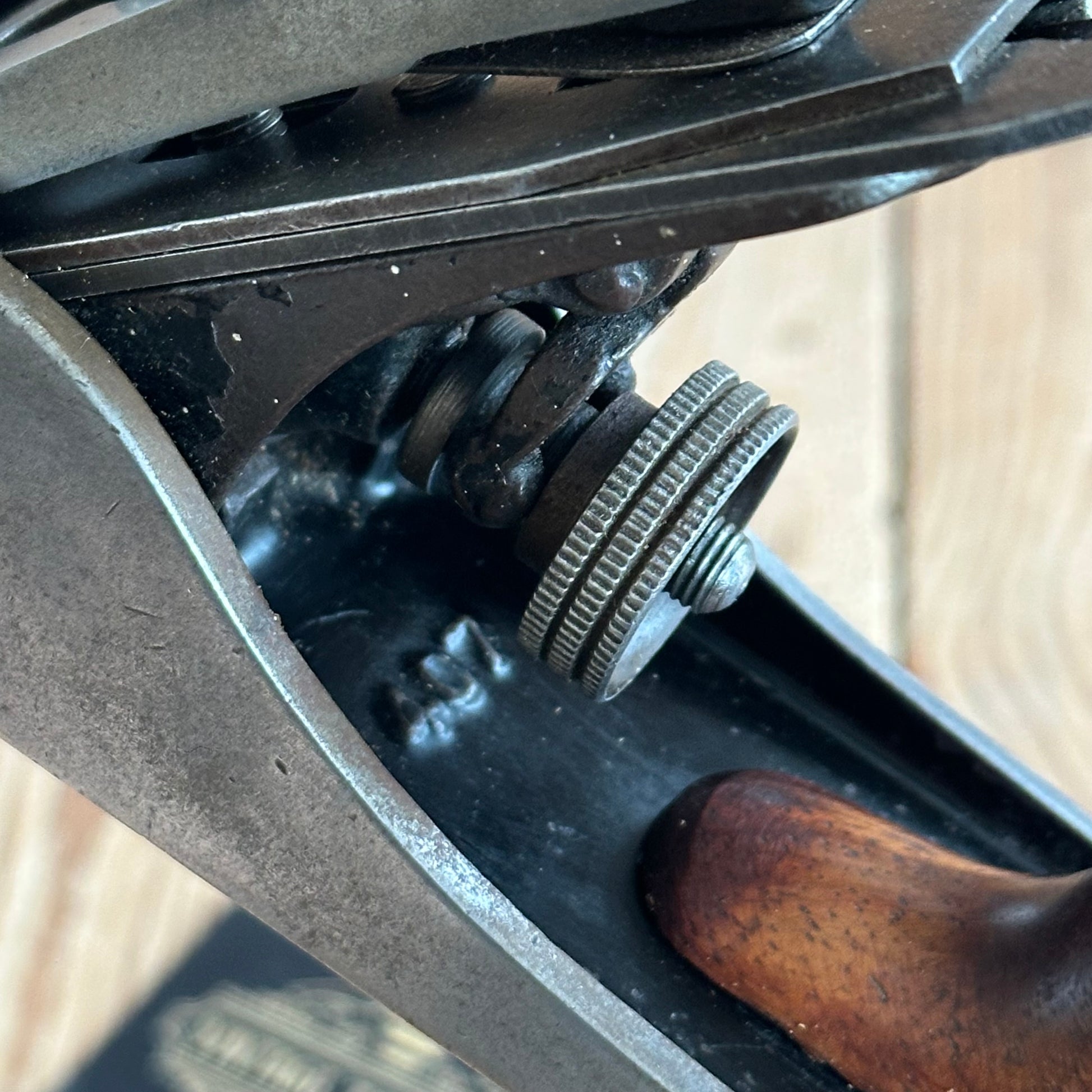 This plane is in authentic vintage condition, some minor finish loss. A good smaller sized smoother, sharpen it up & plane away.