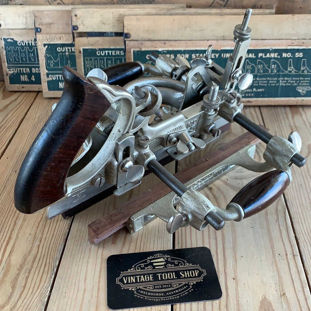 SOLD Antique STANLEY USA No.55 Sweetheart era Combination PLANE full 55 CUTTERS IOB T8973