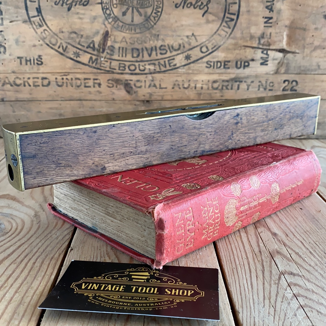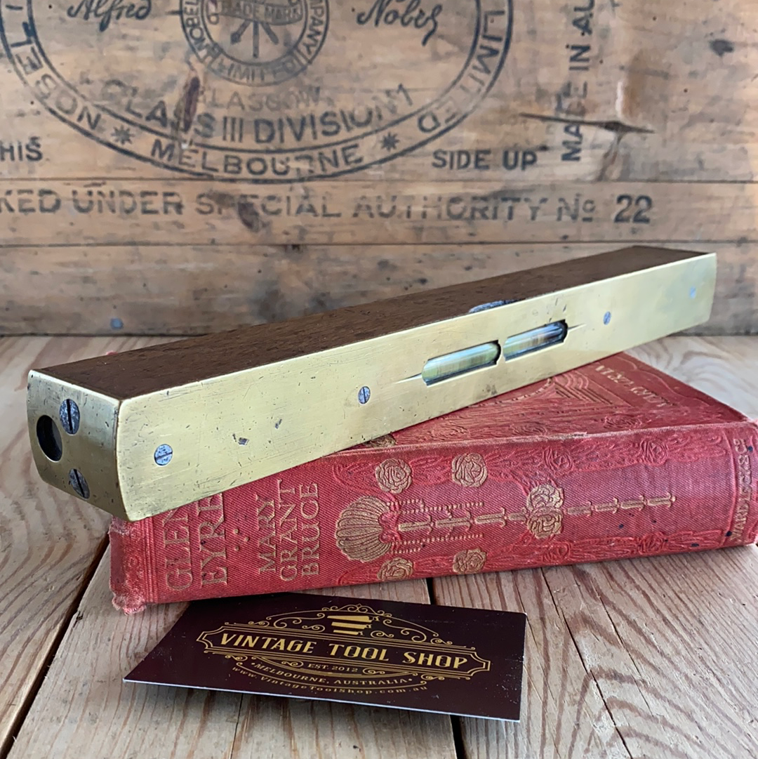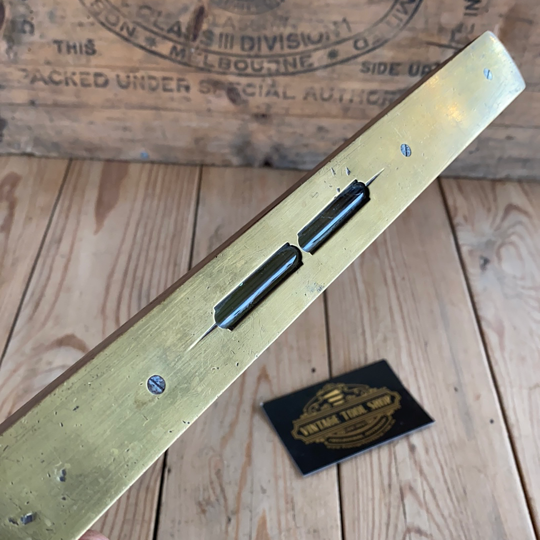 This level is in authentic vintage condition, wear and tear consistent with age & use, some minor dents & scratches & wear to the base & to the brass, the glass sight through window still has the crosshairs intact, an unusual & hard to Preston level.