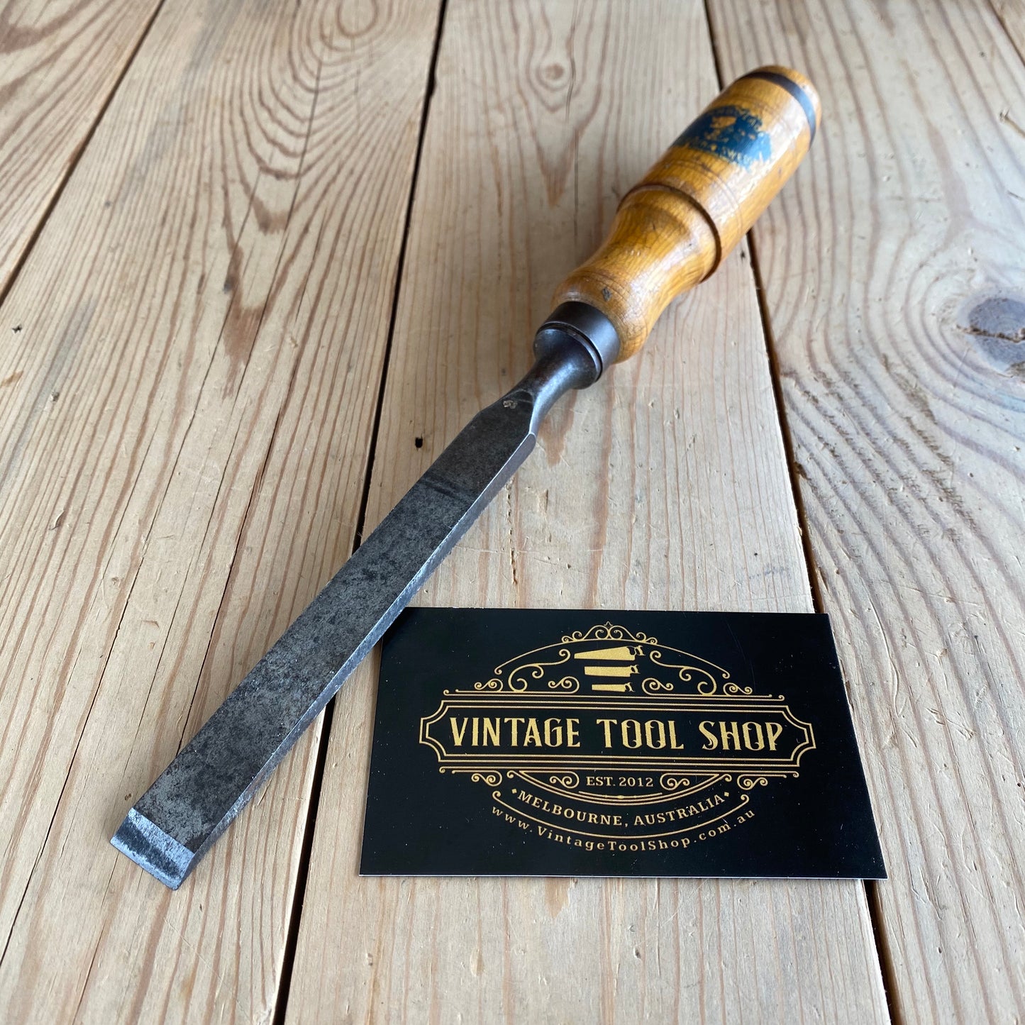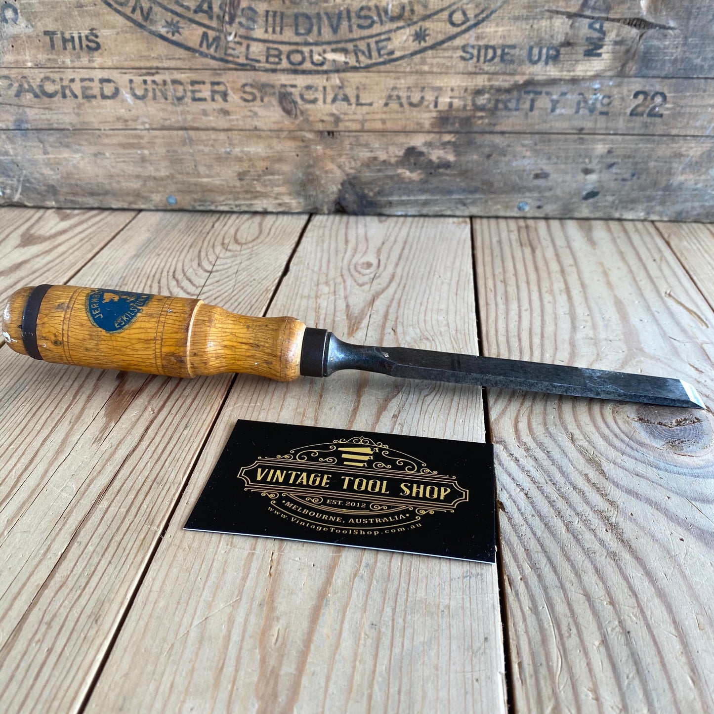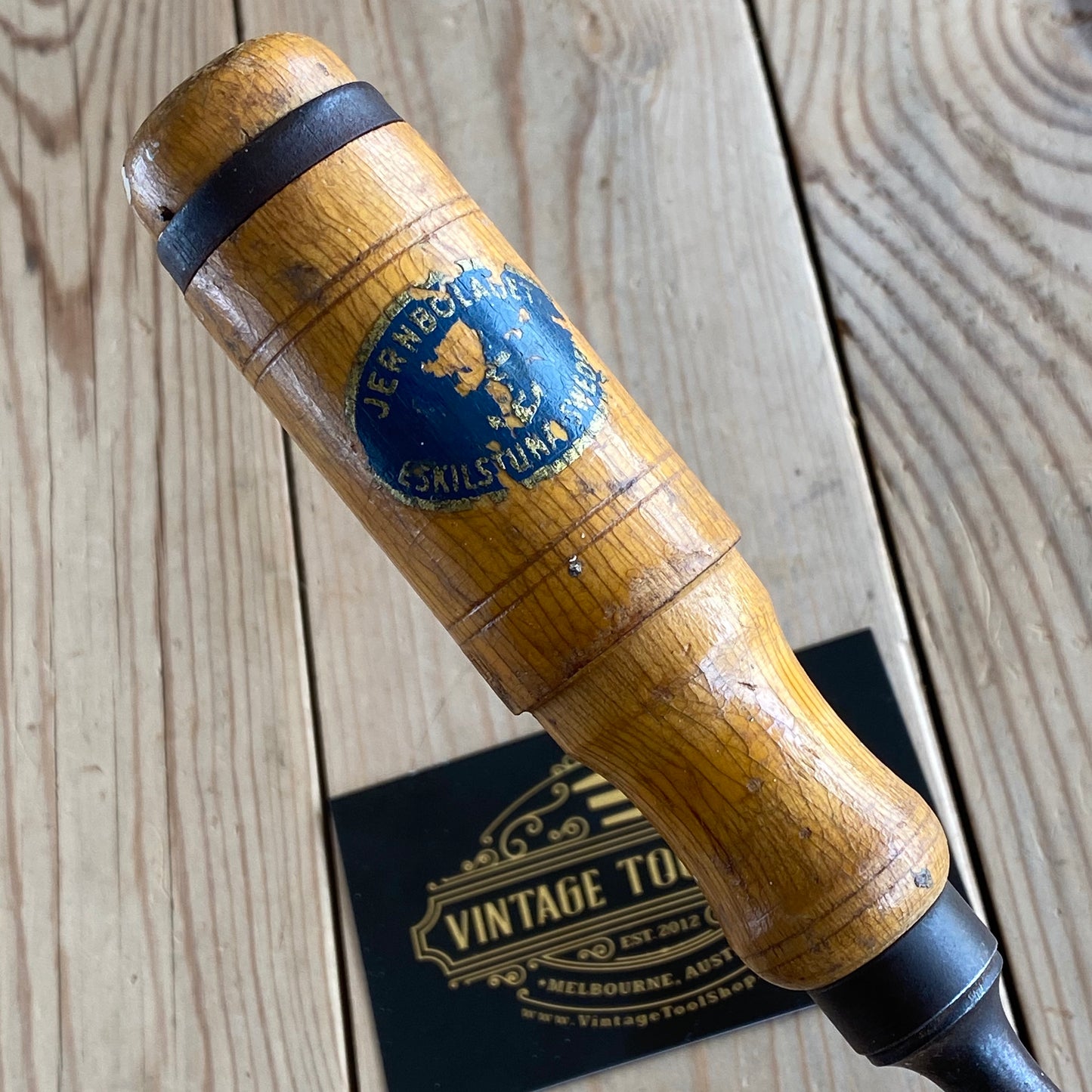 This chisel is in authentic vintage condition, wear & tear consistent with age & use, most of the original decal remains on the handle, it's in good shape a near full blade & the handle hasn't been struck, it will require sharpening prior to use, a hard to find Jernbolaget firmer chisel.