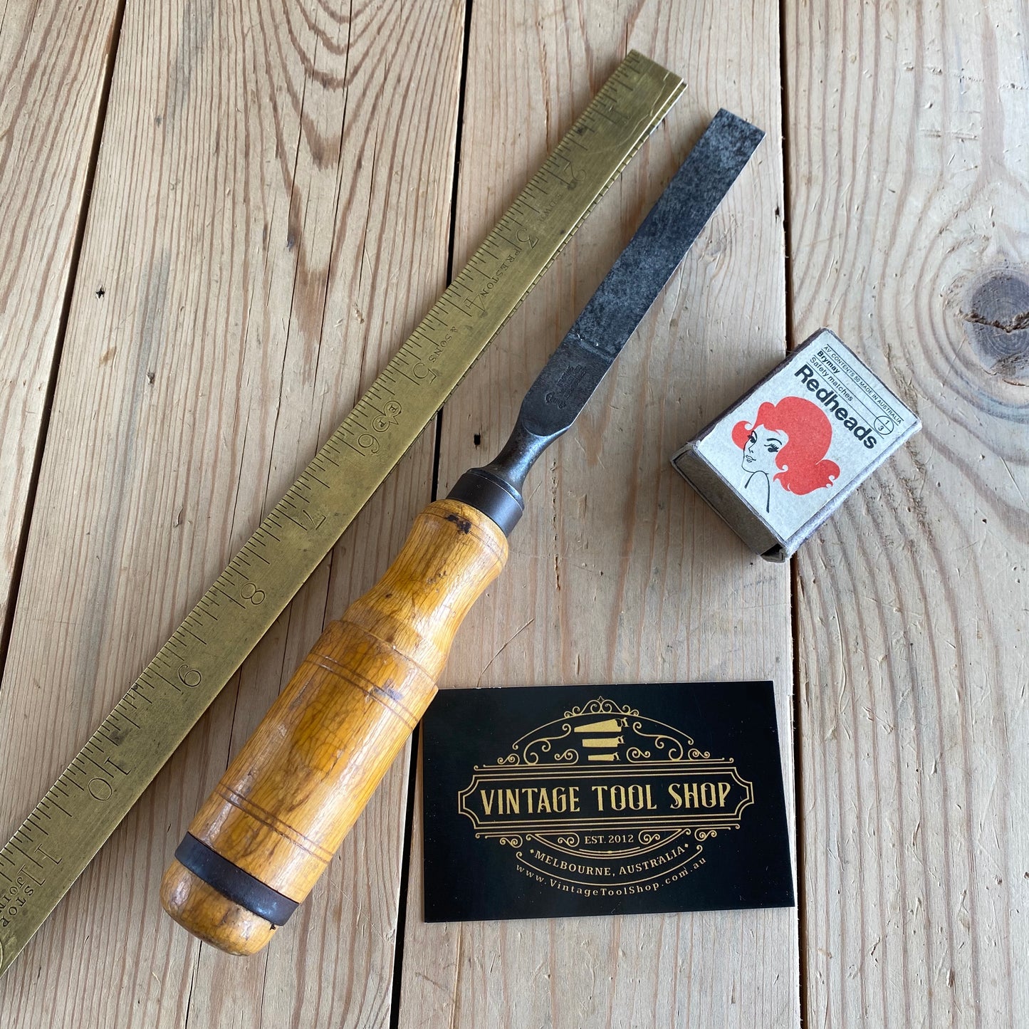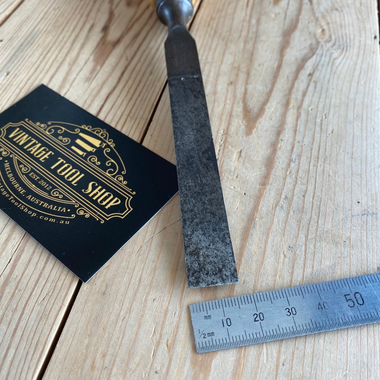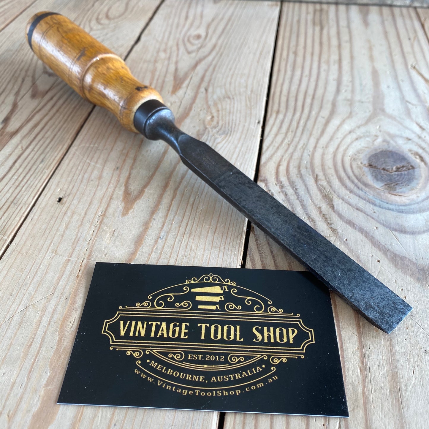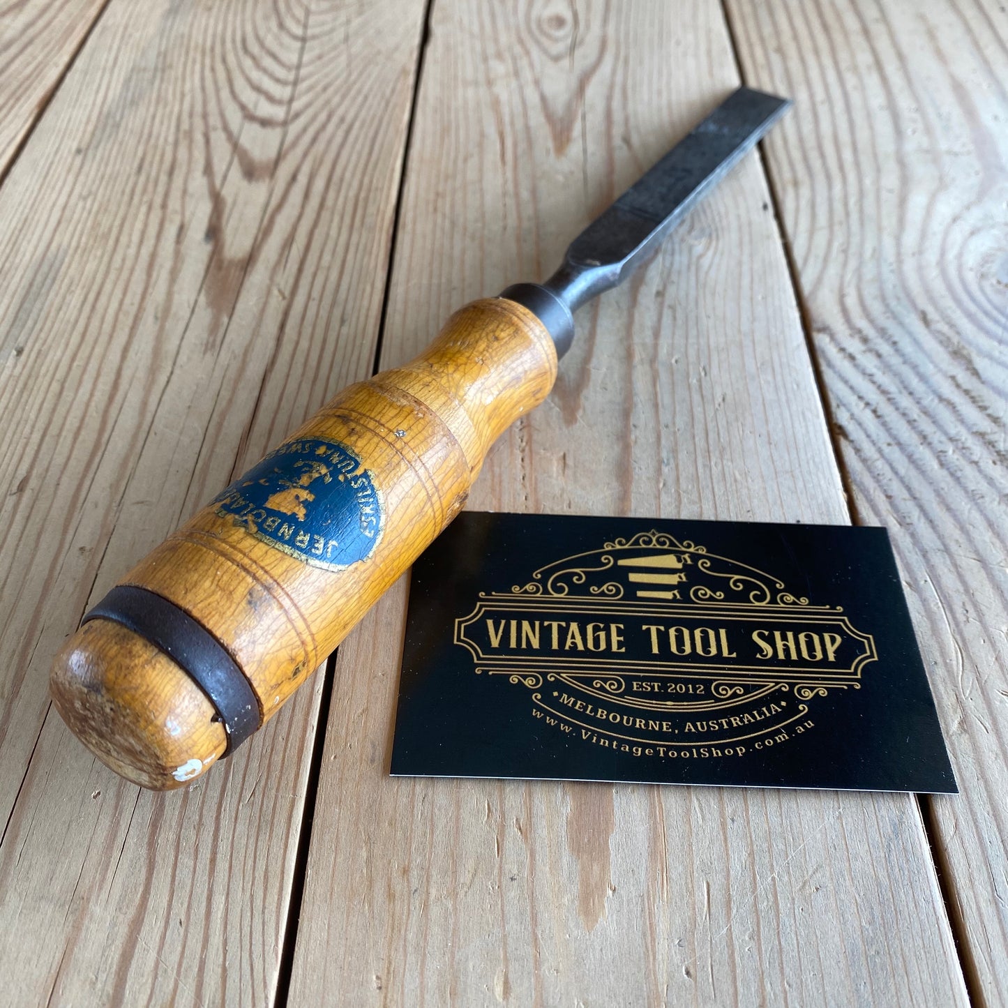 This chisel is in authentic vintage condition, wear & tear consistent with age & use, most of the original decal remains on the handle, it's in good shape a near full blade & the handle hasn't been struck, it will require sharpening prior to use, a hard to find Jernbolaget firmer chisel.