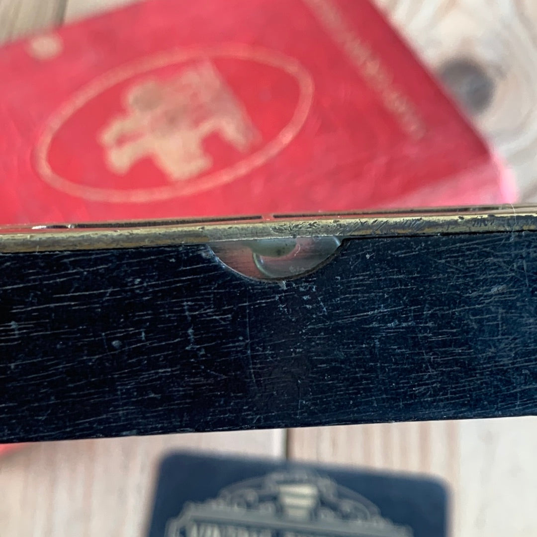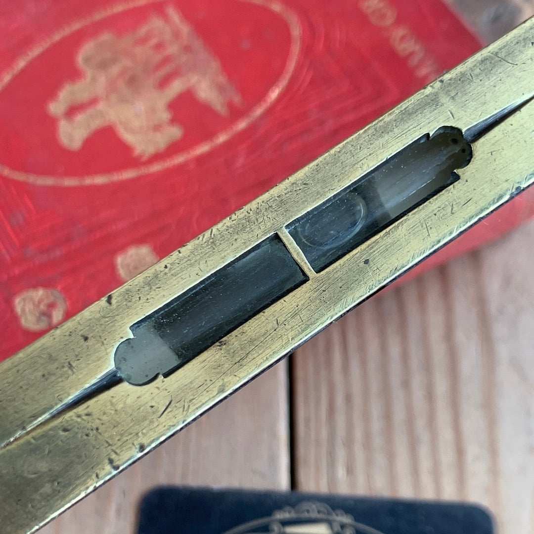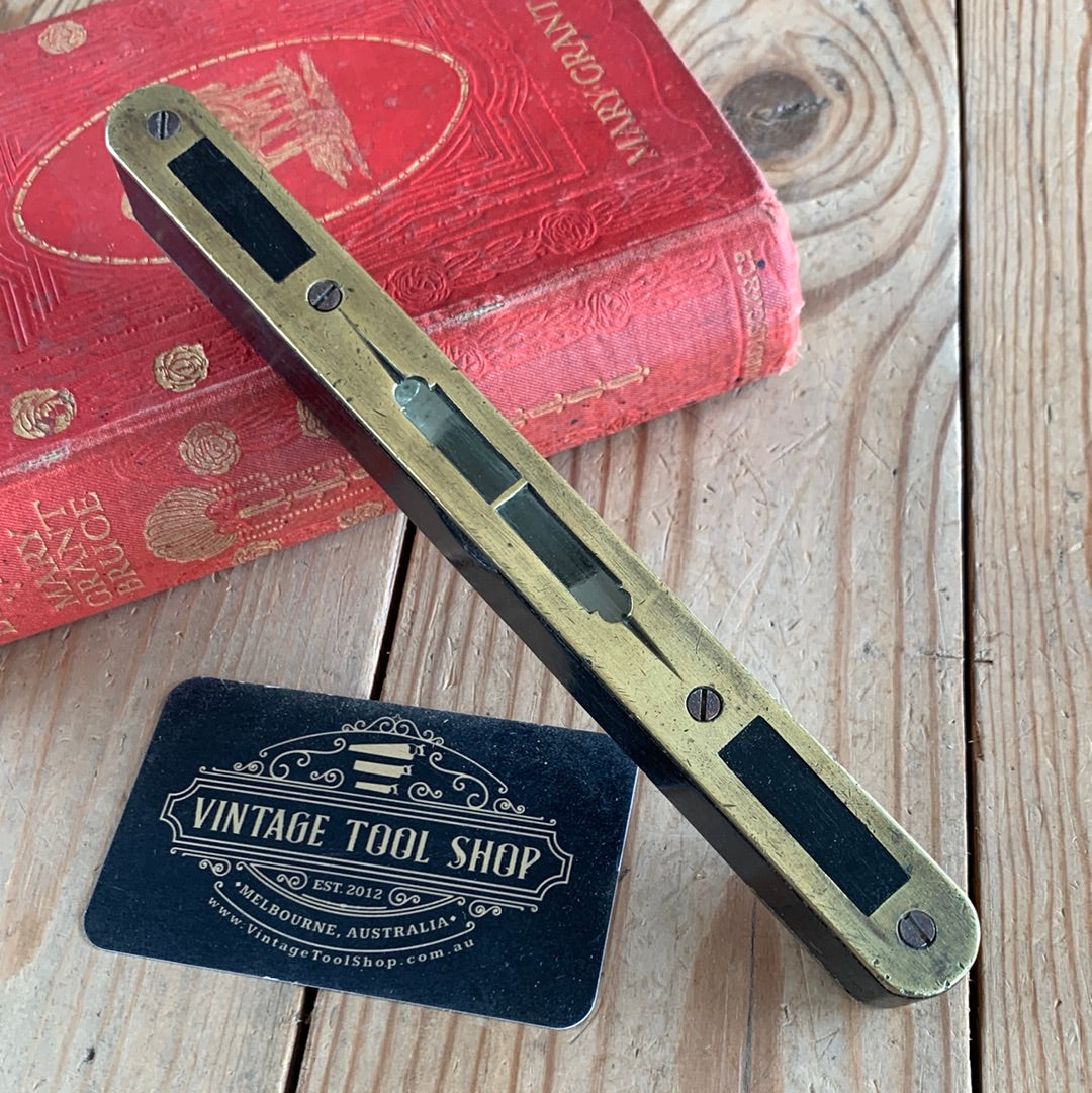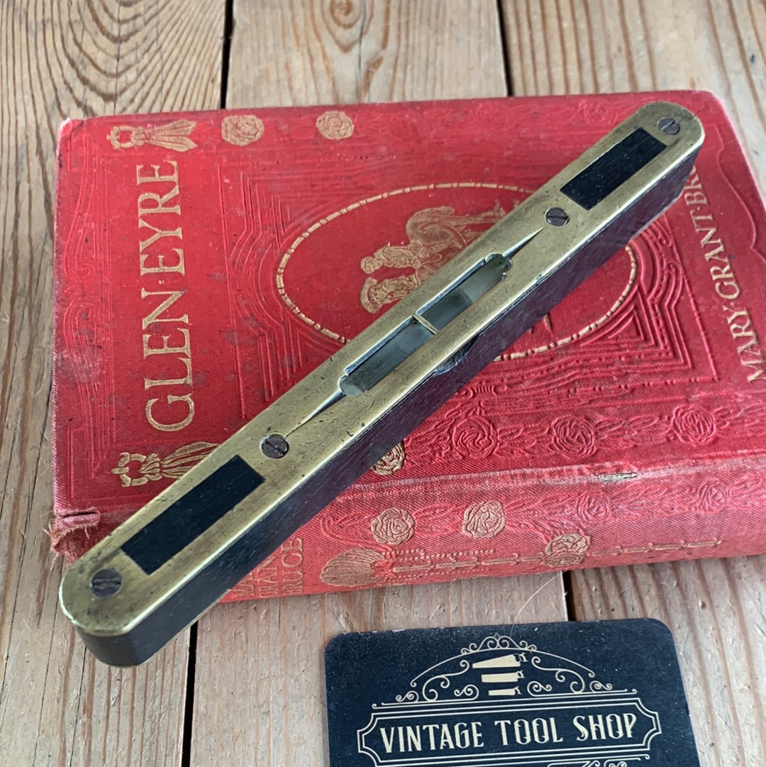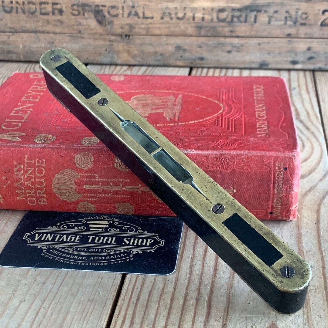 This level is in authentic vintage condition, wear and tear consistent with age & use, some dents & scratches & wear to the brass & ebony, a high quality fancy ebony & brass level.