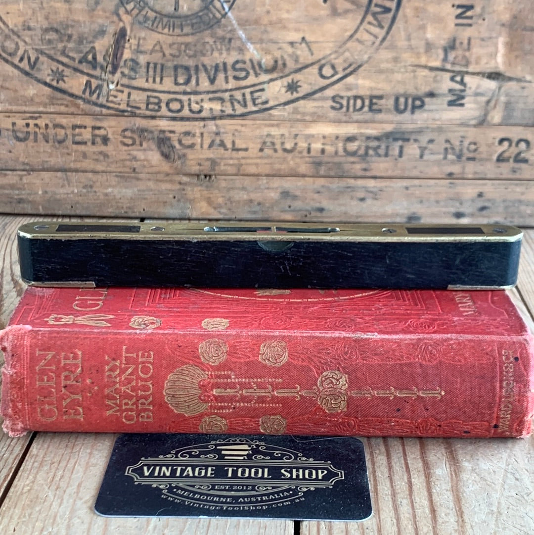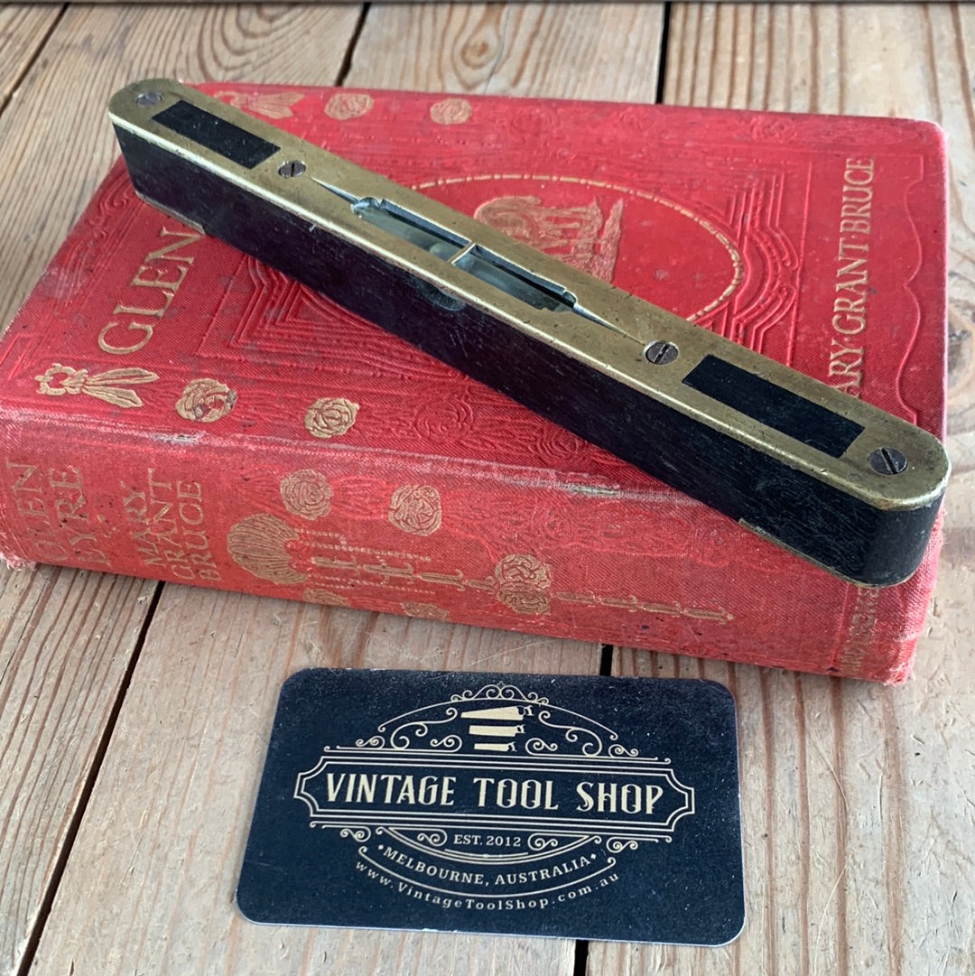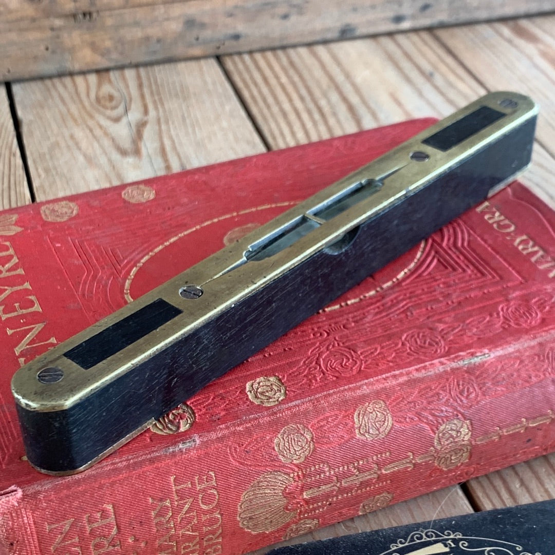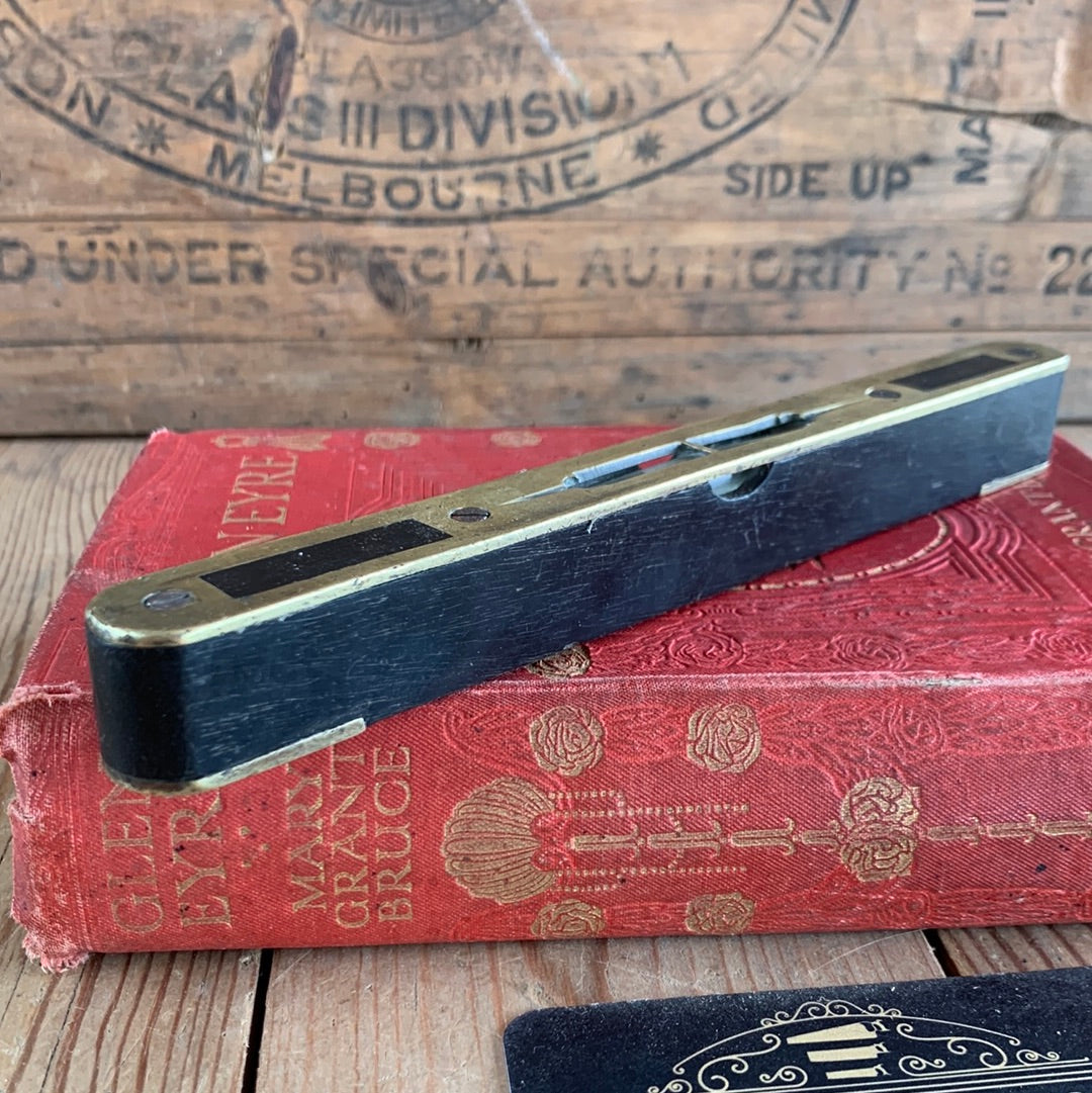 SOLD D1238 Vintage fancy 8” EBONY & BRASS infill LEVEL