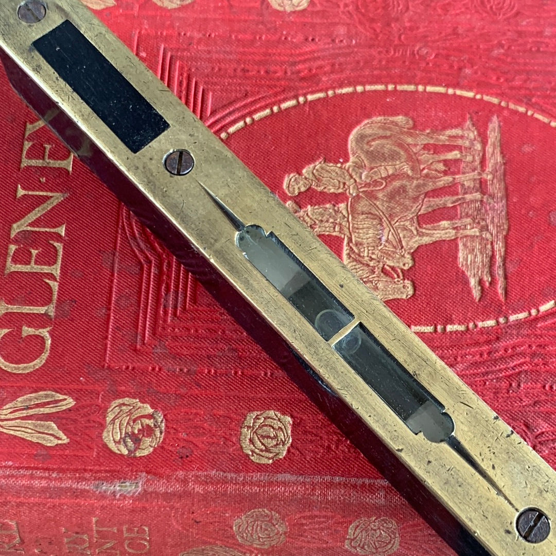 Up for sale is a gorgeous & fancy 8” EBONY & BRASS infill LEVEL that in unsigned but most likely English or Scottish manufacture.