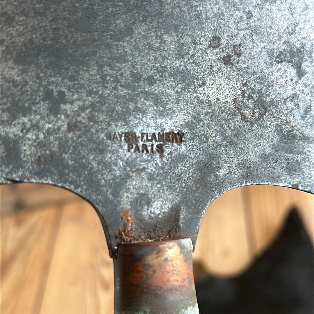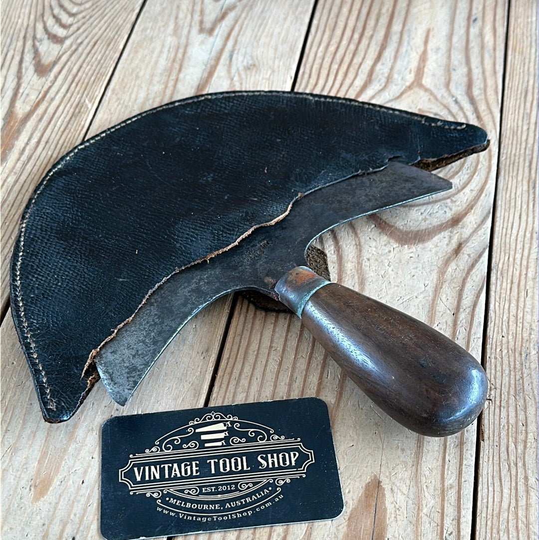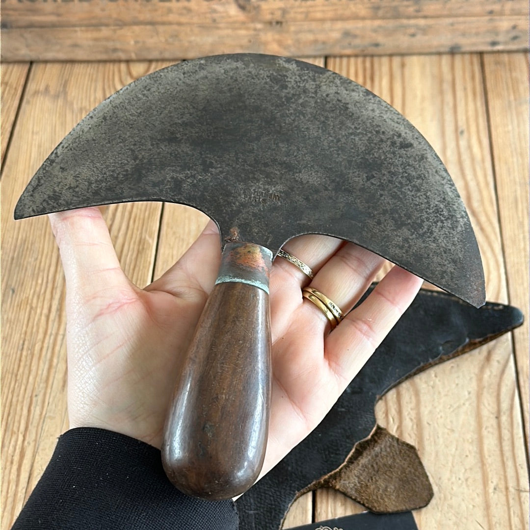 SOLD D1442 Vintage large HALF MOON LEATHER saddlers KNIFE by MAYER & FLAMERY of PARIS with cover
