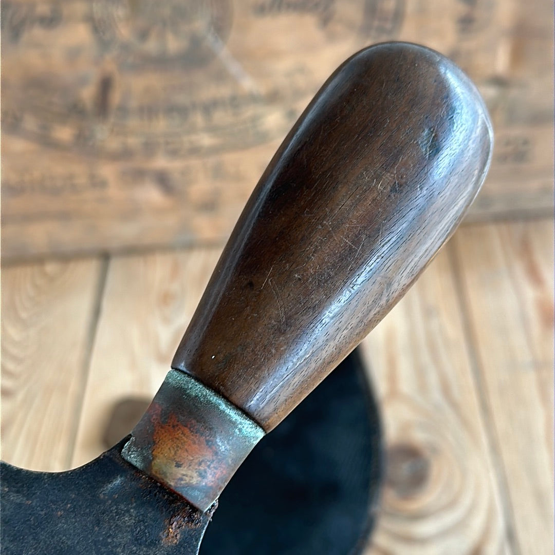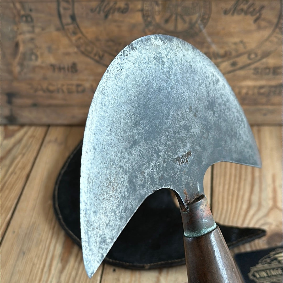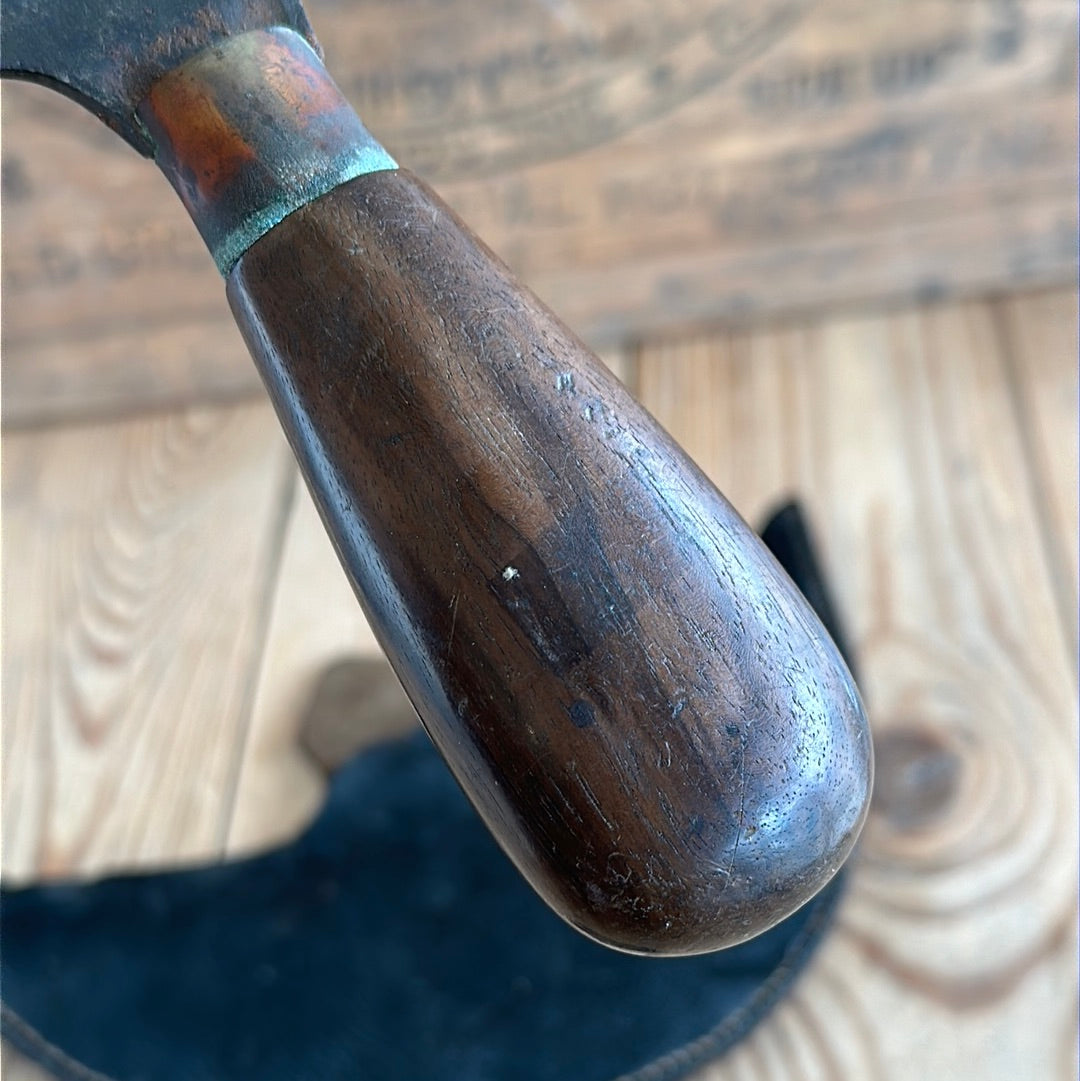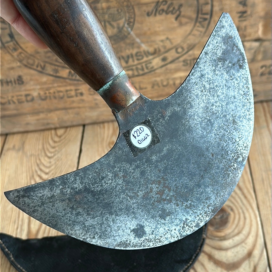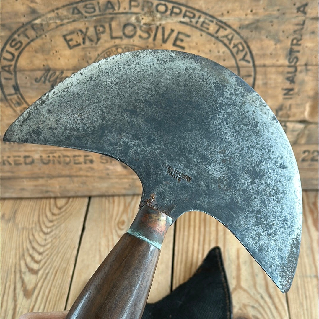 Up for sale is a vintage large 1/2 moon LEATHERWORK / SADDLERS KNIFE with a CARBON STEEL blade & a cool HANDLE fashioned out of FIGURED WALNUT & with a brass ferrule.