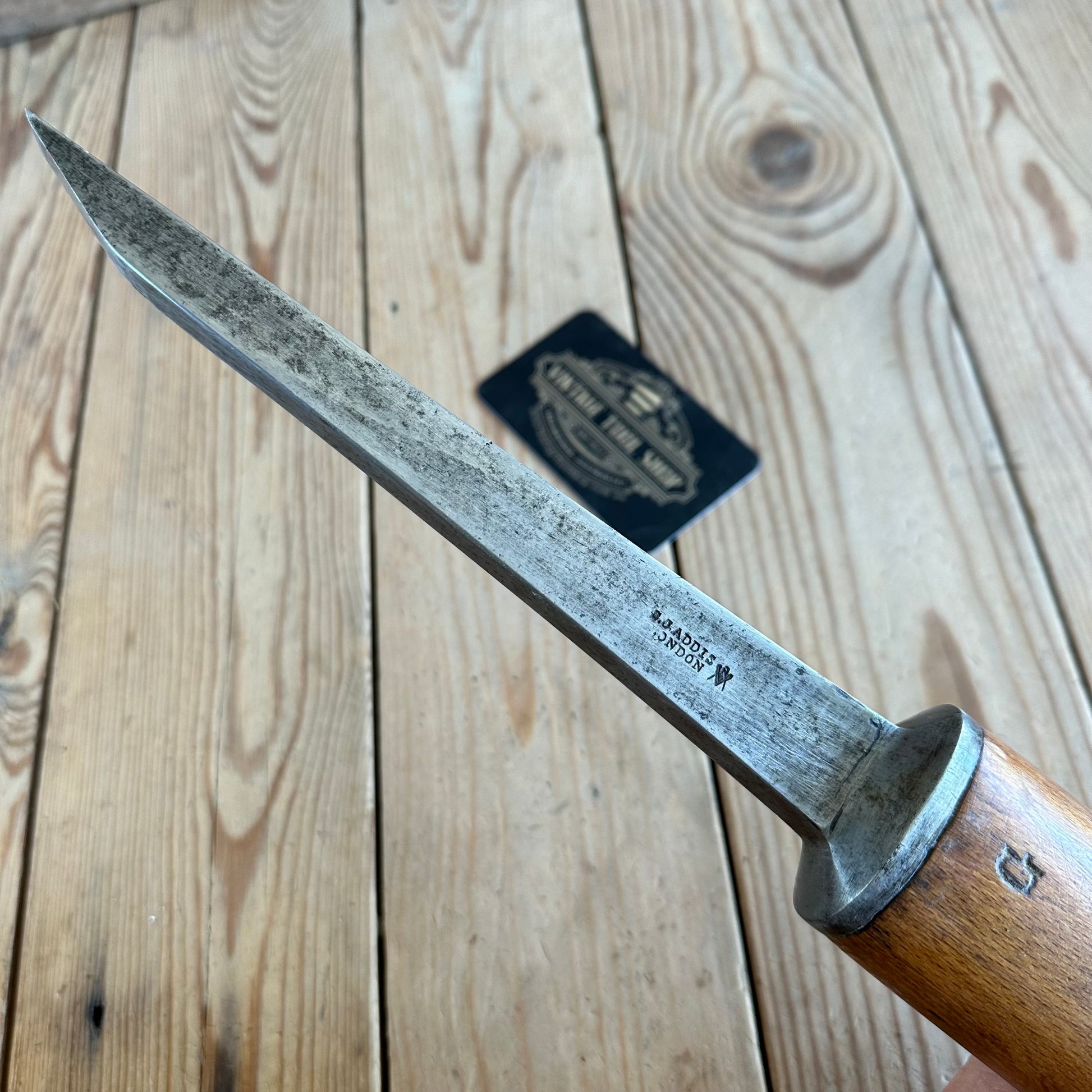 Up for sale is an antique PIG STICKER MORTISE CHISELS by S&J ADDIS - 1/2” 13mm width, extremely useful for cutting out mortises with their trapezoidal cross sectioned blades they don't get jammed in the hole & are made stronger through the depth of blade for levering chips out.