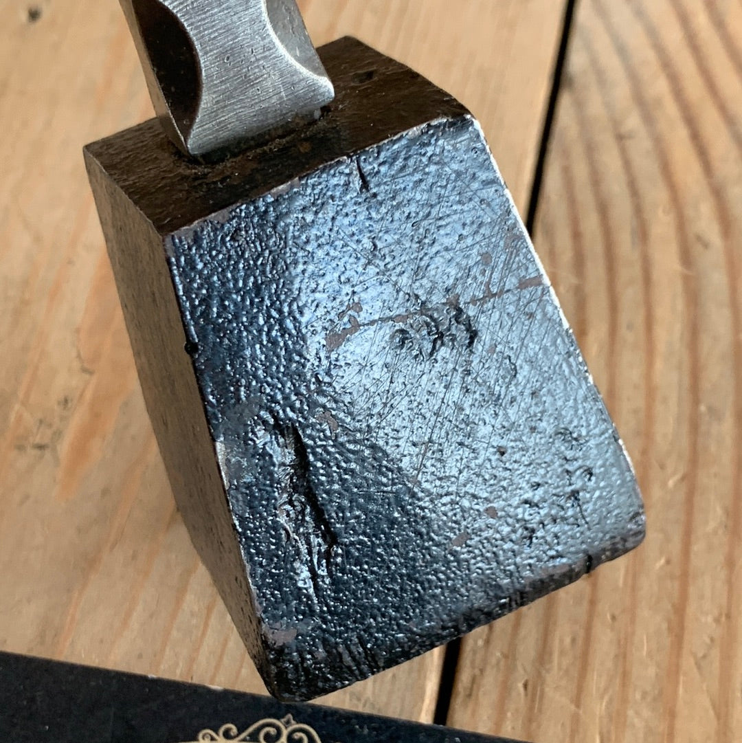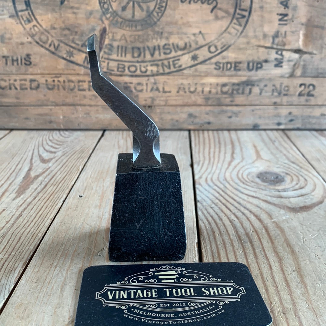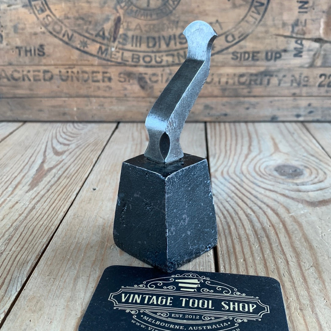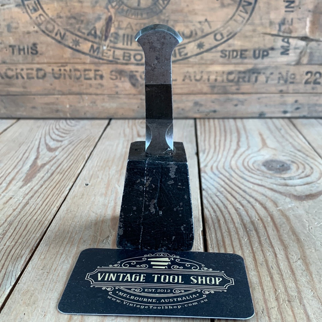 Up for sale is a small jewellers STAKE ANVIL, on a cast iron base approximately 45mm x 45mm square. The curved top of the stake has a bevel on it (approximately 50°) & is 22mm wide & 4mm thick.