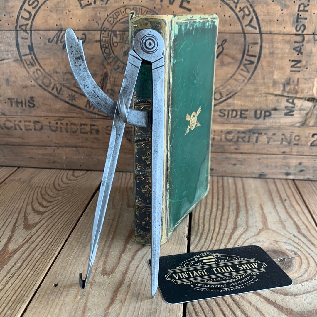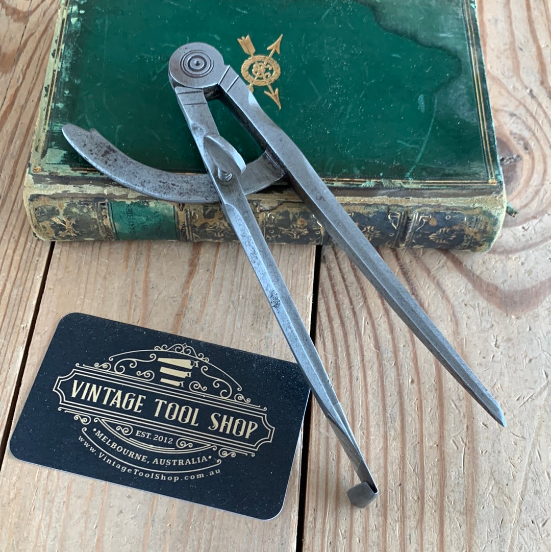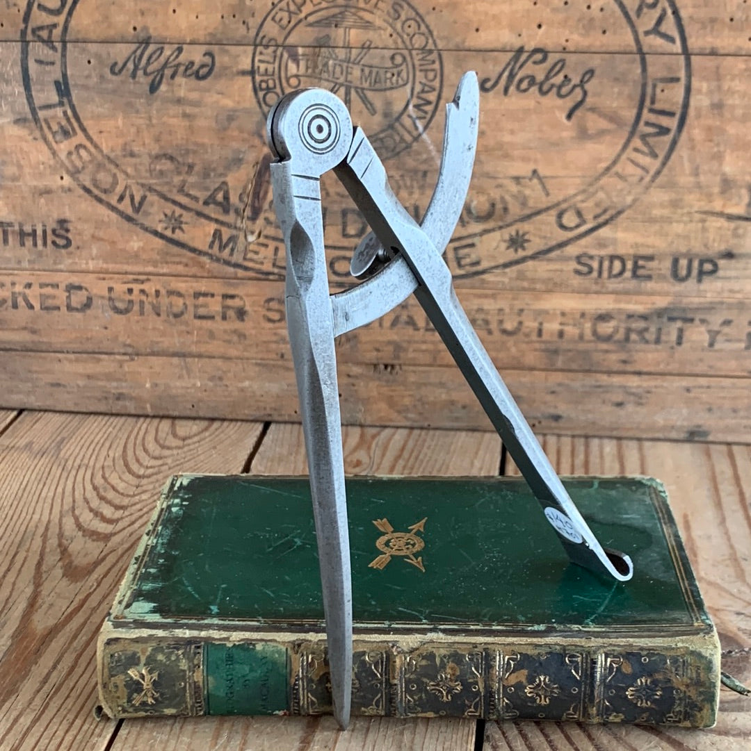 Up for sale is an unusual LEATHER COMPASS marking tool, with a cutting edge on one arm. Also handy for use as a circular timber scribe for  cutting into the surface of boards etc.