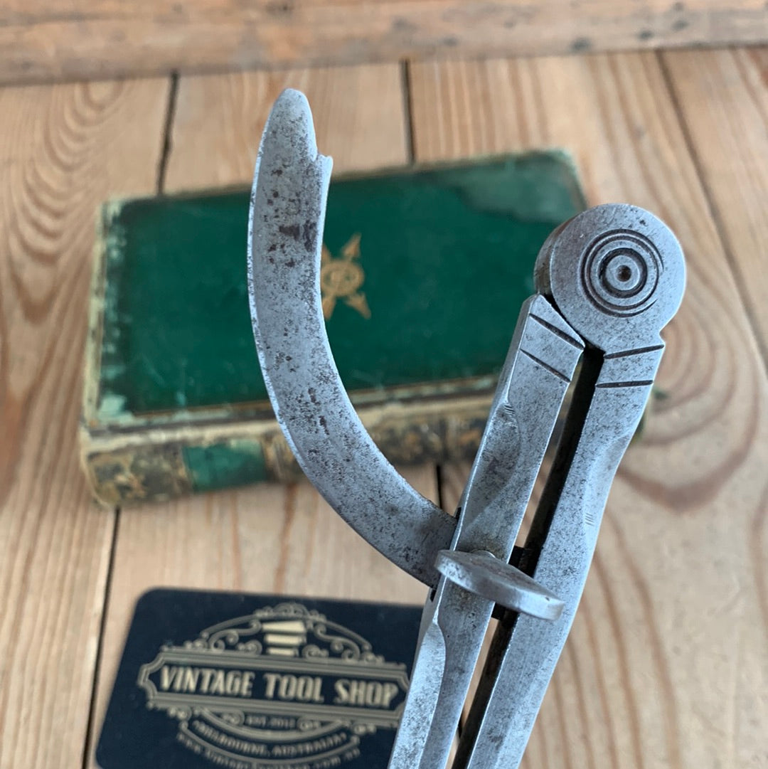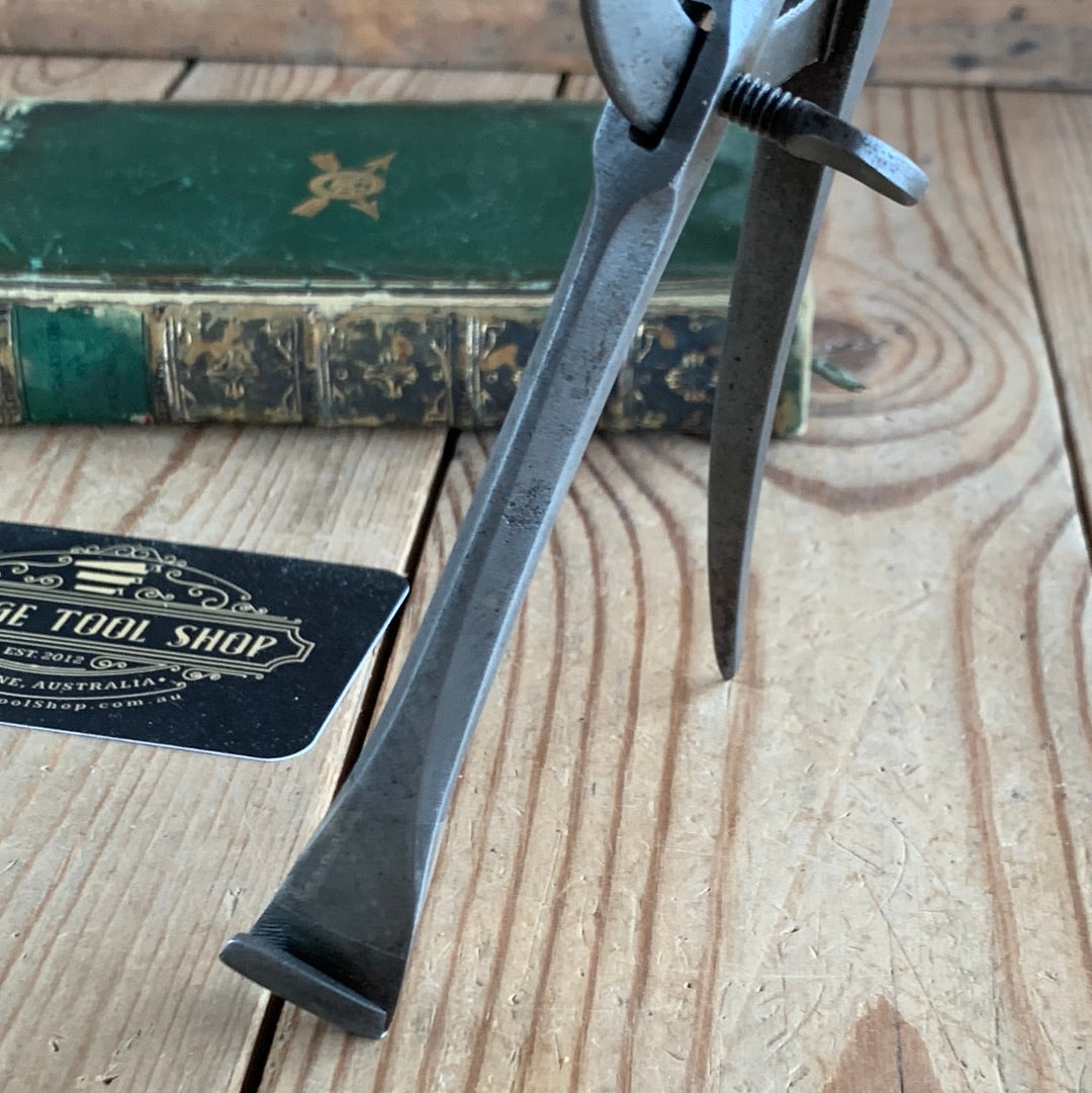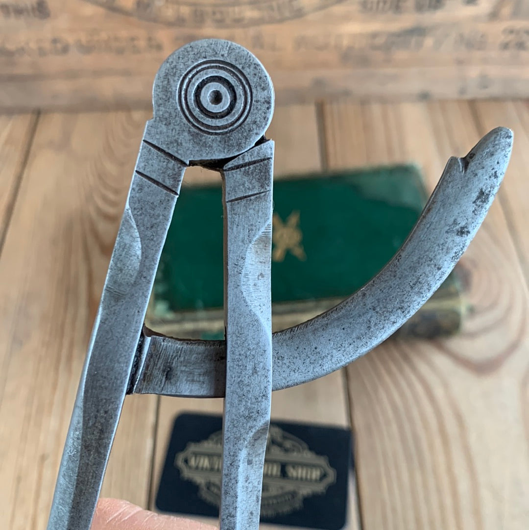 Up for sale is an unusual LEATHER COMPASS marking tool, with a cutting edge on one arm. Also handy for use as a circular timber scribe for  cutting into the surface of boards etc.