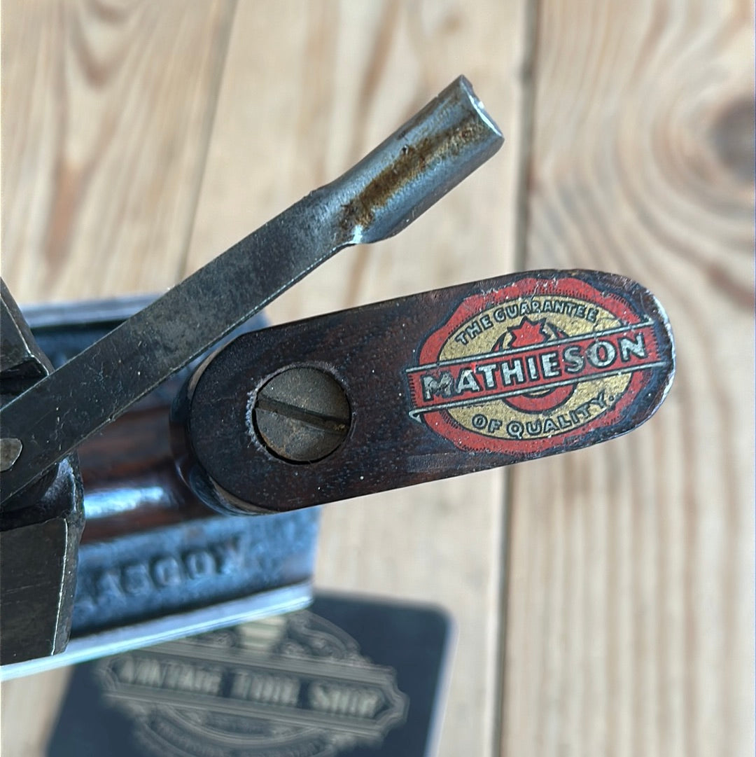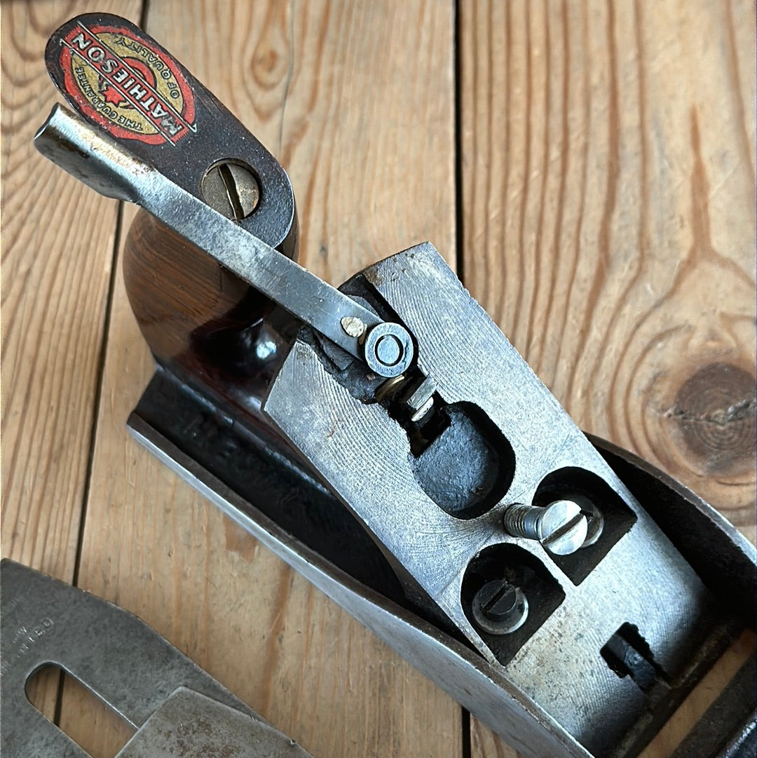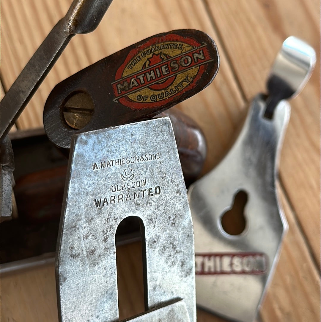 This plane is in authentic vintage condition, wear and tear consistent with age & very light use, a full Mathieson cutter, Rosewood handles with a complete trade label to the top of the rear handle. A gorgeous & rare smoother. Sharp enough to use.