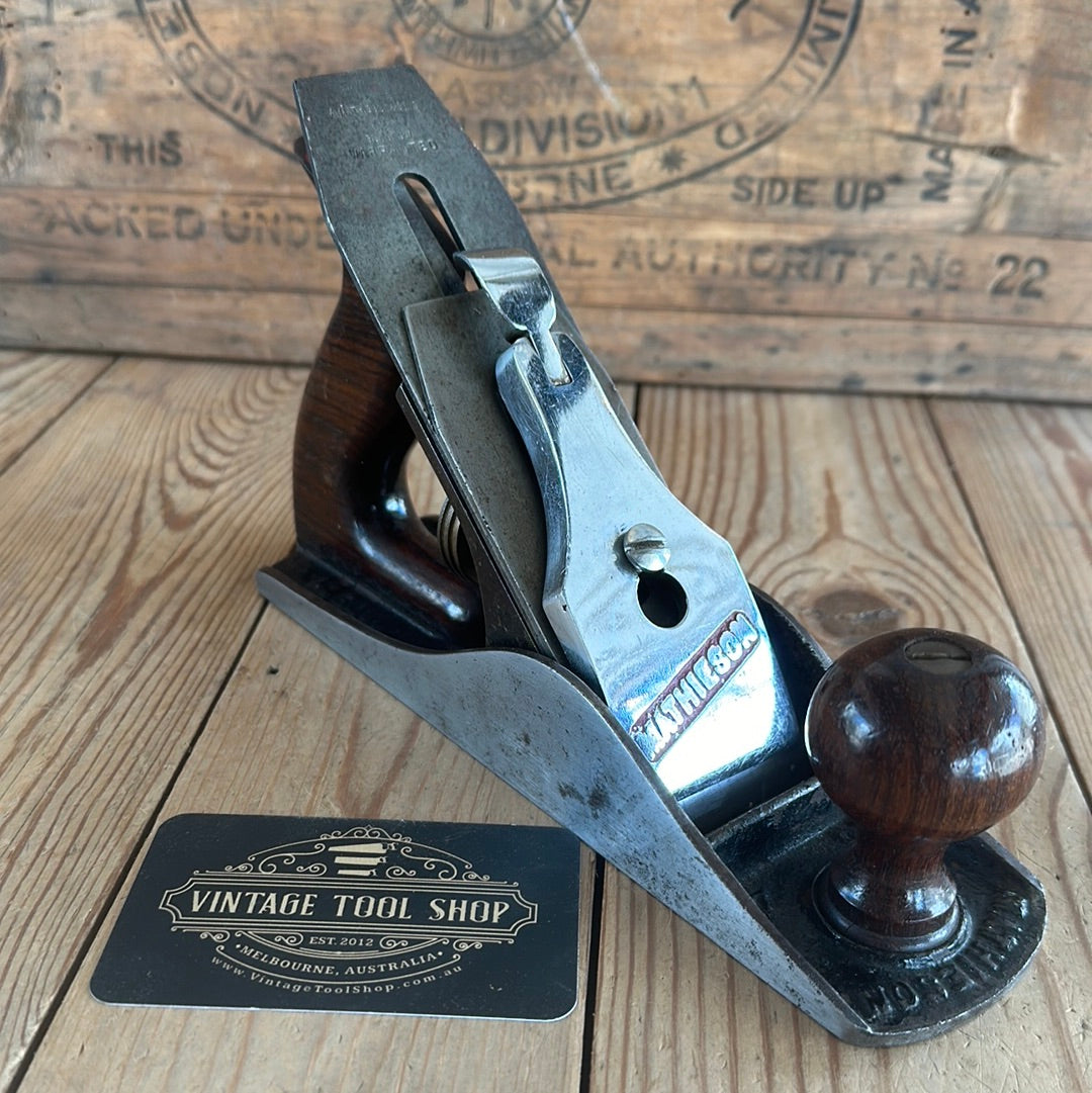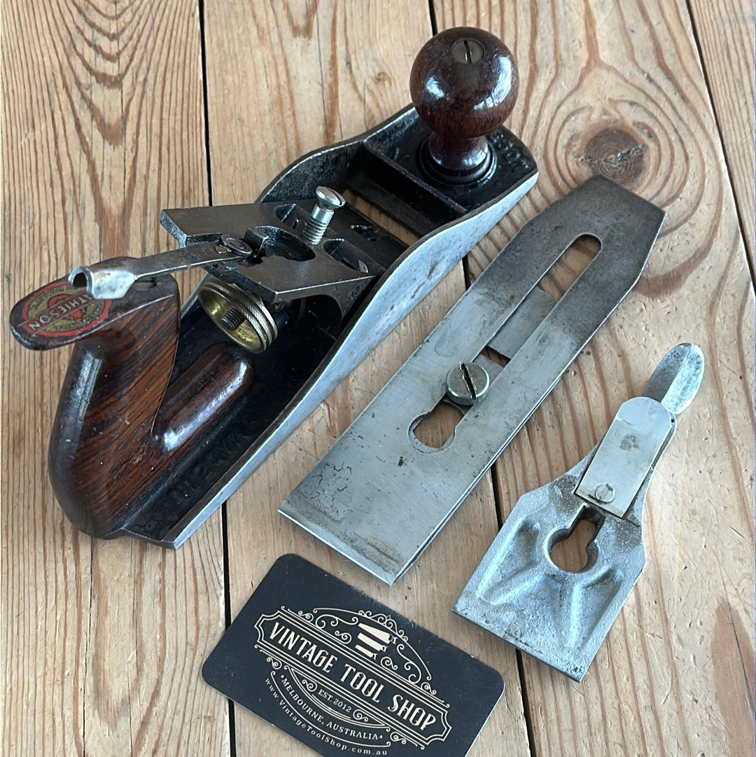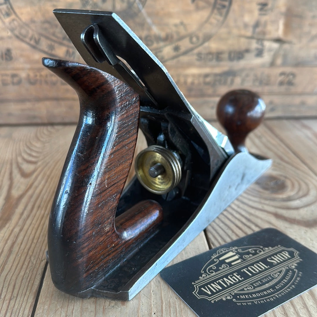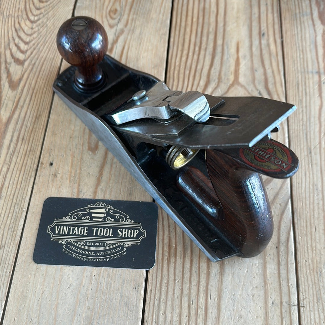 This plane is in authentic vintage condition, wear and tear consistent with age & very light use, a full Mathieson cutter, Rosewood handles with a complete trade label to the top of the rear handle. A gorgeous & rare smoother. Sharp enough to use.