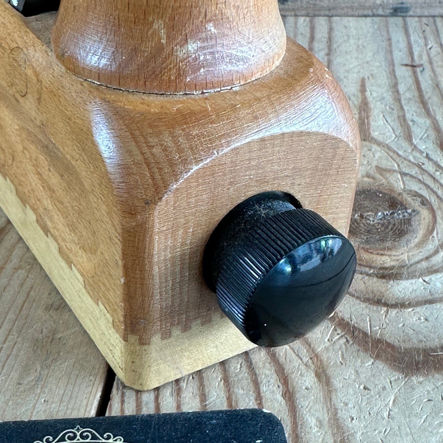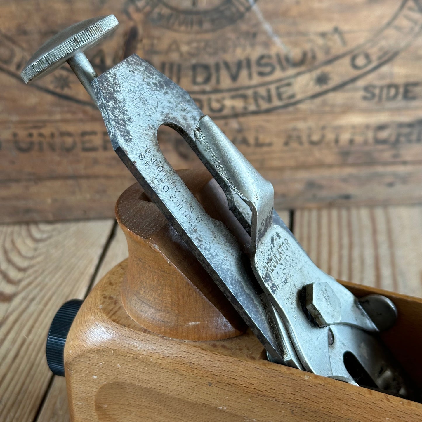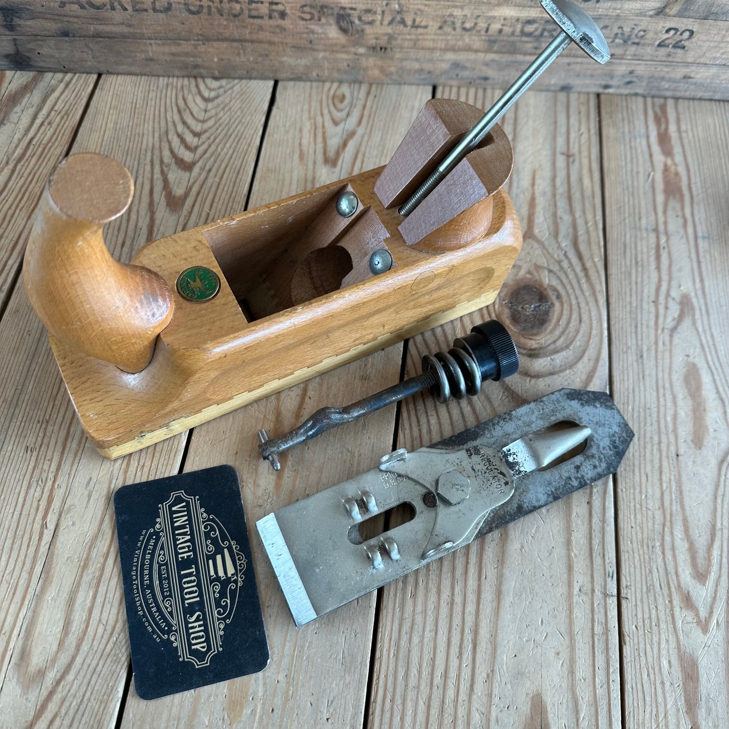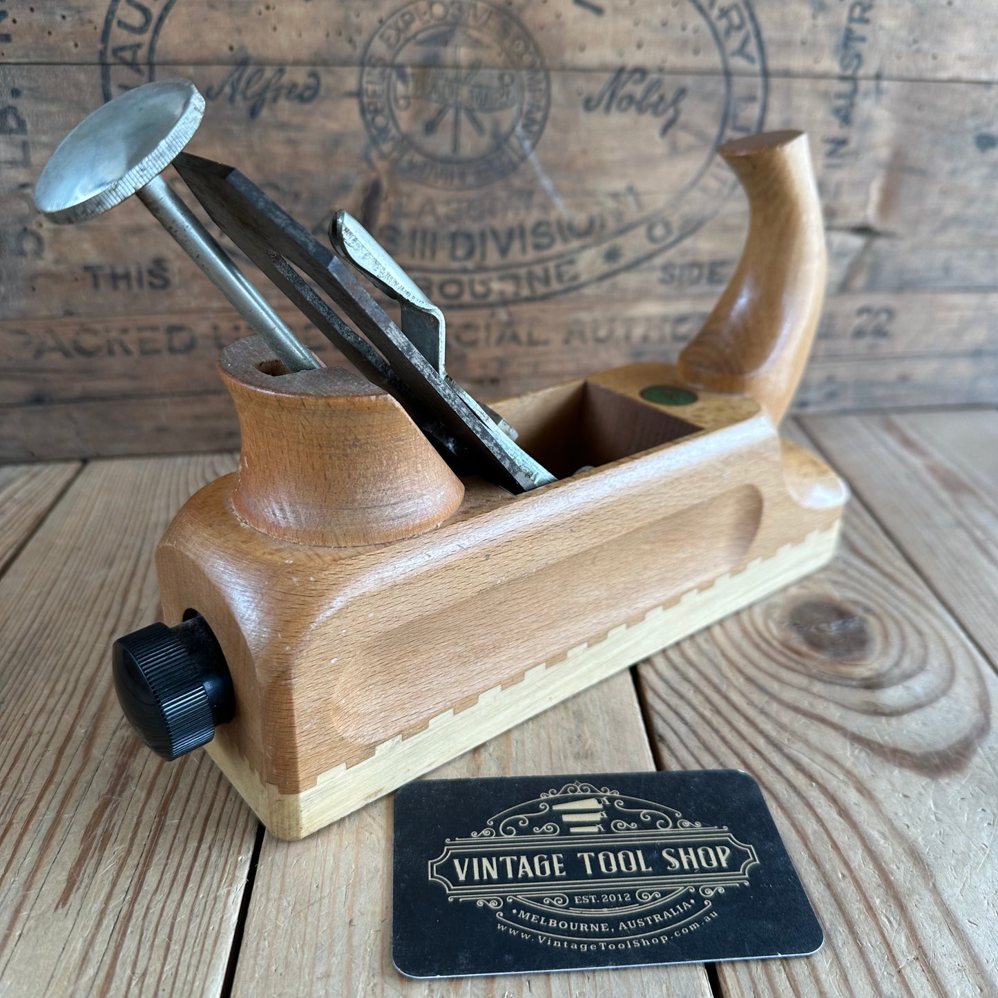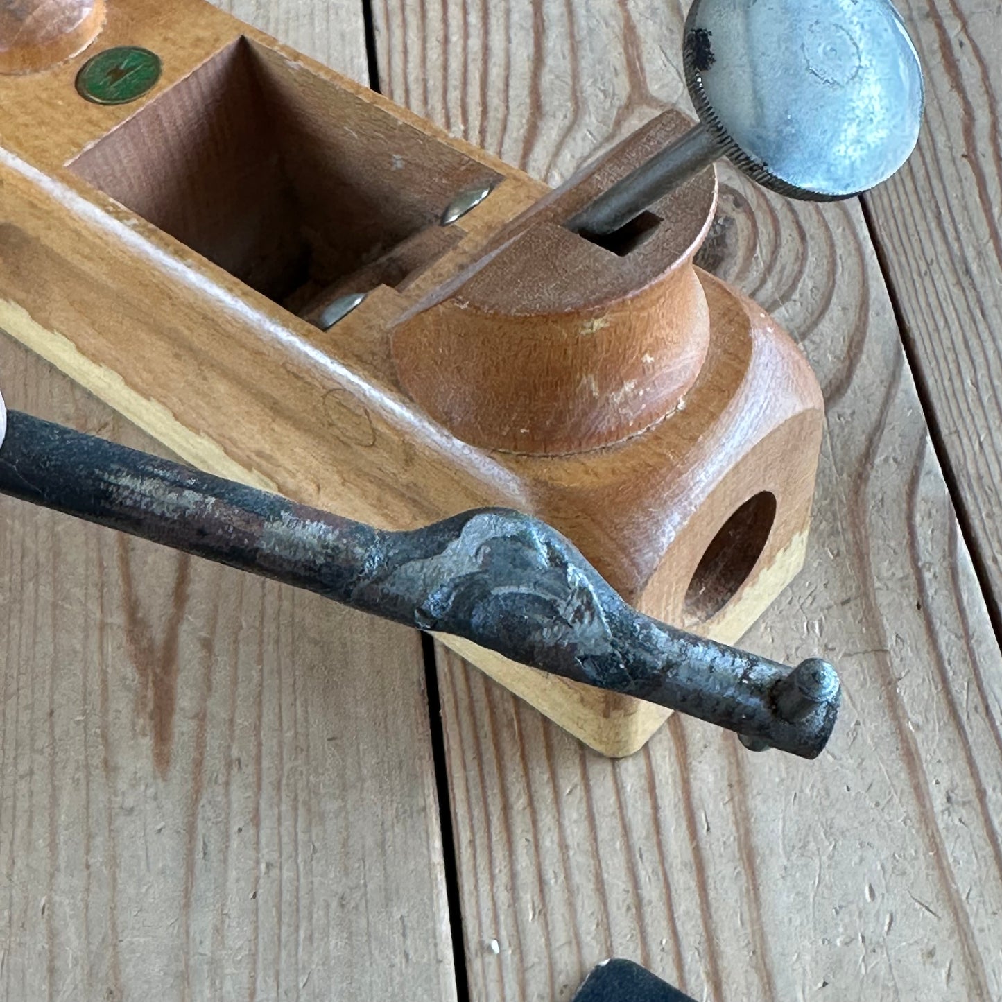 This plane is in authentic lightly used vintage condition. Some tarnish to the blade & a well done repair to the tensioning rod, It will require sharpening prior to use. A high performance smoothing plane from one of the best German makers.