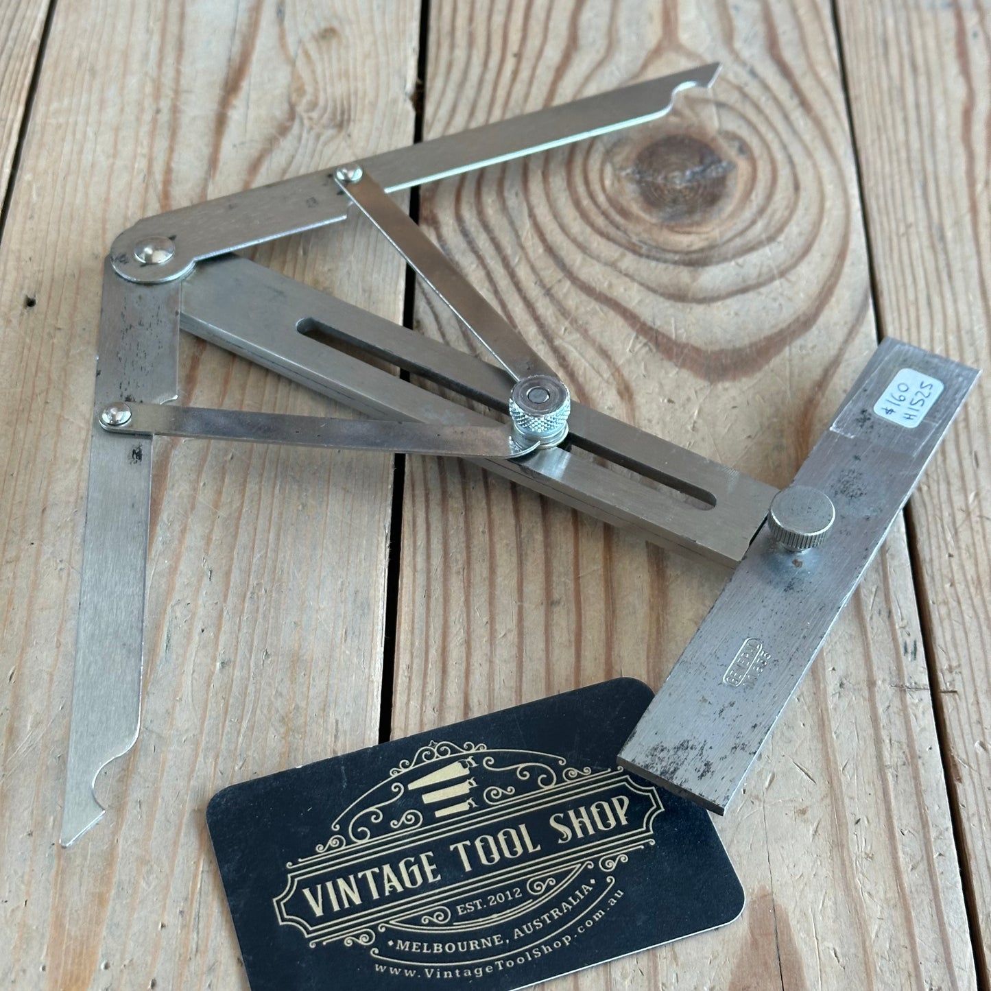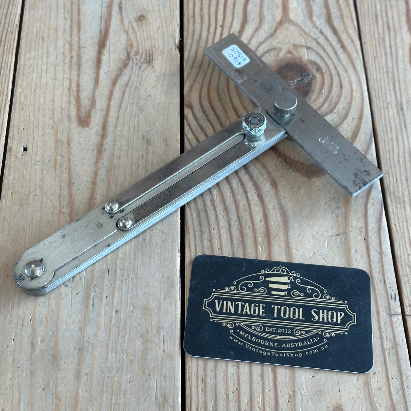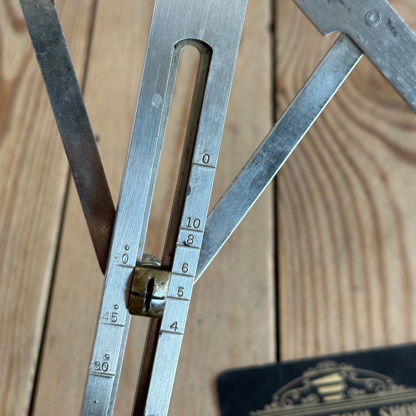 This angle divider is in authentic vintage condition, wear and tear consistent with age & use, some plating loss. These make halving under square or over square miters a breeze, and are a hard to find and extremely useful tool.