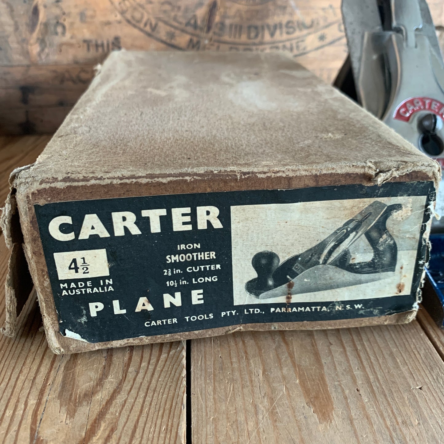Up for sale is a vintage CARTER Australia No:4 & 1/2 wide bodied smoothing plane In its original box.