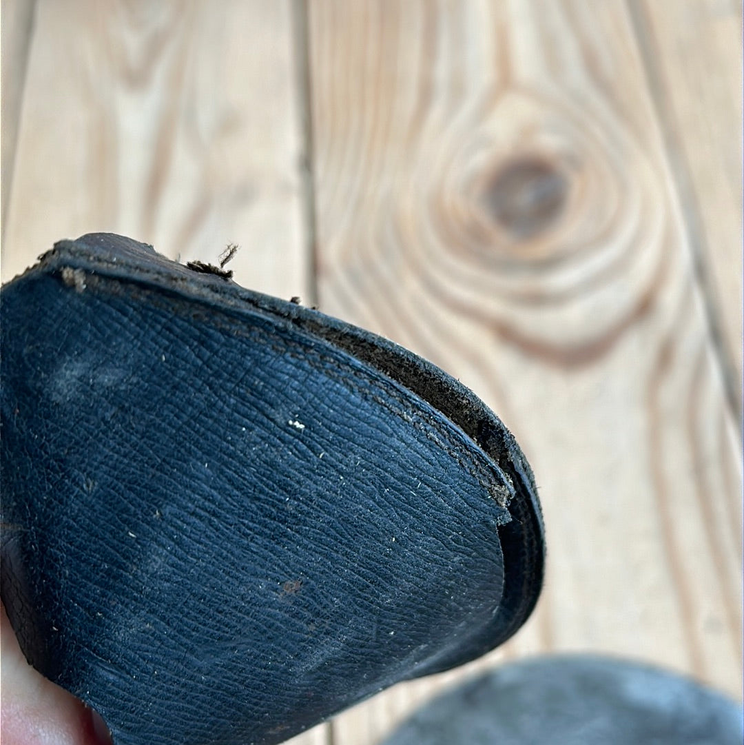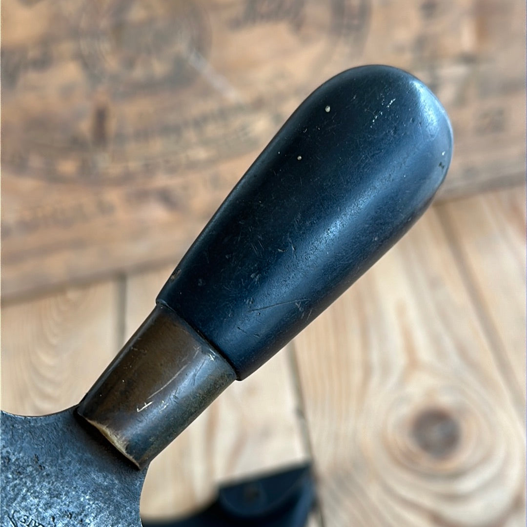 Up for sale is a vintage smaller 1/2 moon LEATHERWORK / SADDLERS KNIFE with a CARBON STEEL blade & a cool HANDLE fashioned out of jet black EBONY & a brass ferrule.