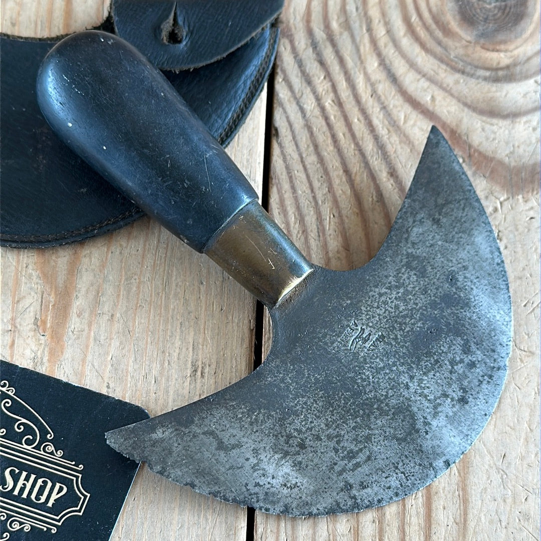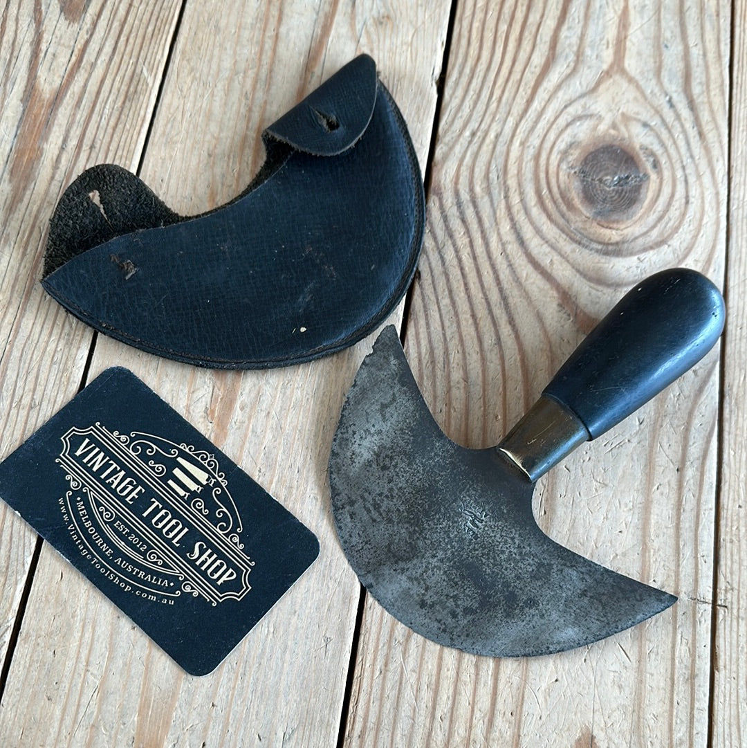 SOLD H988 Vintage BLANCHARD small HALF MOON LEATHER KNIFE with cover