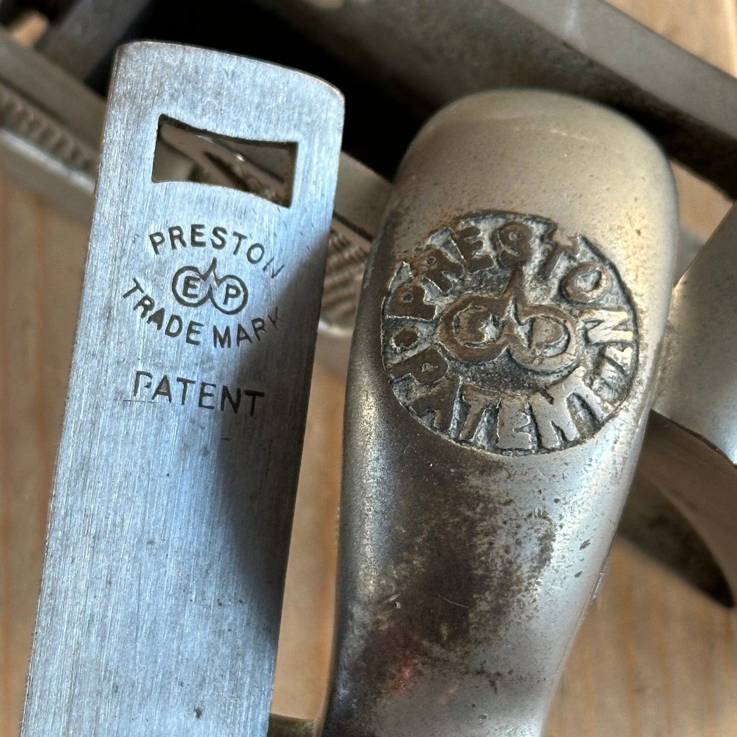 Up for sale is an antique EDWARD PRESTON No:1355A BULLNOSE SHOULDER PLANE, its a lovely example, lots of nickel plate & matching numbers body, cutter & cap iron & a nice tight mouth.