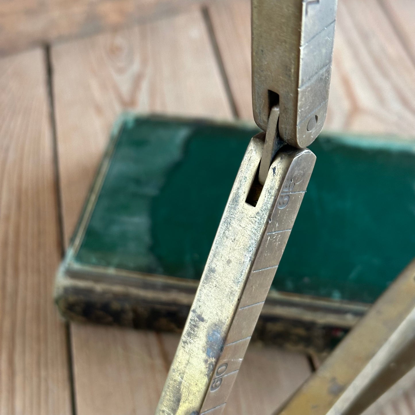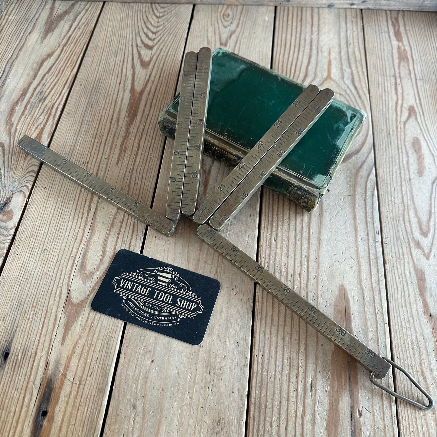 This ruler is in authentic vintage condition, wear and tear consistent with age & use, the brass has a pleasant patina of age, an uncommon rule to find.