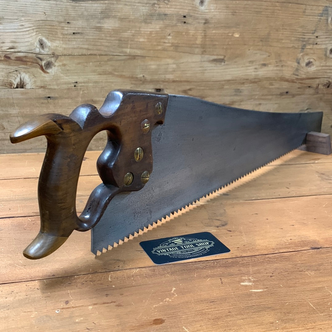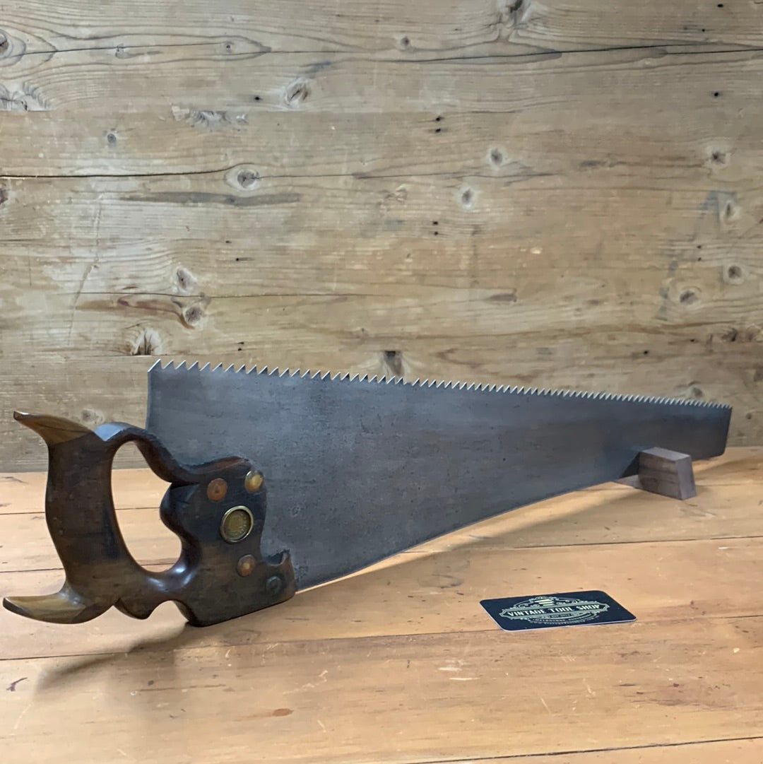 Up for sale is a hard to find Premium Quality HENRY DISSTON & SONS D8 rip saw, freshly hand sharpened & set. Pretty much the industry standard workhorse of rip saws, a thumbhole applewood handle with 5 x saw bolts & a 26” plate that has a good taper grind. Circa 1880s.