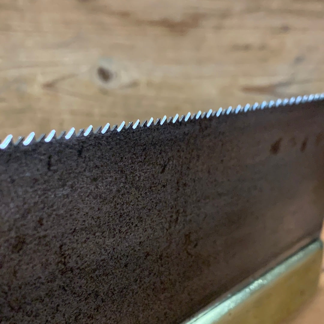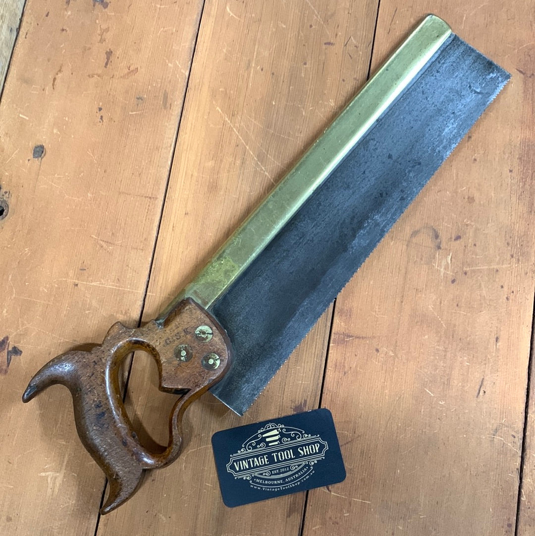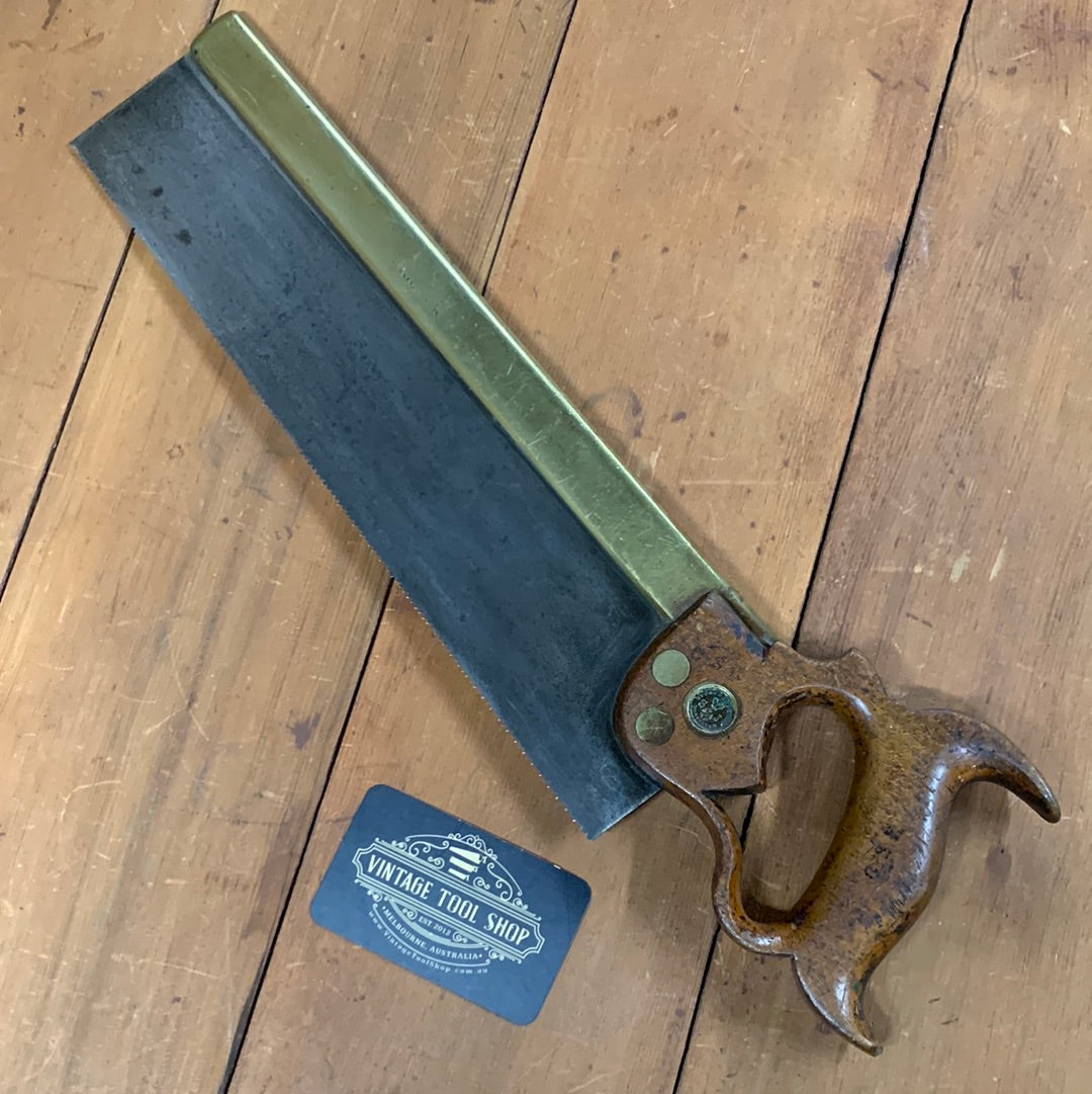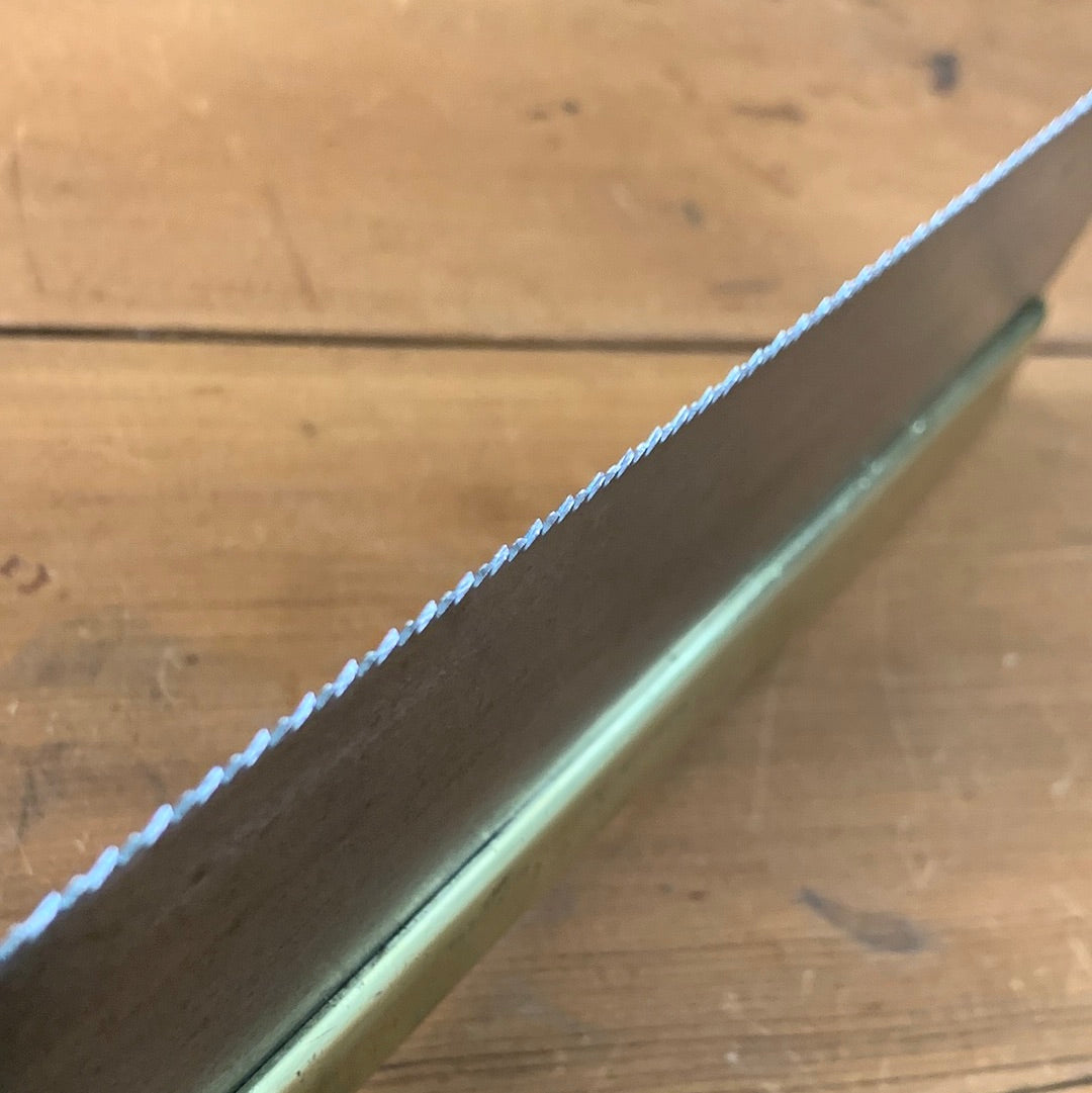 Up for sale is a hard to find SPEAR & JACKSON Carcass saw, a heavy brass back & a London Spring steel plate. This saw has been custom sharpened to be an 11ppi saw, a fast cutting carcass saw.
