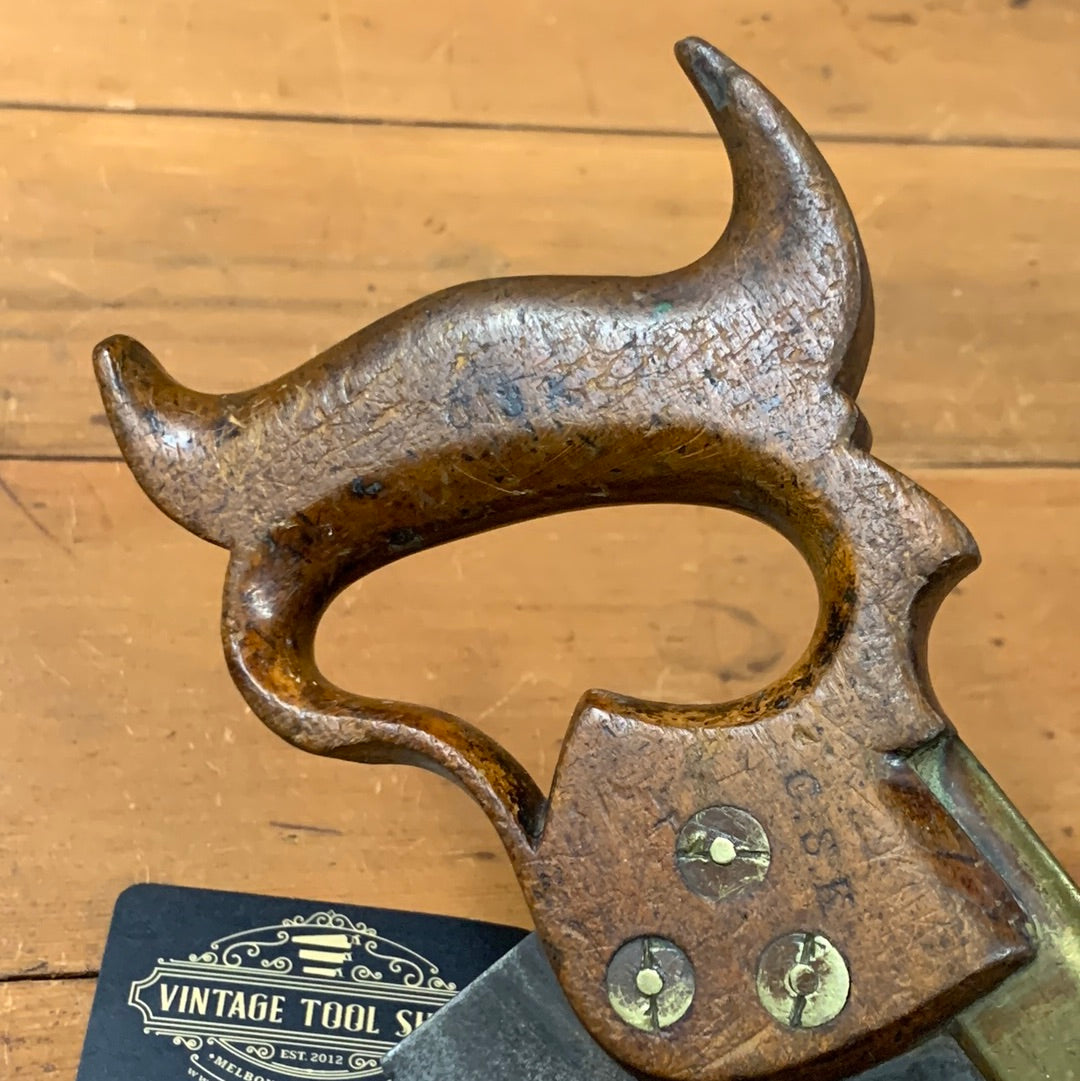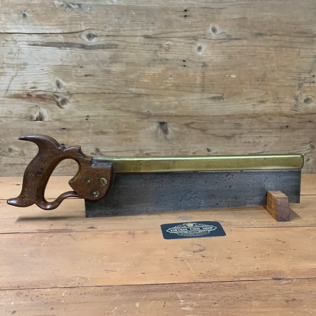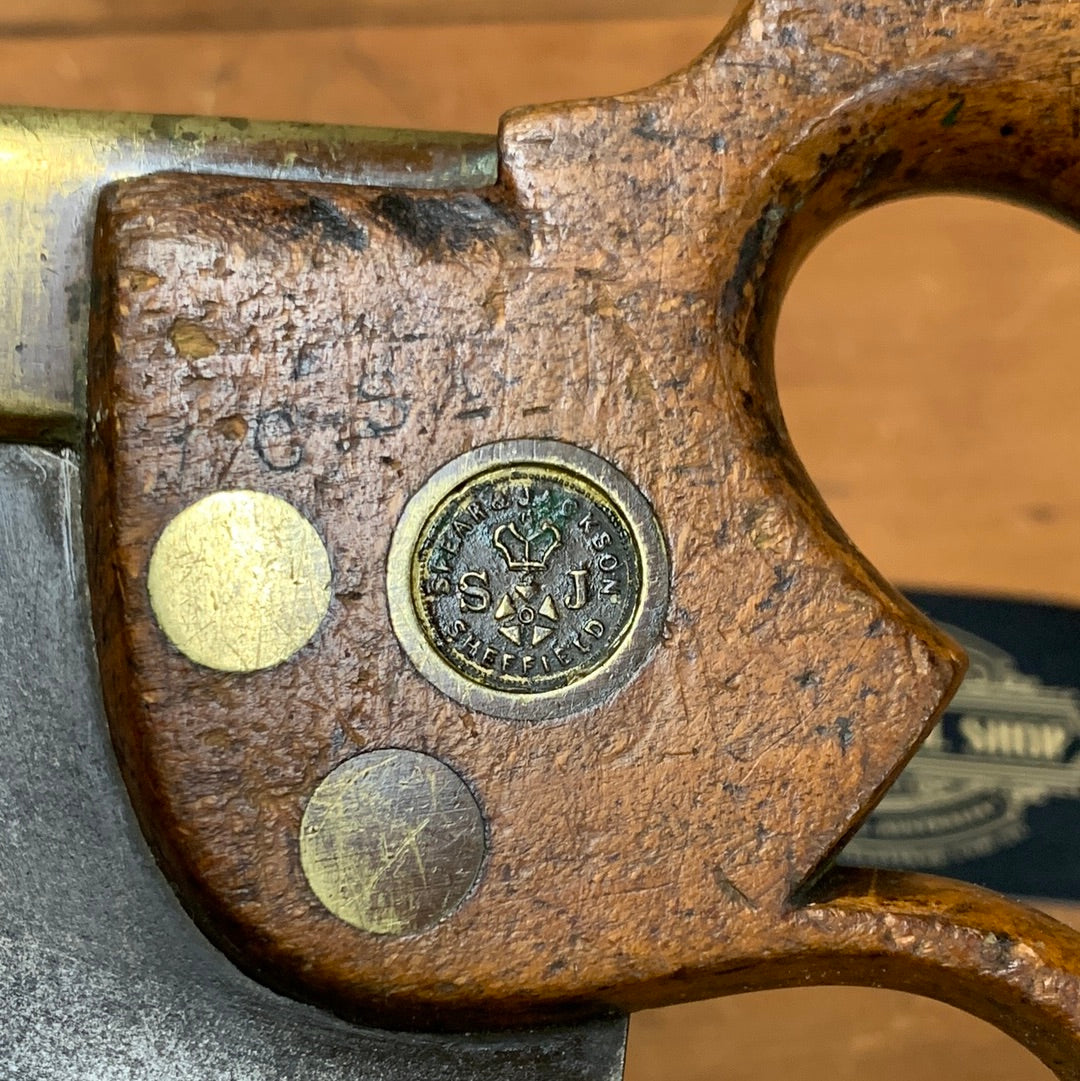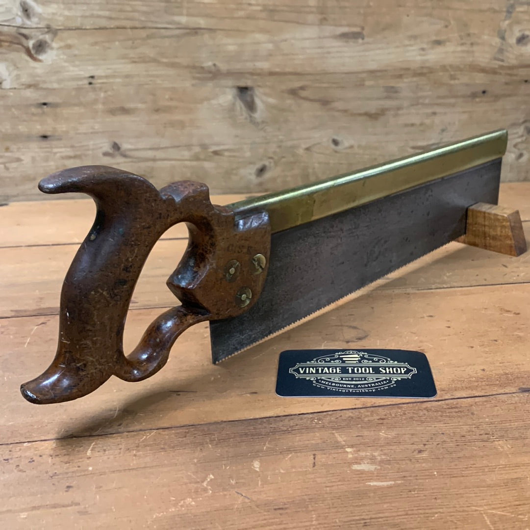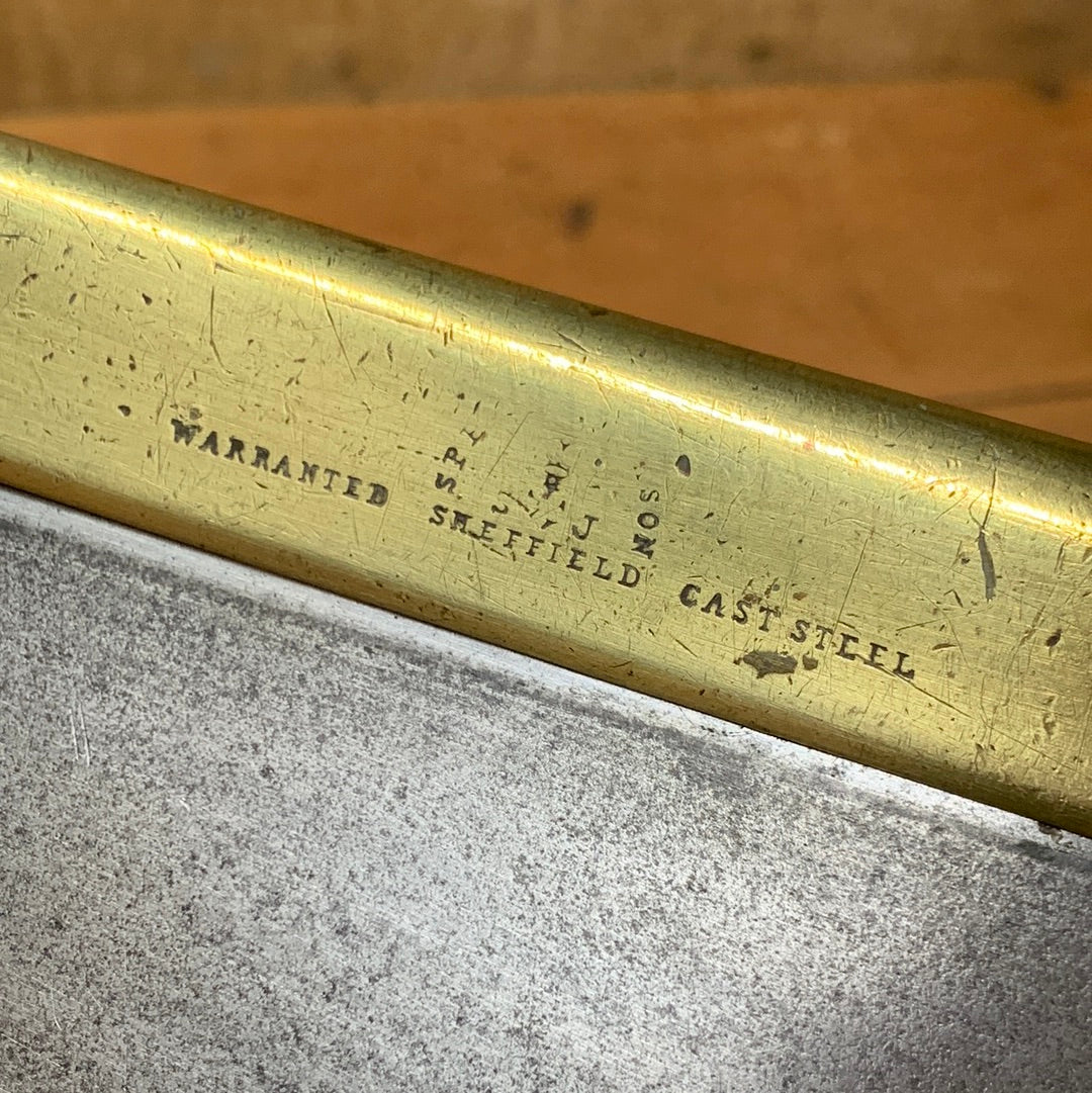 Up for sale is a hard to find SPEAR & JACKSON Carcass saw, a heavy brass back & a London Spring steel plate. This saw has been custom sharpened to be an 11ppi saw, a fast cutting carcass saw.