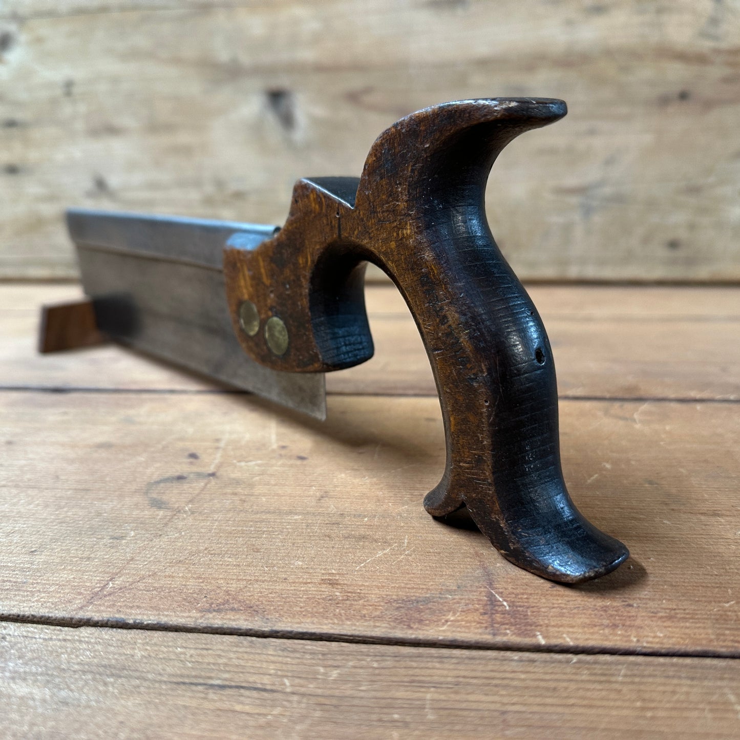 A comfortable handle & a folded back, this is a saw from the "Golden Years" of saw manufacture from the early 20th century, when their skill was at it's zenith & the materials were high quality & makers took pride in their work & stood by their tools as a quality product, carpenters weren't using hand held circular saws yet, so they needed saws that worked well & held an edge.