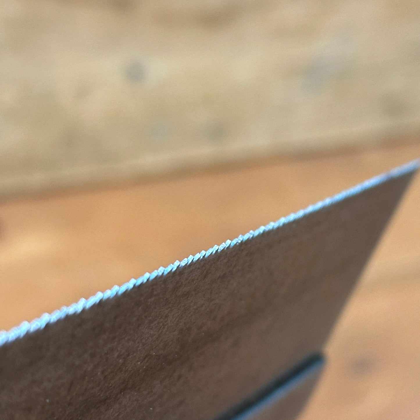 An 8" / 203mm plate 0.6mm thick & 42mm deep, freshly hand sharpened to 5° of rake & is a fine cutting 15PPI rip profile for dovetails.