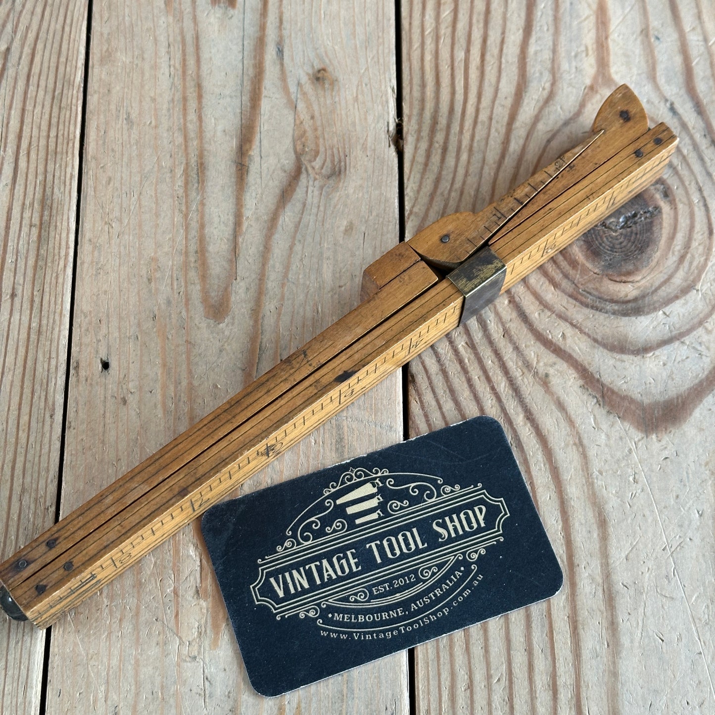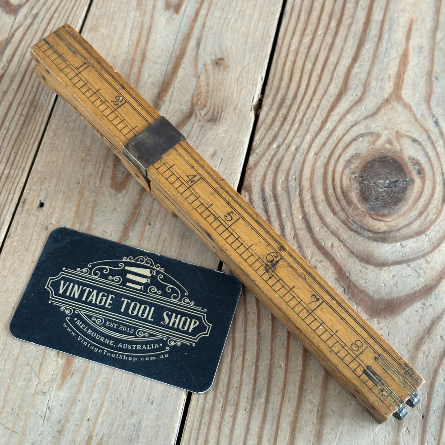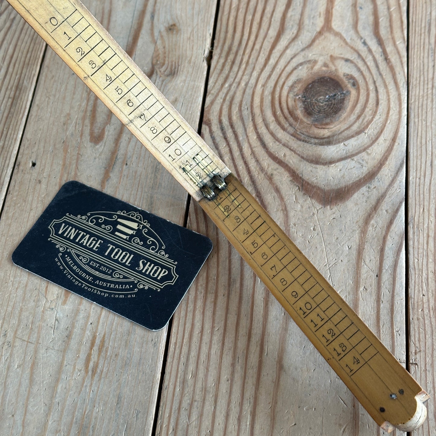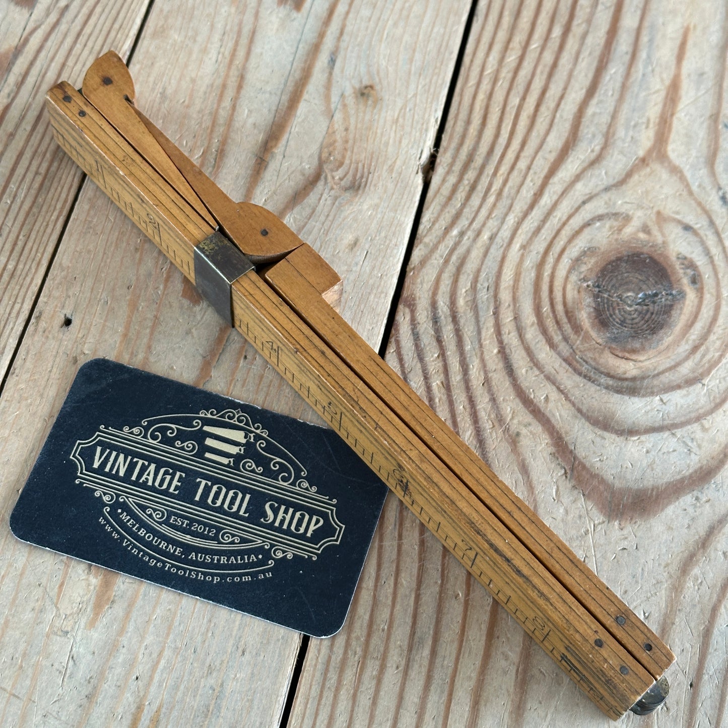 This ruler is in authentic vintage condition, wear and tear consistent with age & use, some staining however all of the locating pins & hinges are good, a lovely boxwood cobblers rule by ULLATHORNE.