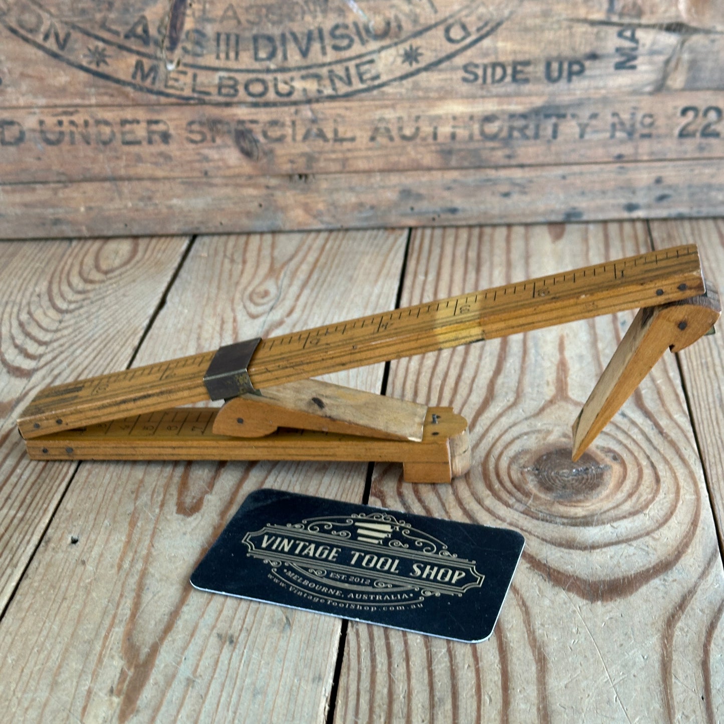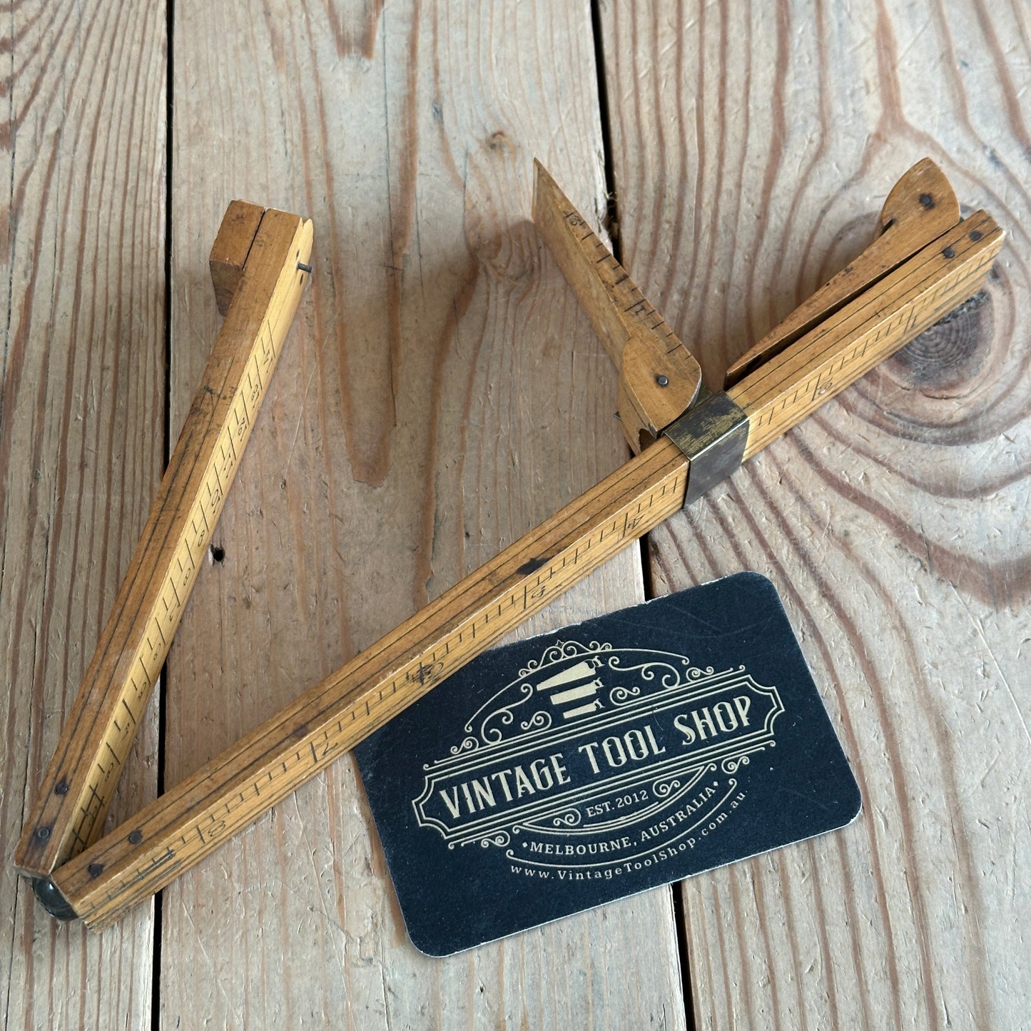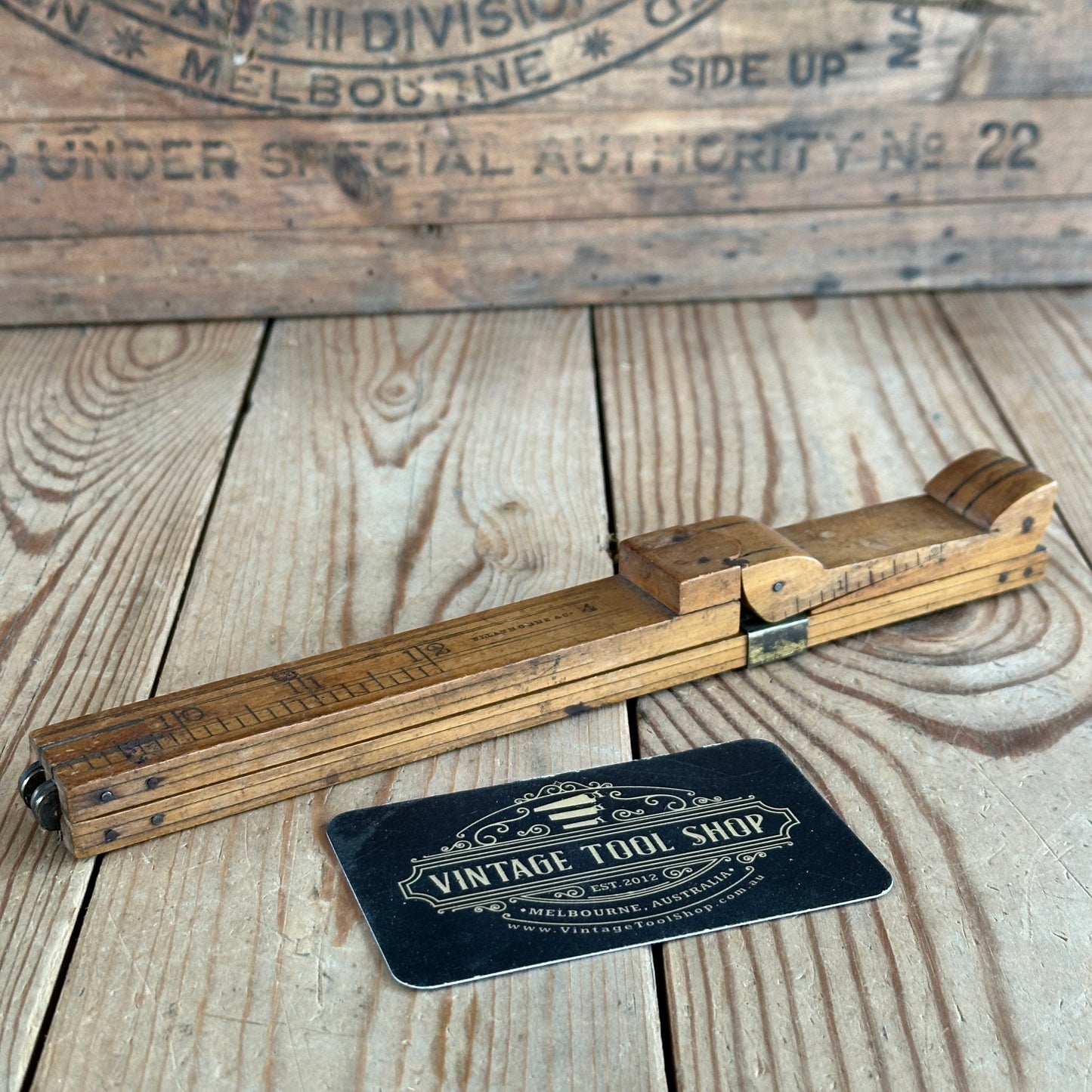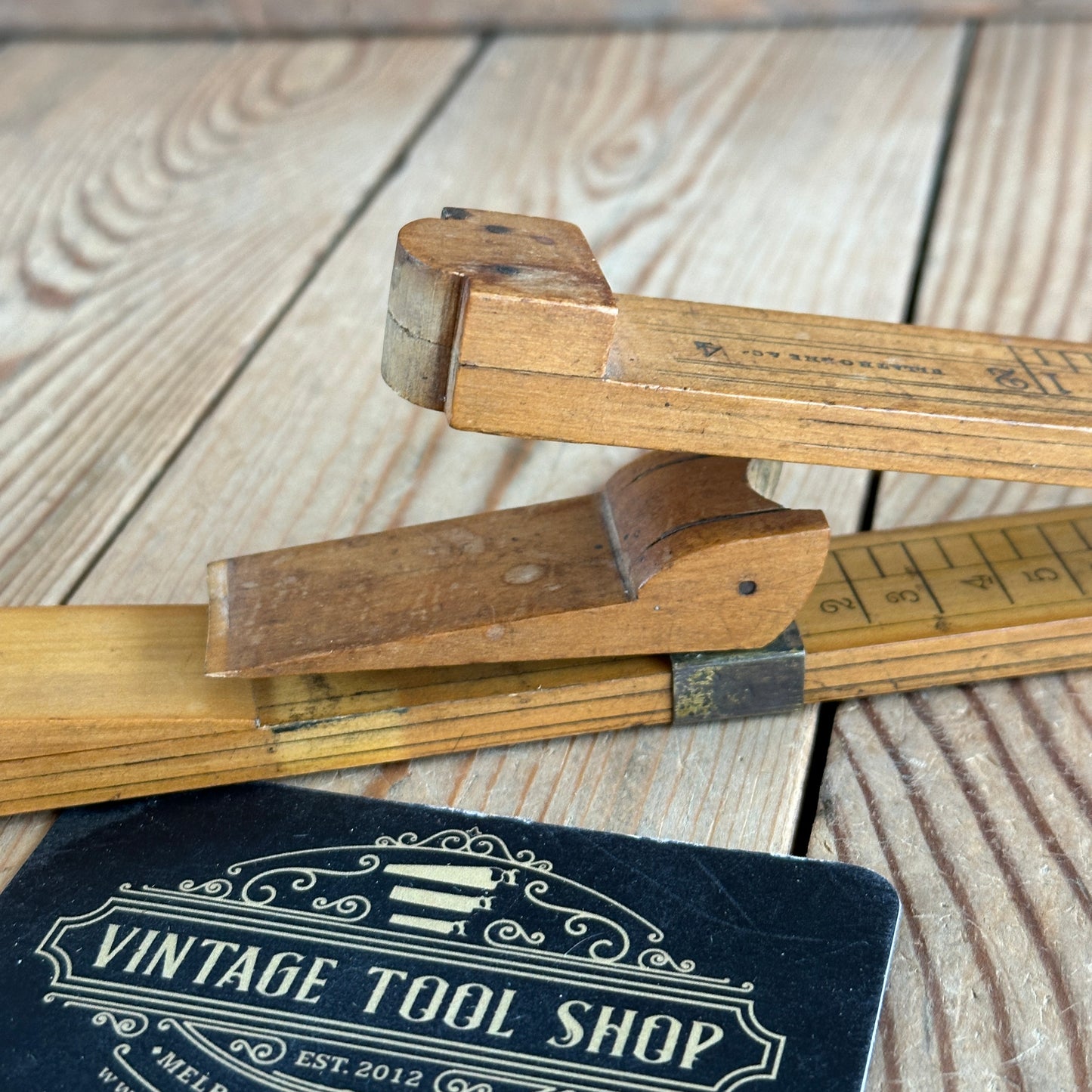 This ruler is in authentic vintage condition, wear and tear consistent with age & use, some staining however all of the locating pins & hinges are good, a lovely boxwood cobblers rule by ULLATHORNE.
