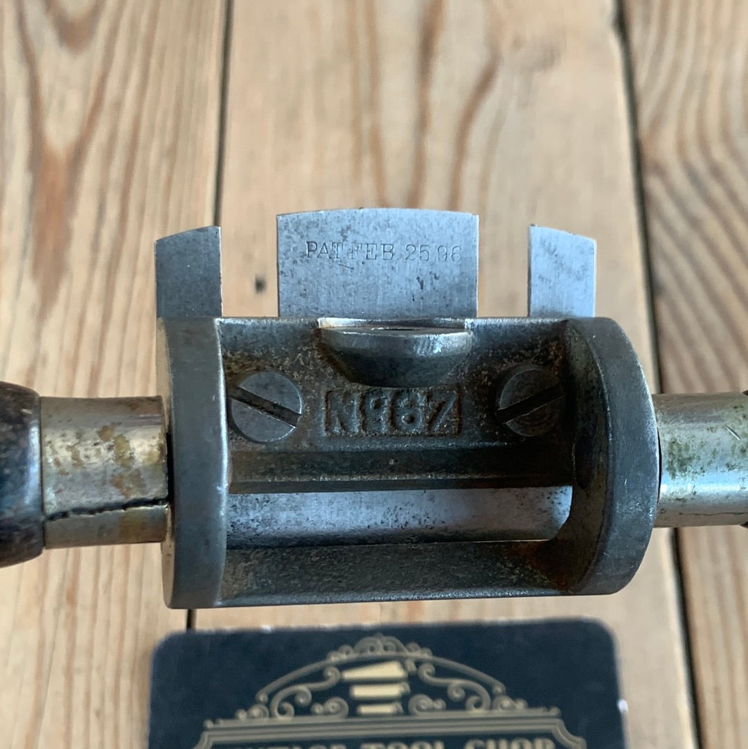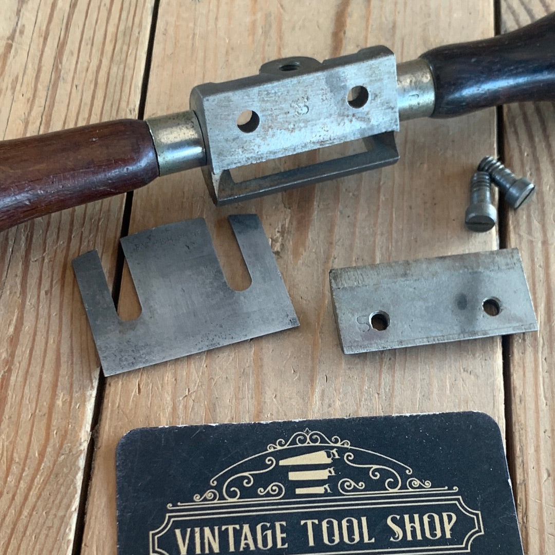 This spokeshave is in authentic vintage condition, wear & tear consistent with age & use. One ferrule has split. This one comes with the convex base, needs to be sharpened & you'll be pulling shavings in no time.