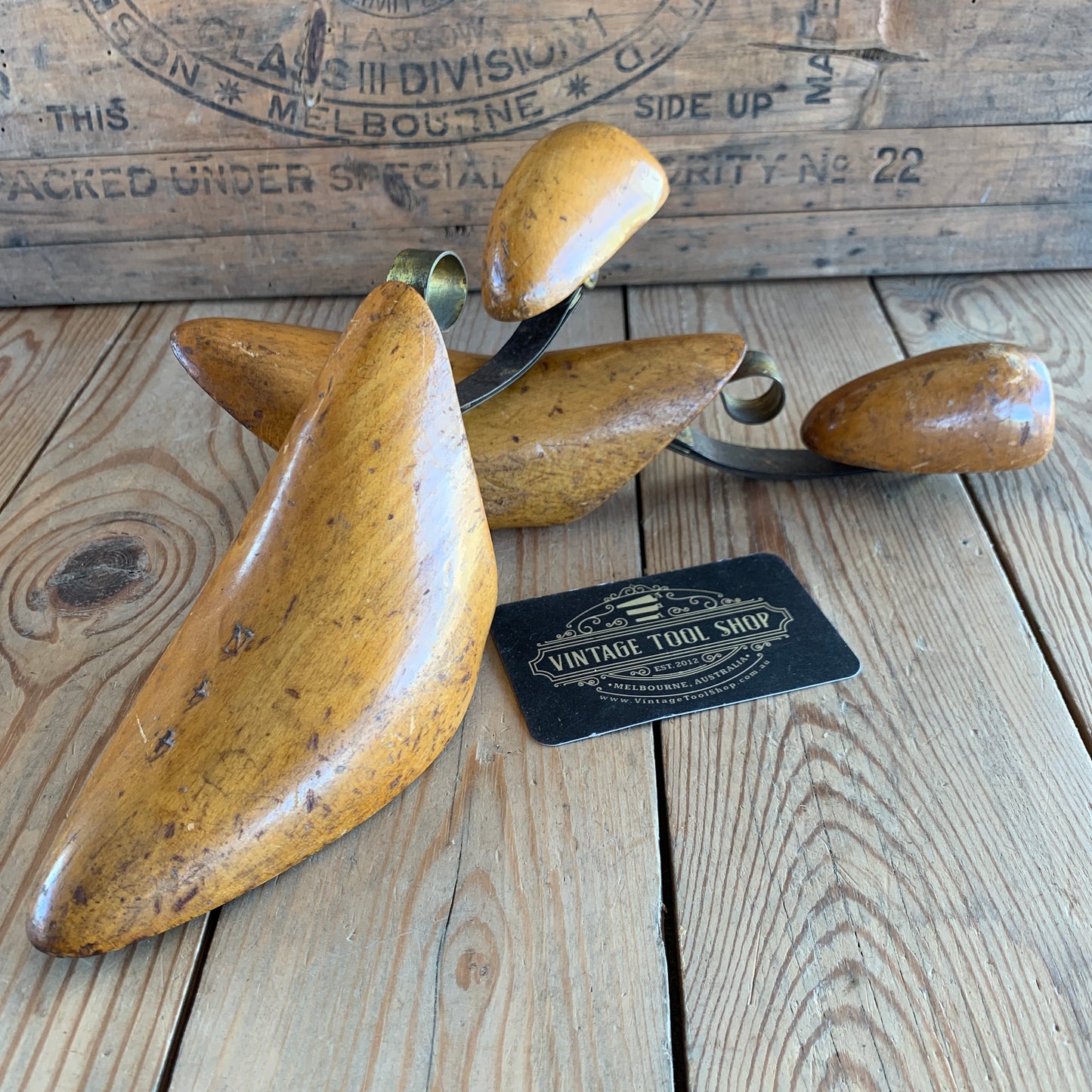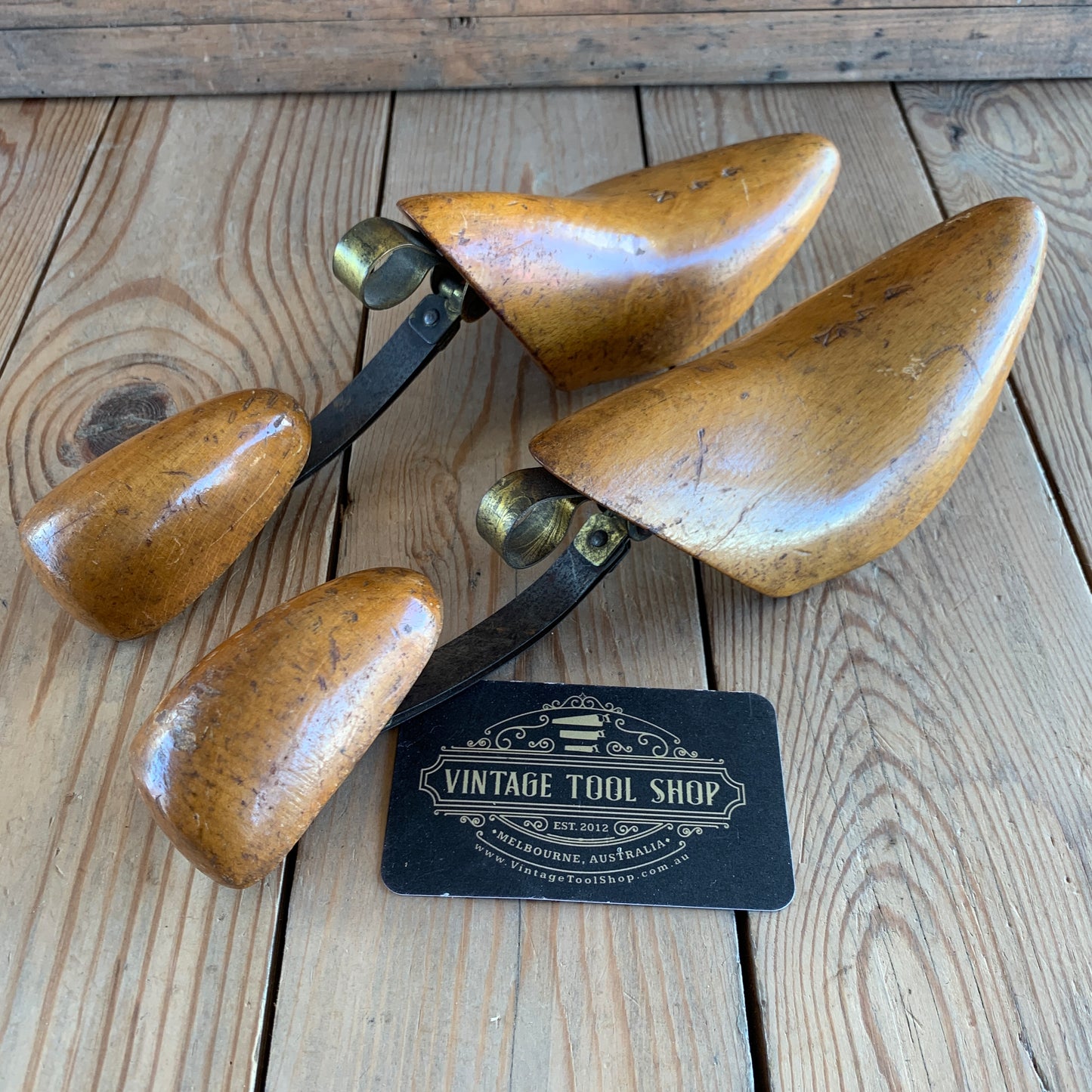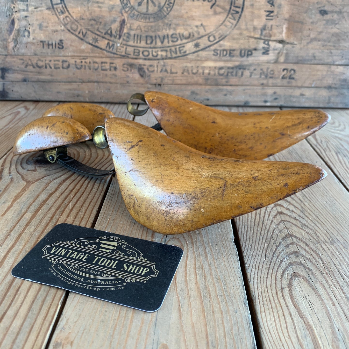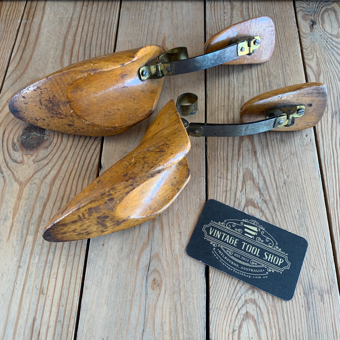 SOLD V2053 Antique French pair of WOODEN SHOE LASTS industrial display item