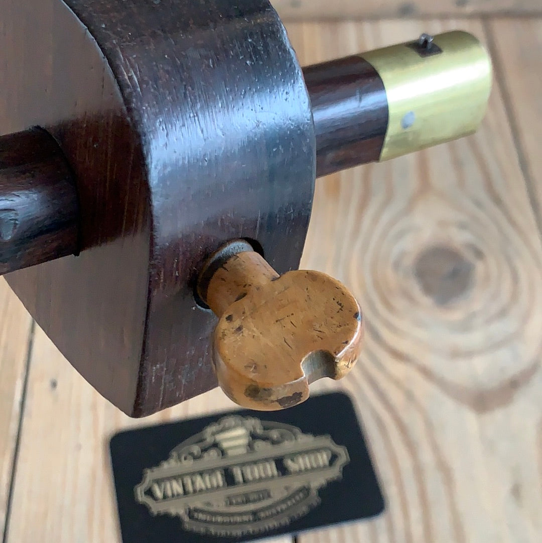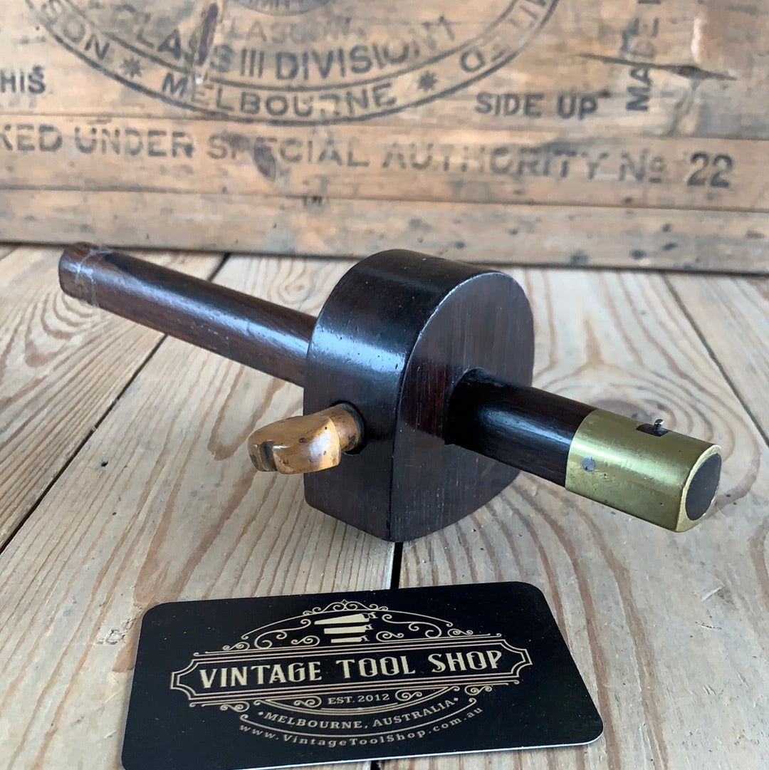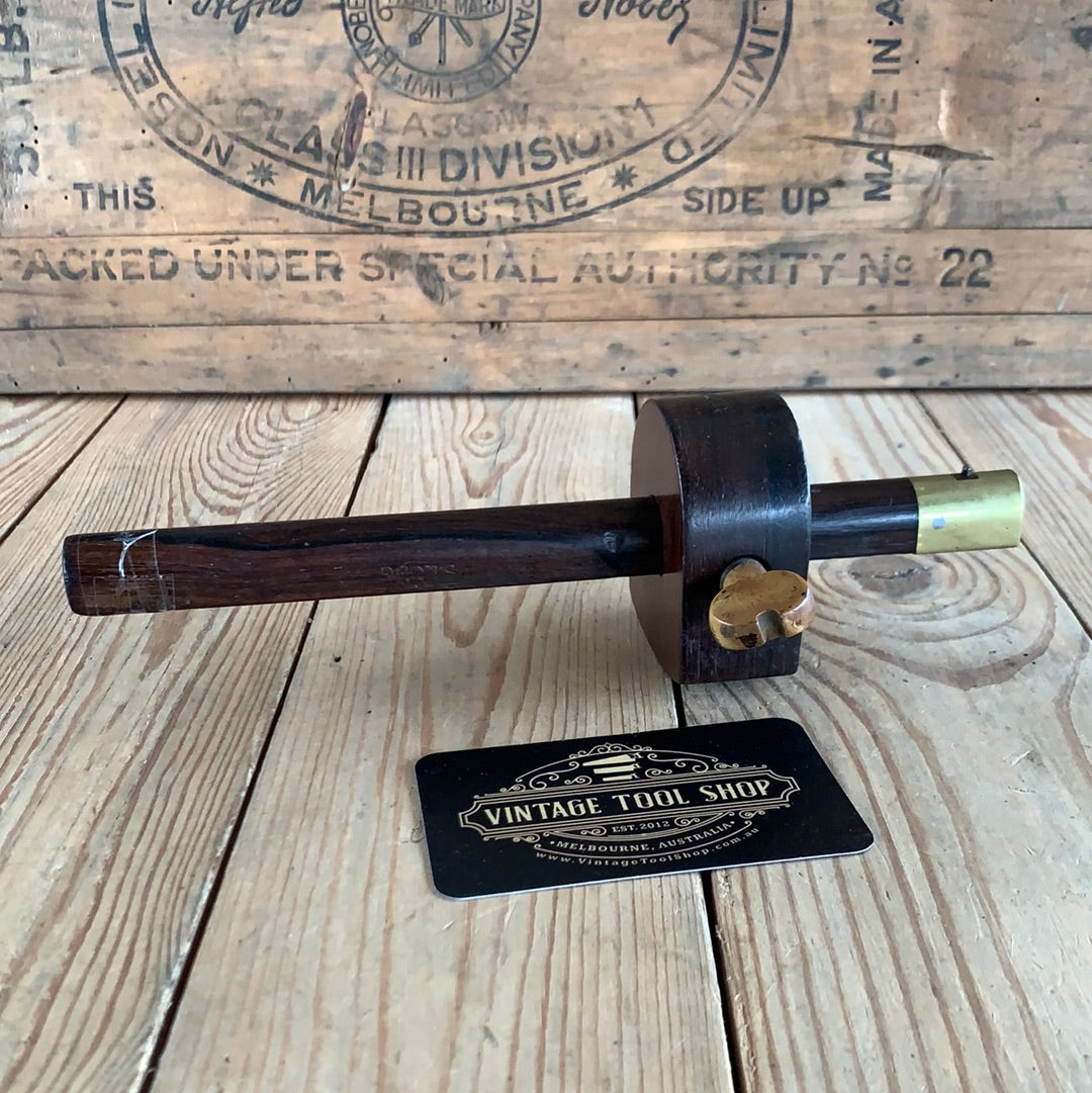This marking gauge is in authentic vintage condition, wear & tear consistent with age & use, the slitting cutter & wedge have been replaced with a round pin filed flattish to be a rudimentary slitting cutter. Absolutely gorgeous Rosewood on this one with a boxwood locking screw.
