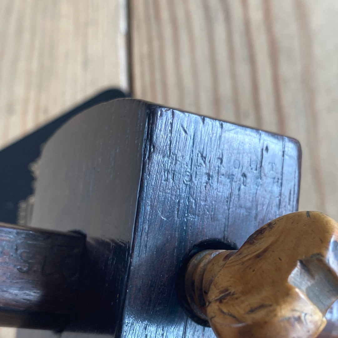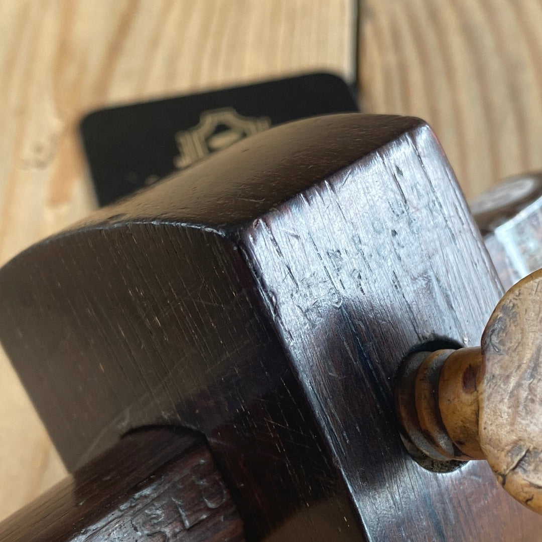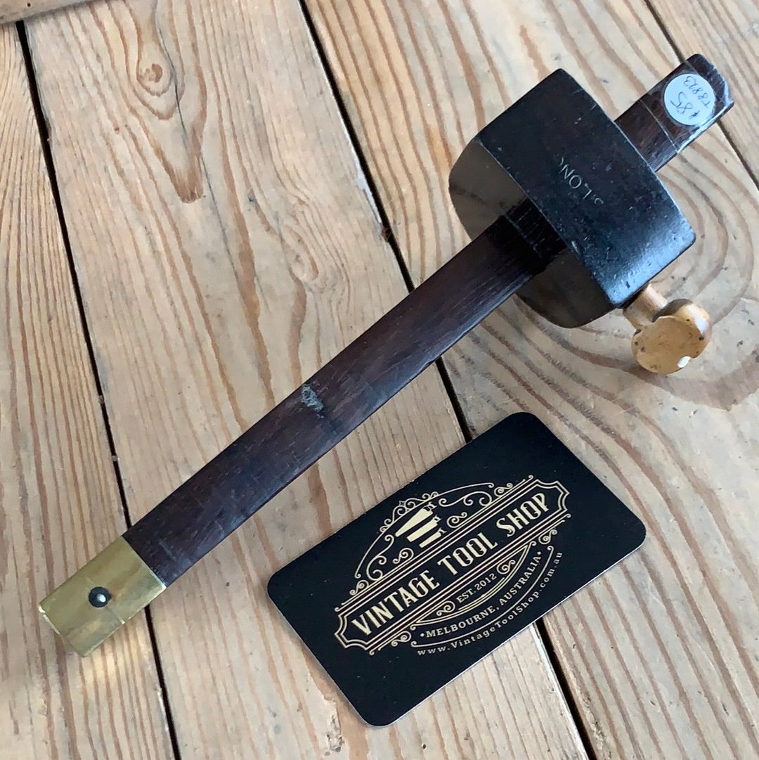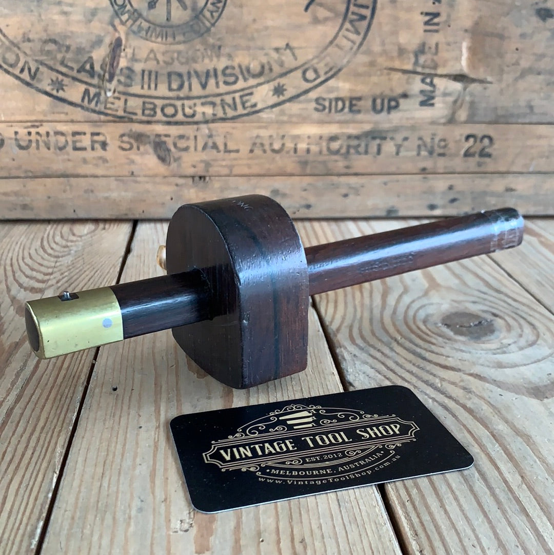 This marking gauge is in authentic vintage condition, wear & tear consistent with age & use, the slitting cutter & wedge have been replaced with a round pin filed flattish to be a rudimentary slitting cutter. Absolutely gorgeous Rosewood on this one with a boxwood locking screw.